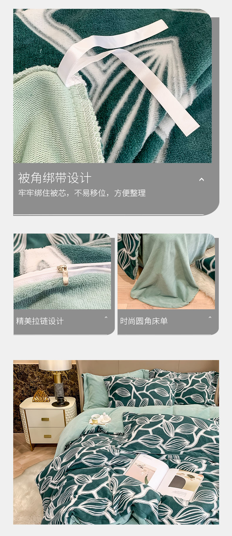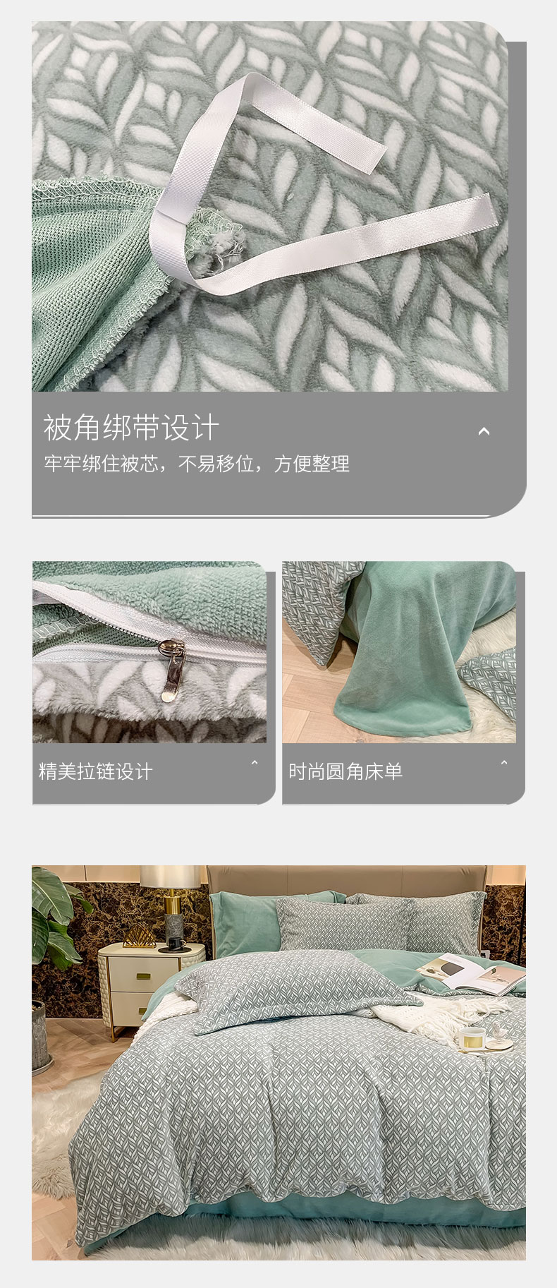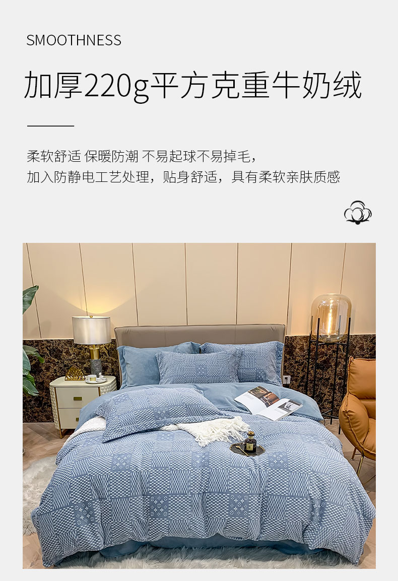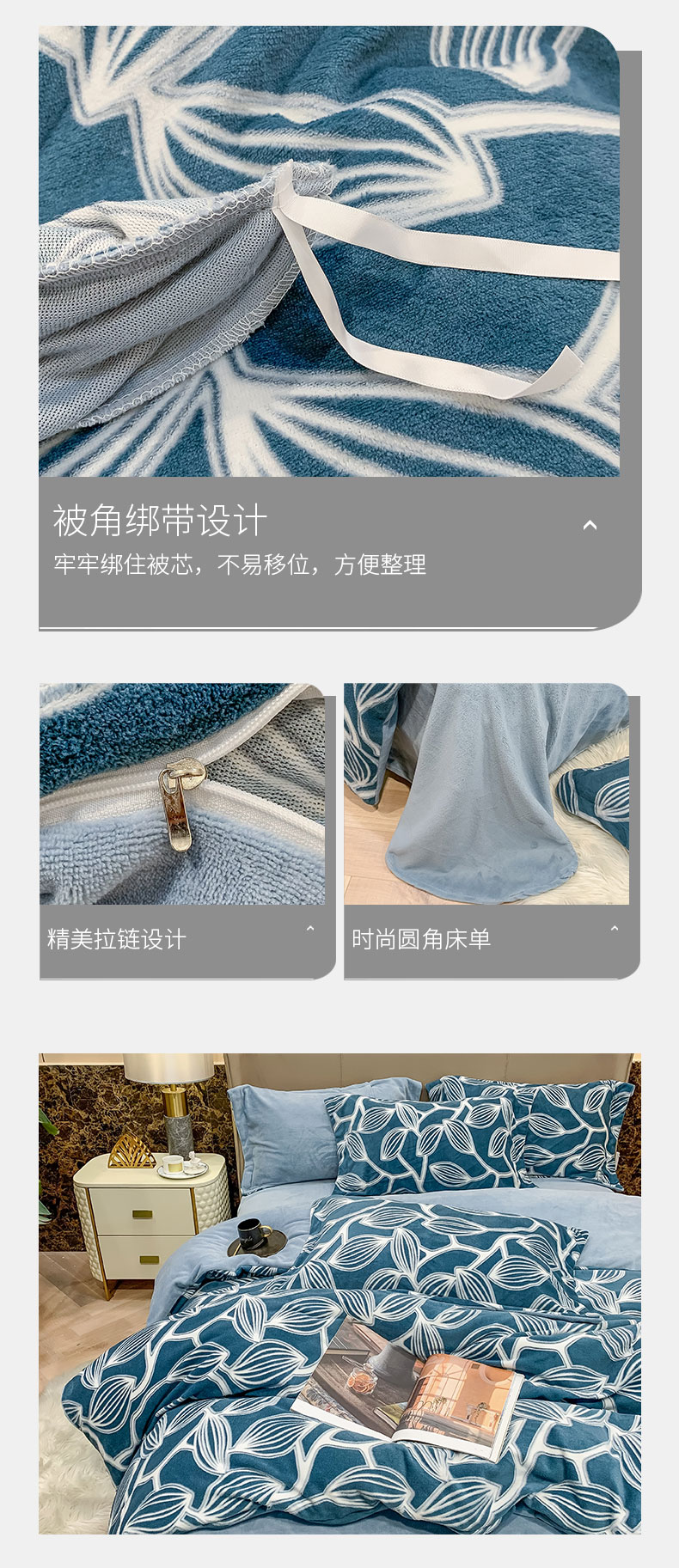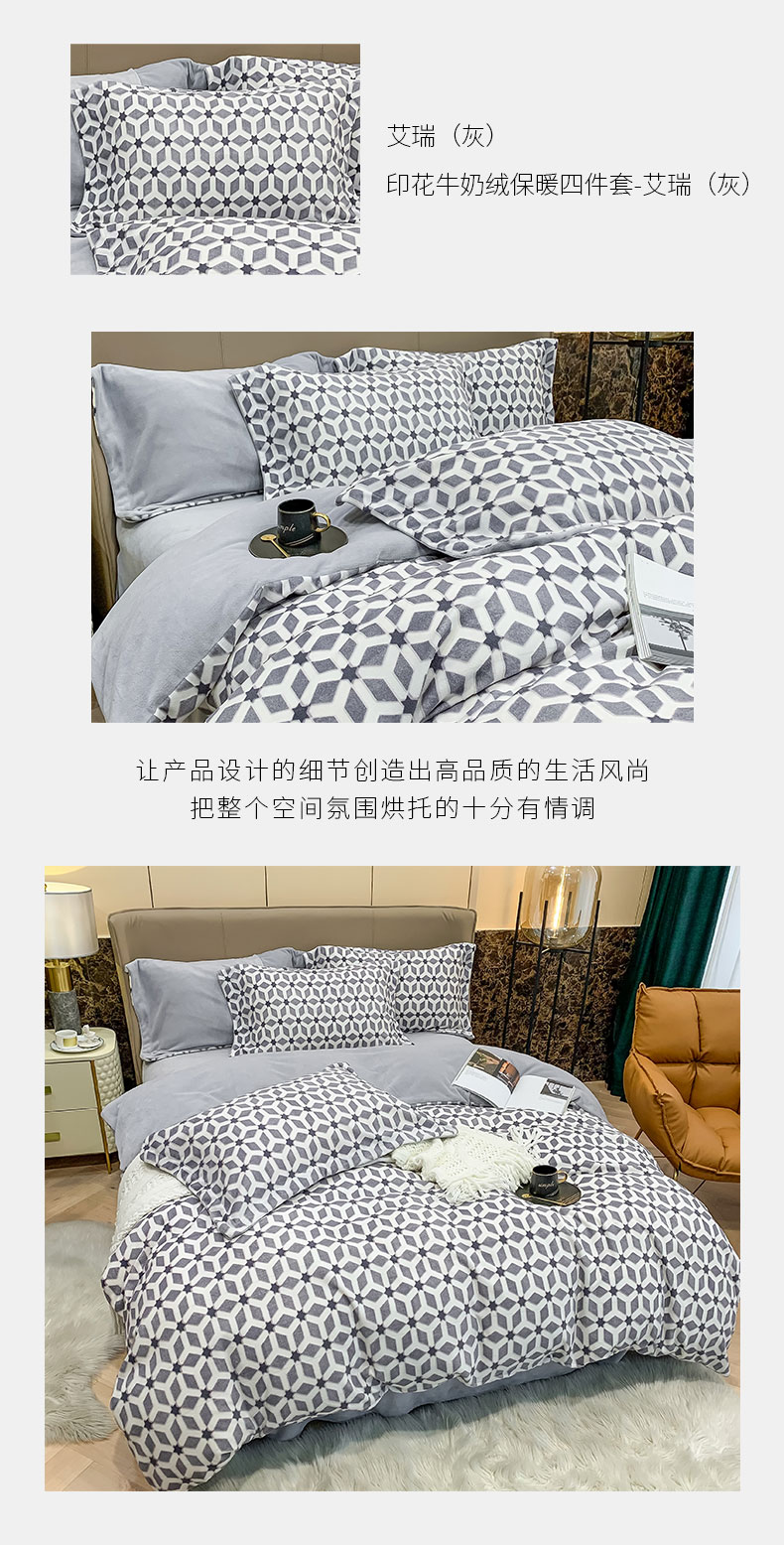秋冬印花牛奶绒保暖四件套 加厚防静电工艺处理 保暖绒被套床单