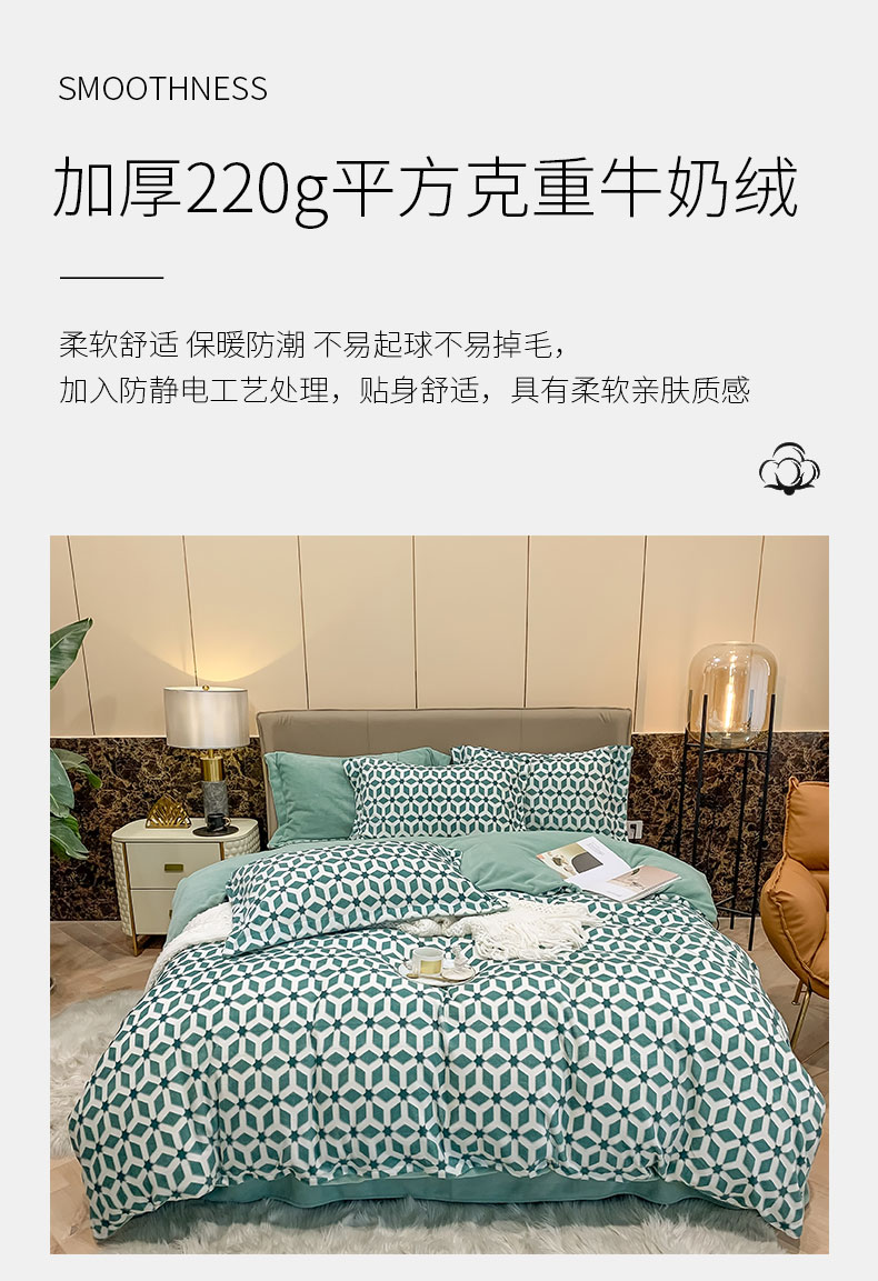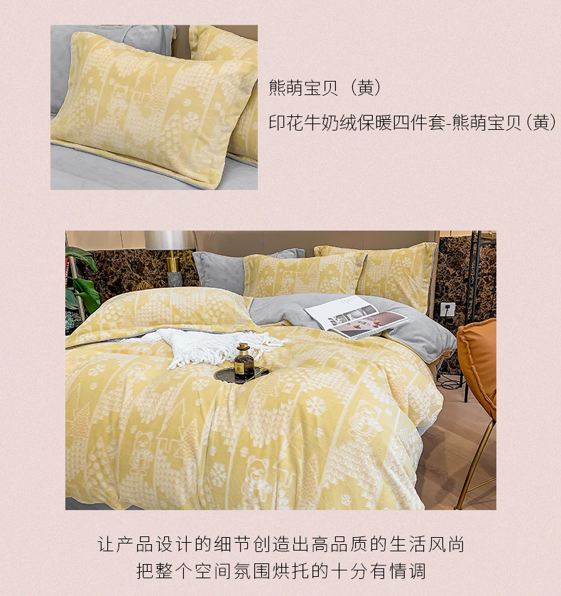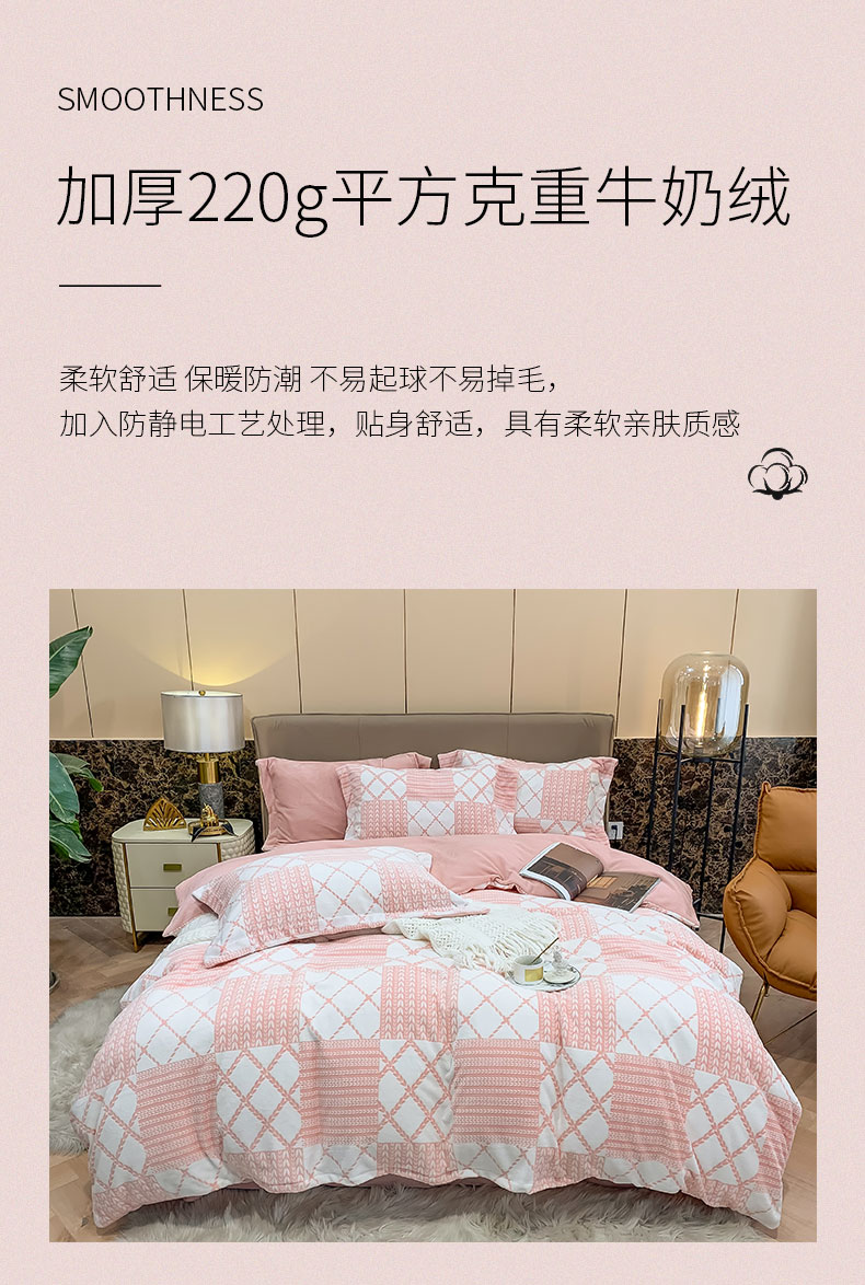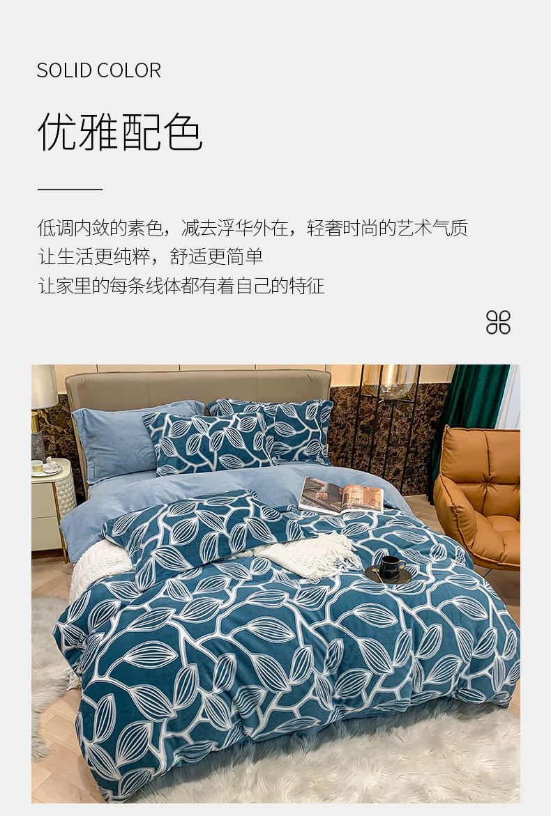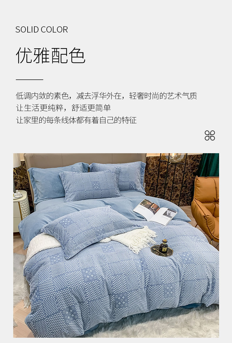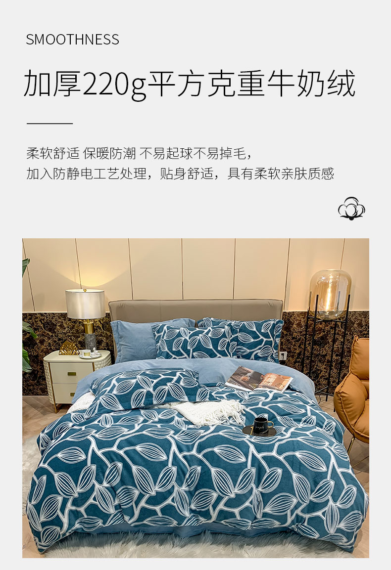 秋冬印花牛奶绒保暖四件套 加厚防静电工艺处理 保暖绒被套床单