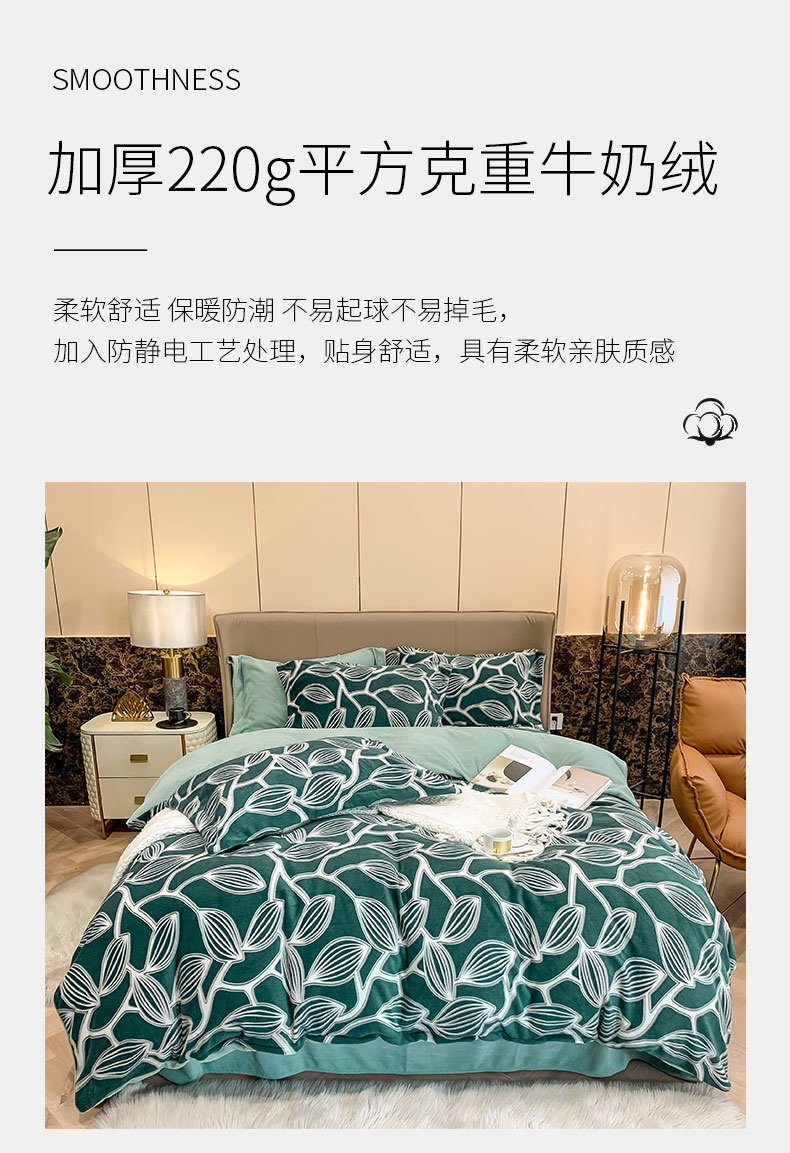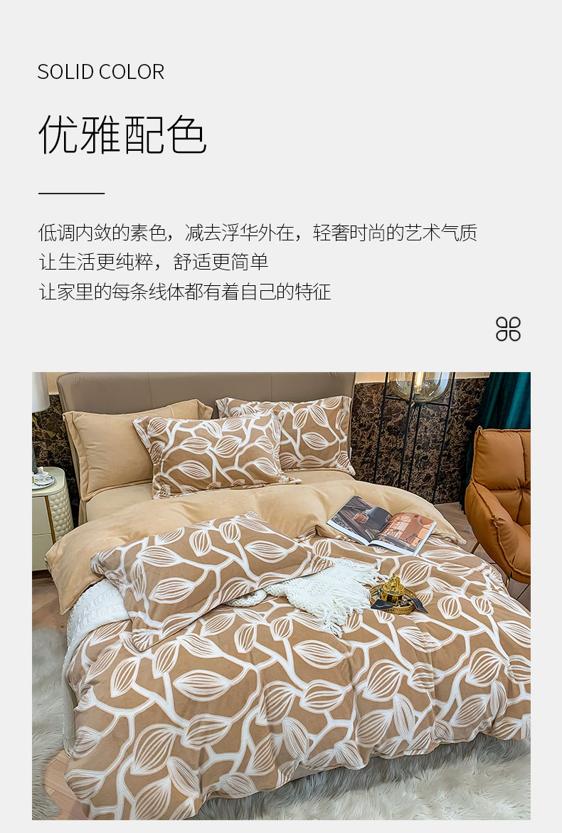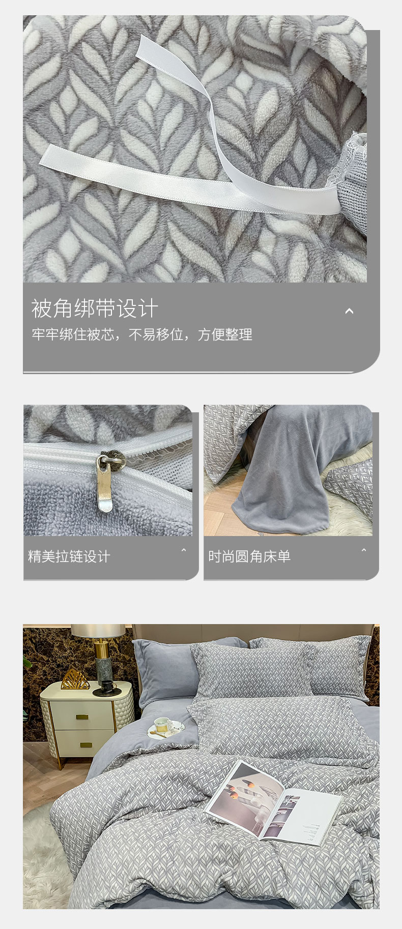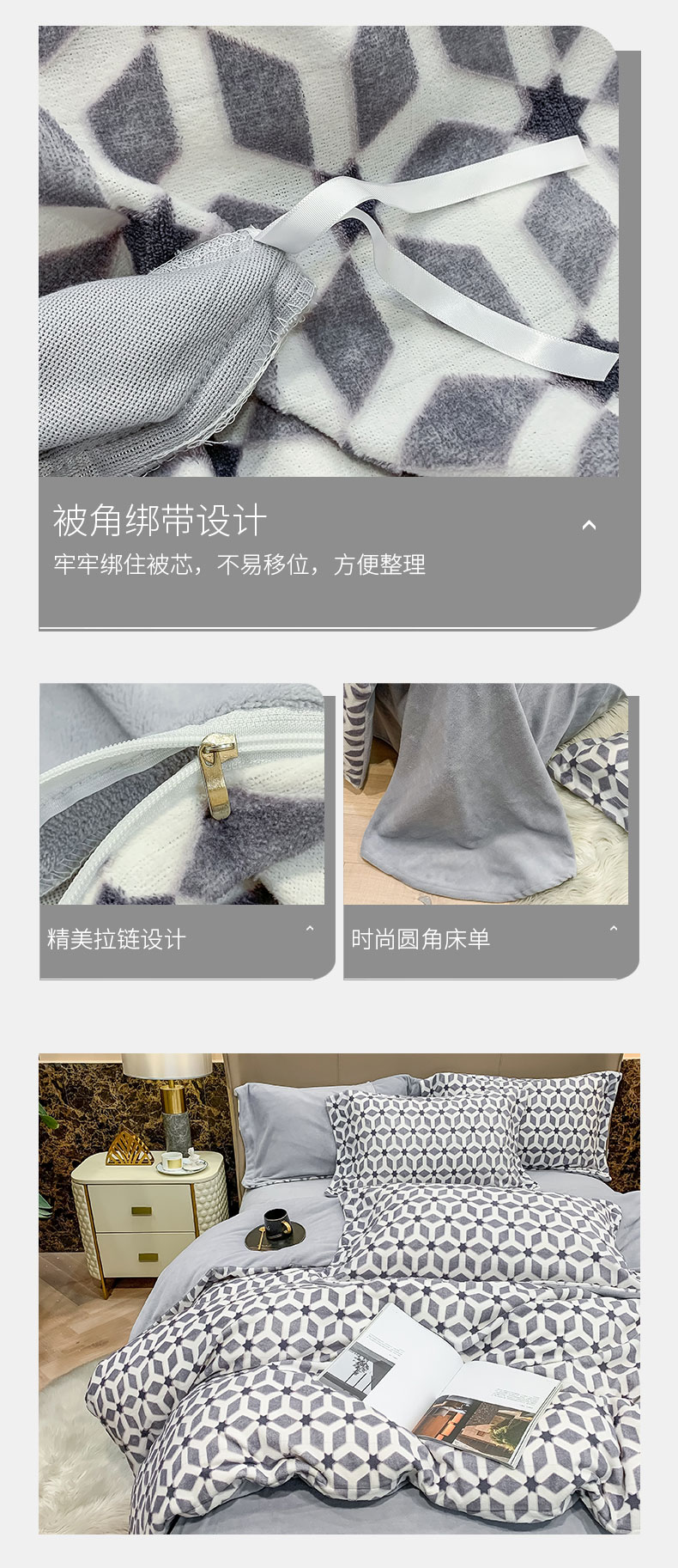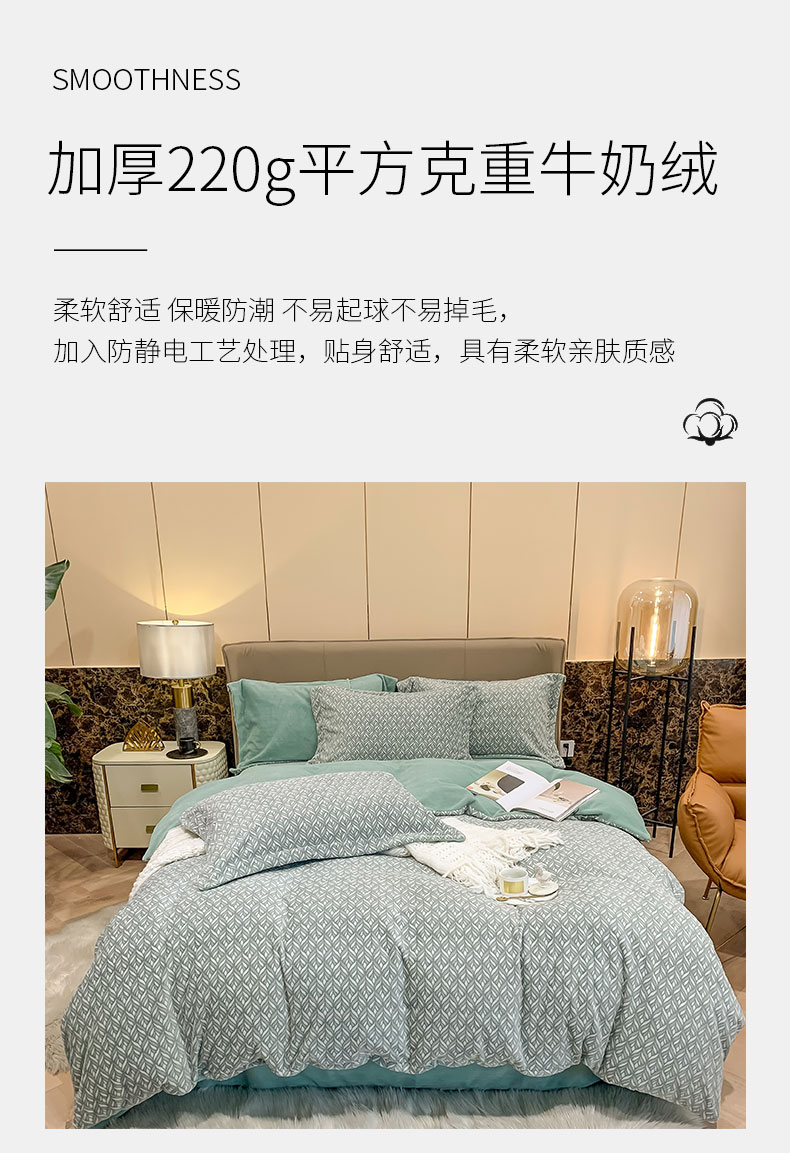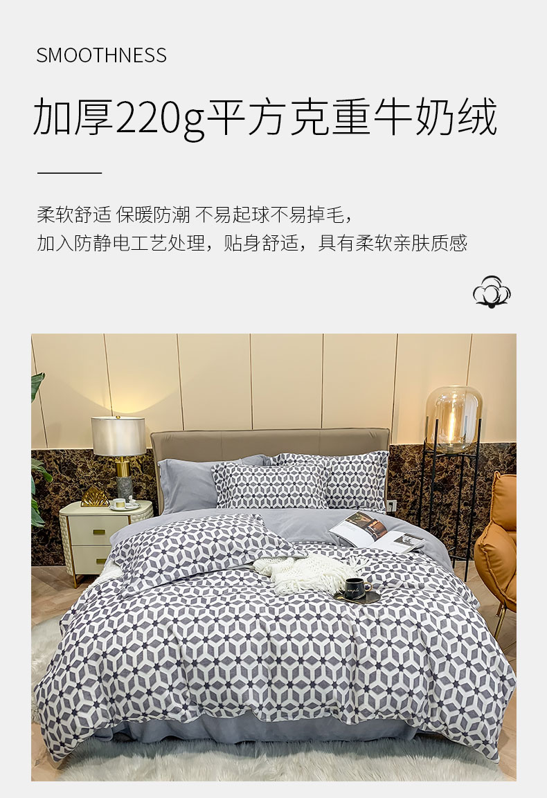 秋冬印花牛奶绒保暖四件套 加厚防静电工艺处理 保暖绒被套床单