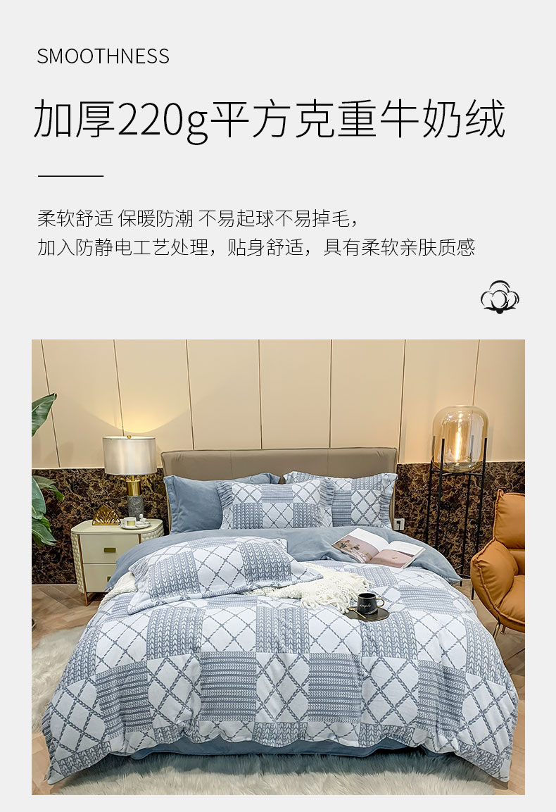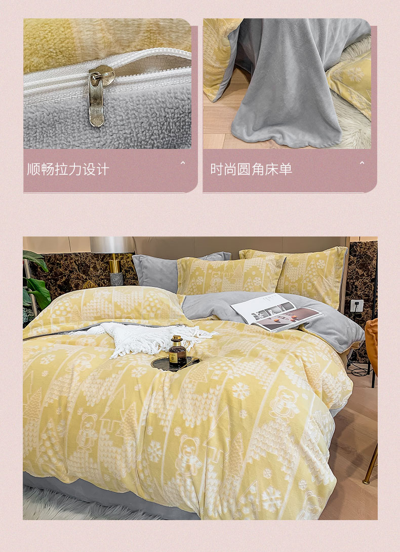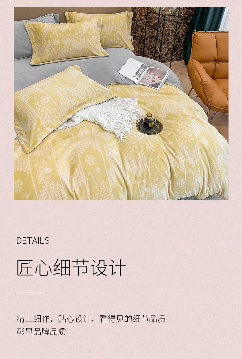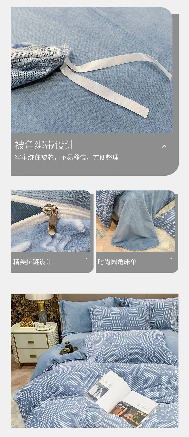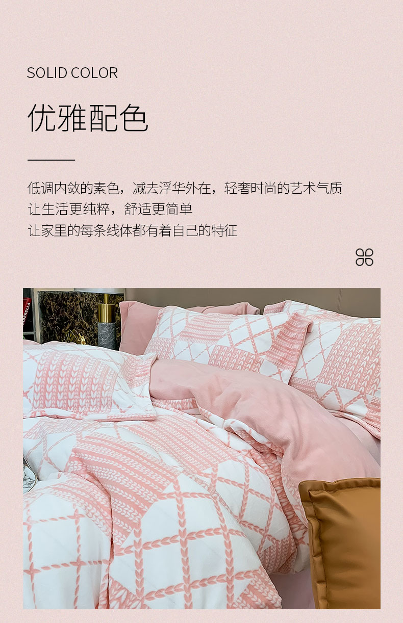 秋冬印花牛奶绒保暖四件套 加厚防静电工艺处理 保暖绒被套床单