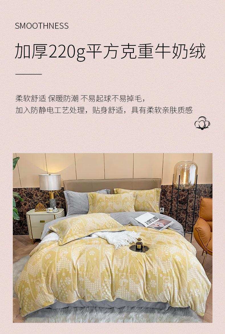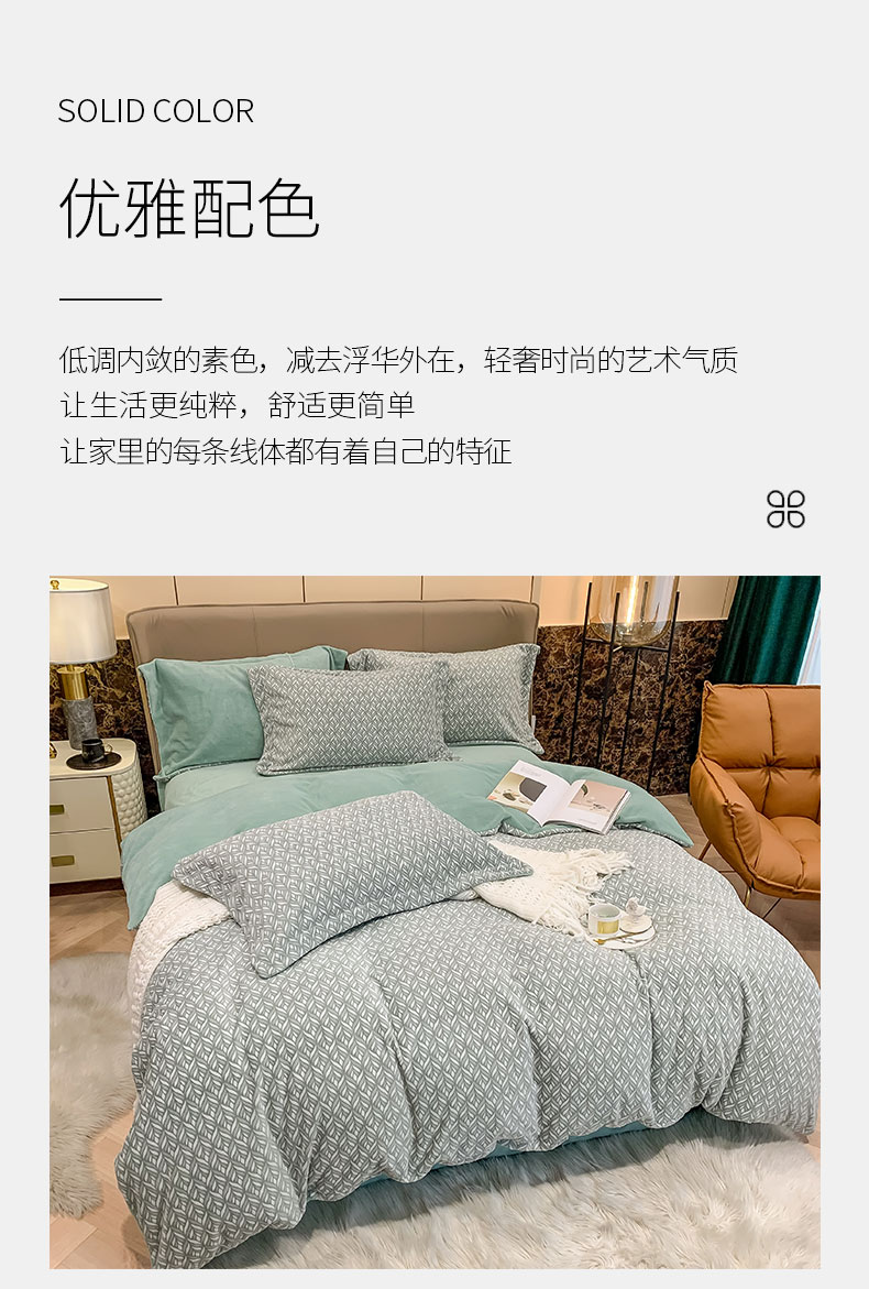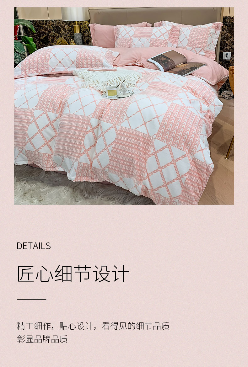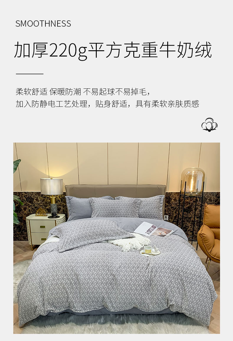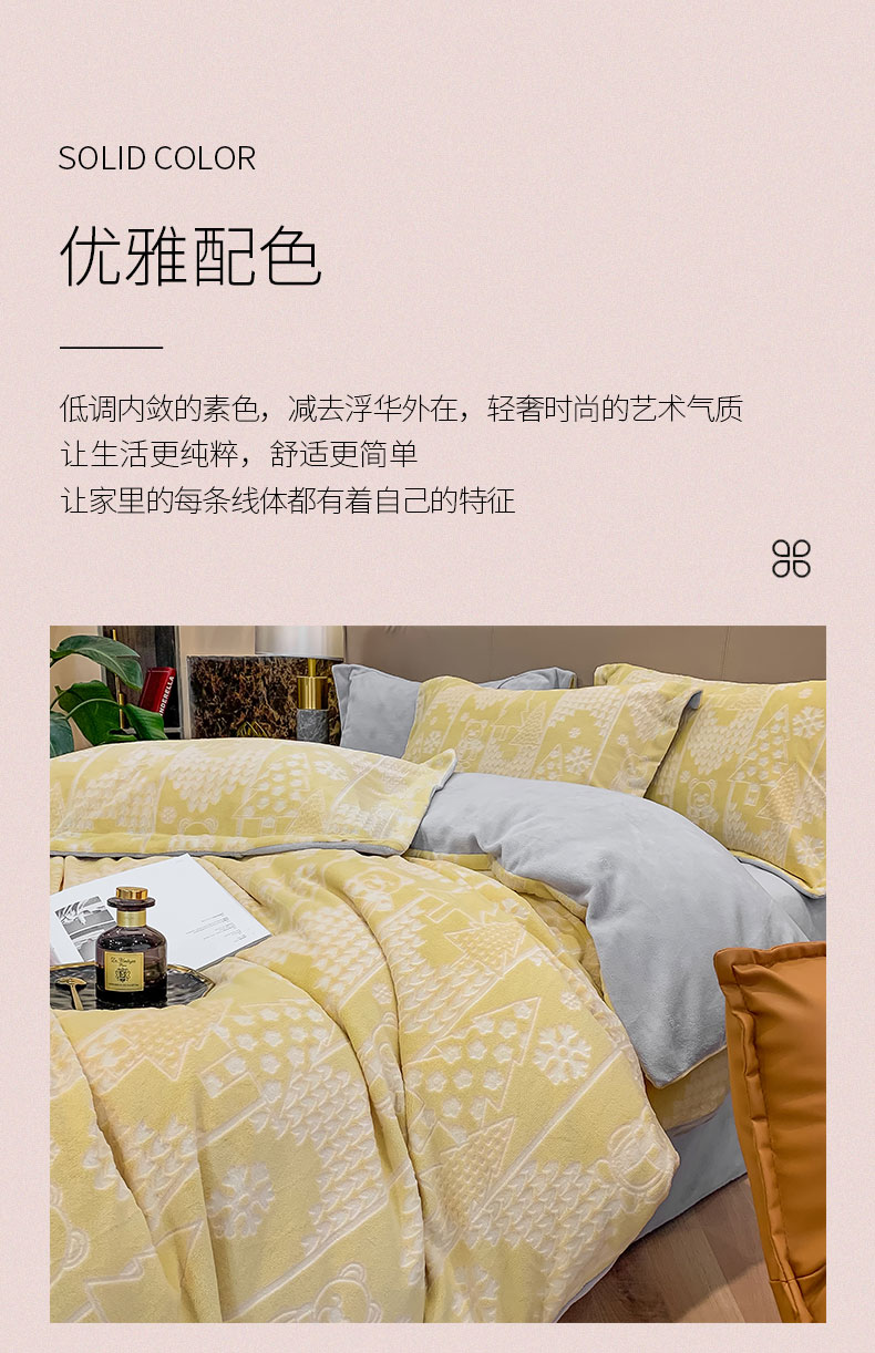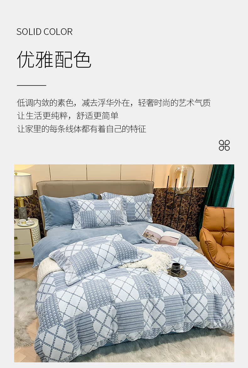 秋冬印花牛奶绒保暖四件套 加厚防静电工艺处理 保暖绒被套床单