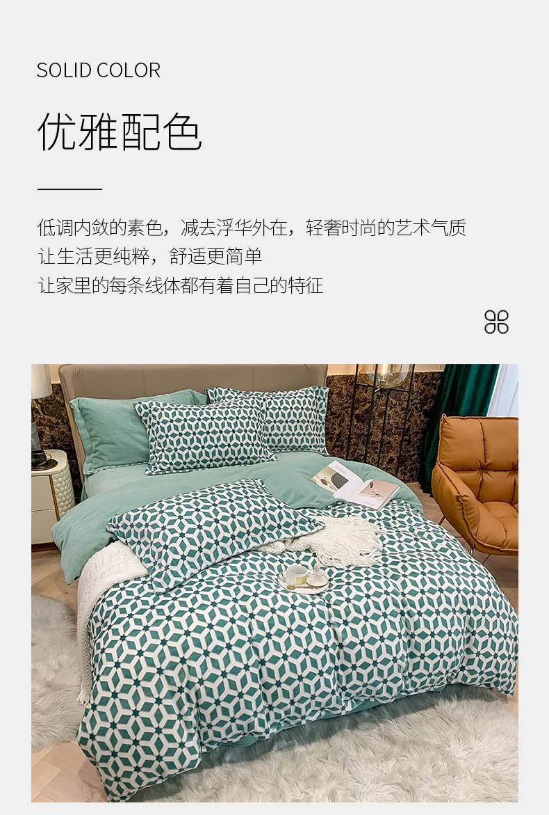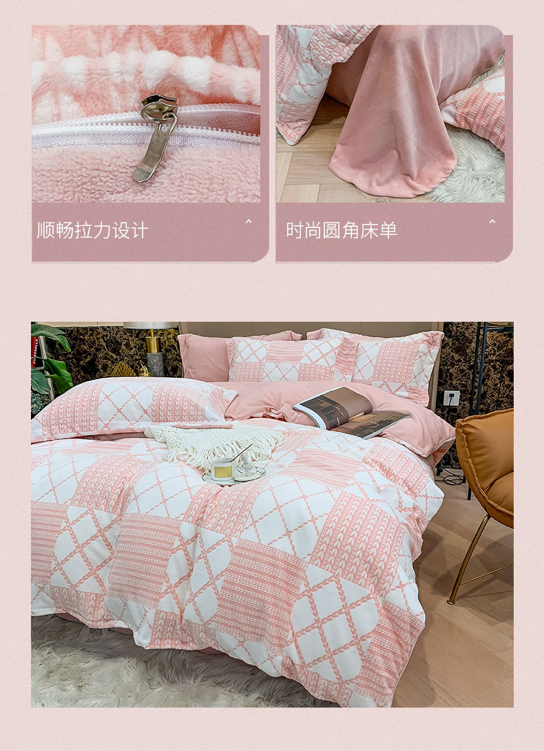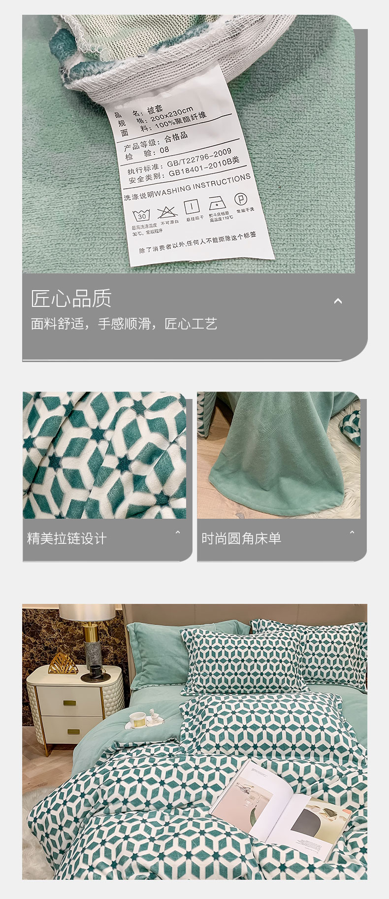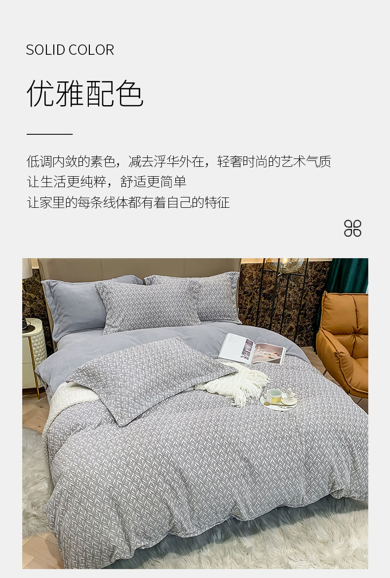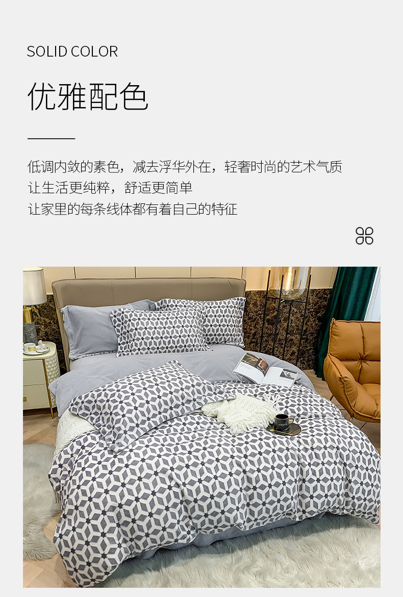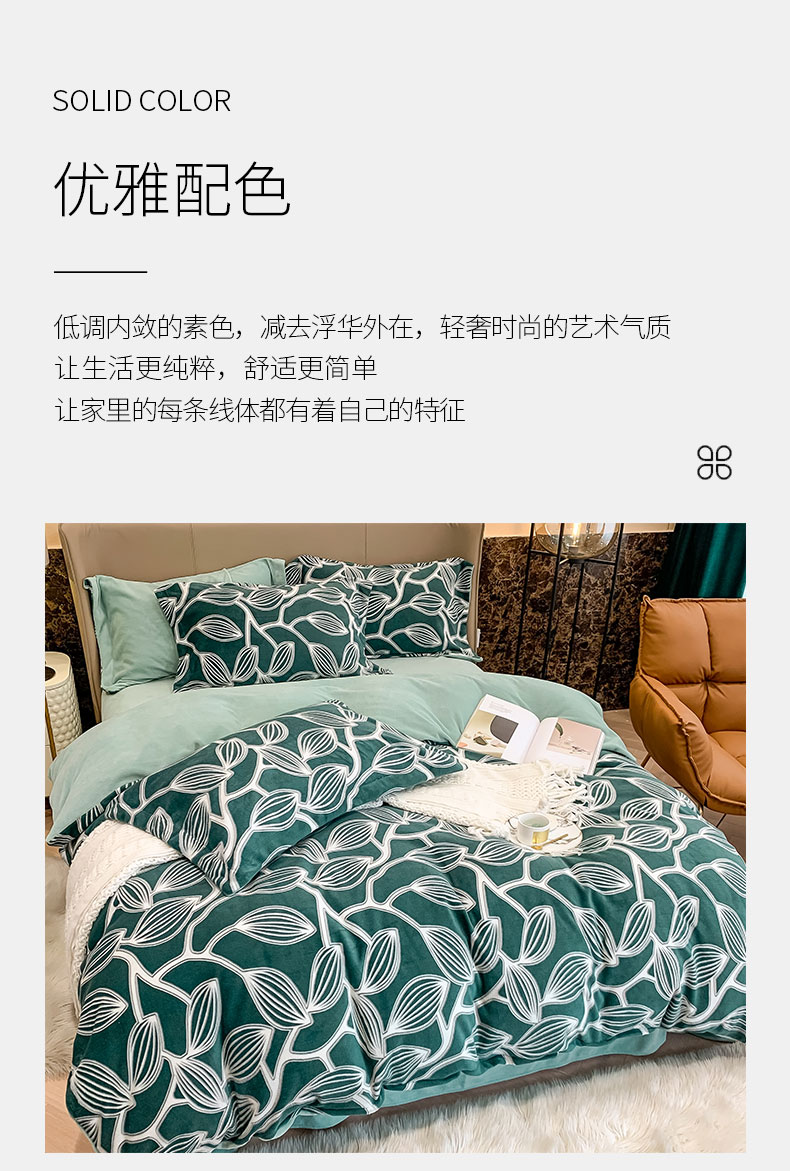 秋冬印花牛奶绒保暖四件套 加厚防静电工艺处理 保暖绒被套床单