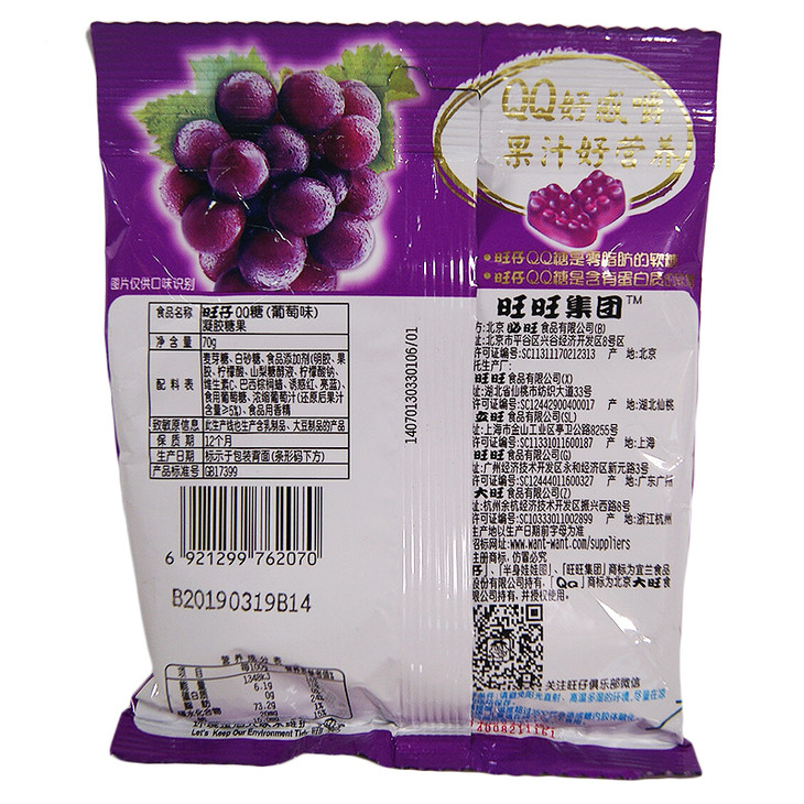 商品名称:旺仔QQ糖葡萄味