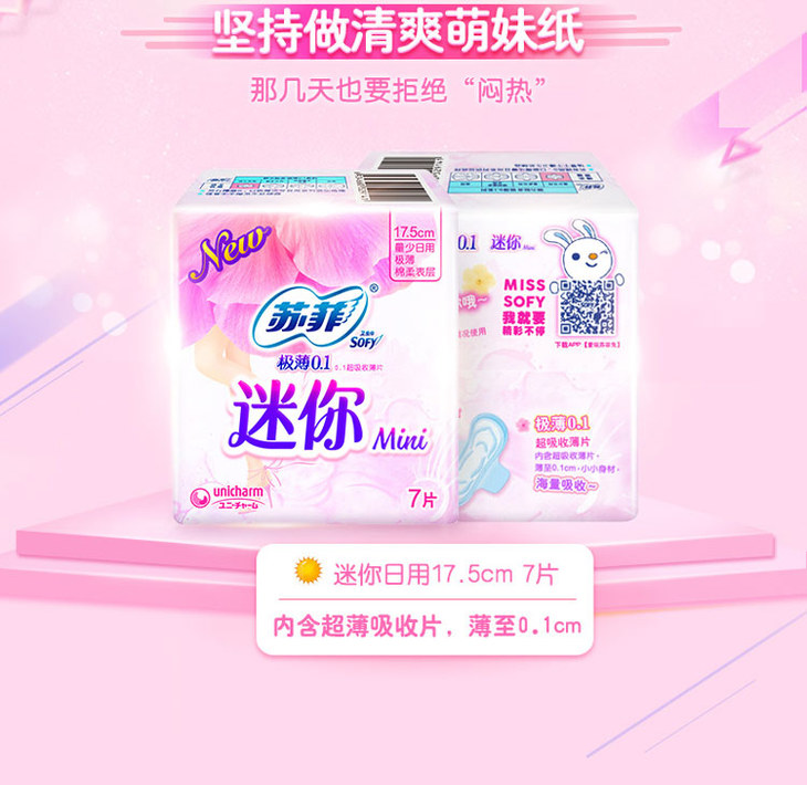 苏菲弹力贴身迷你棉柔护翼型卫生巾7片