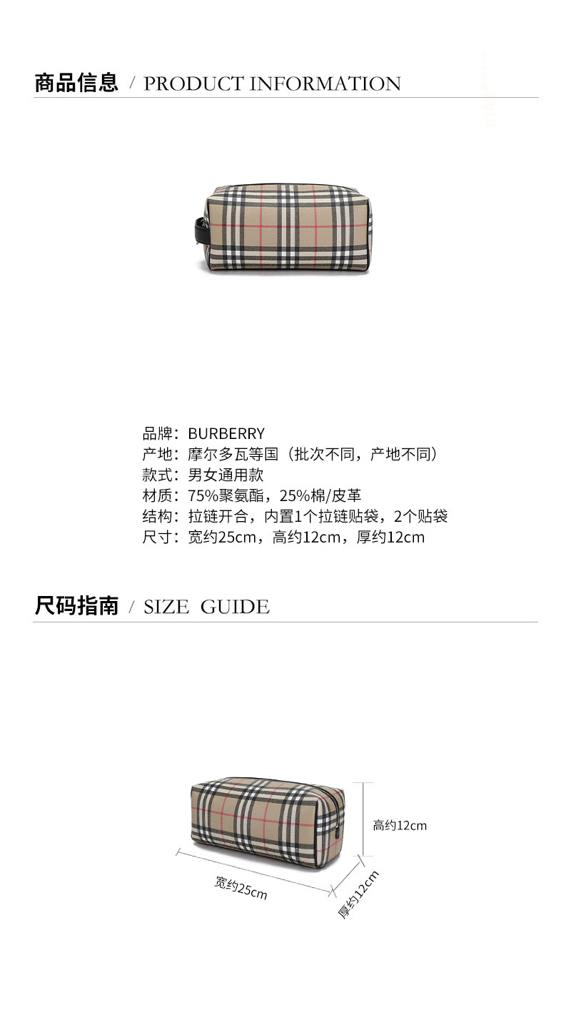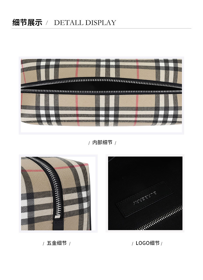 BURBERRY/博柏利【22春夏新款】男女通用款聚氨酯/织物/皮革手拿包旅行收纳袋 80495901
