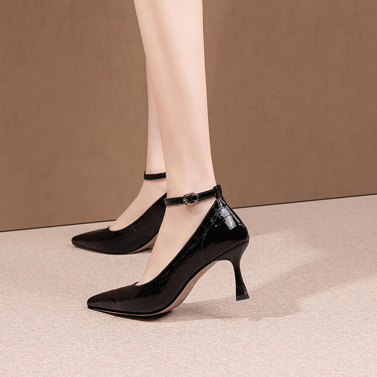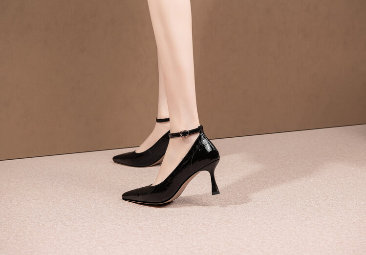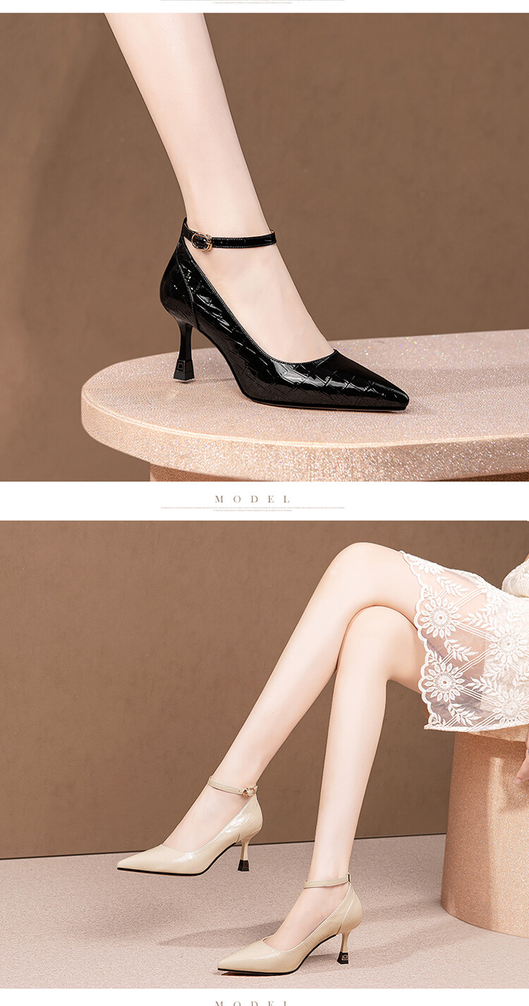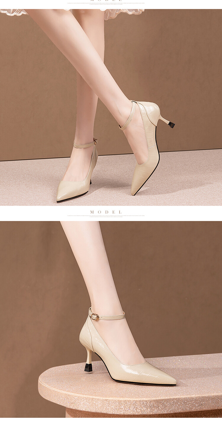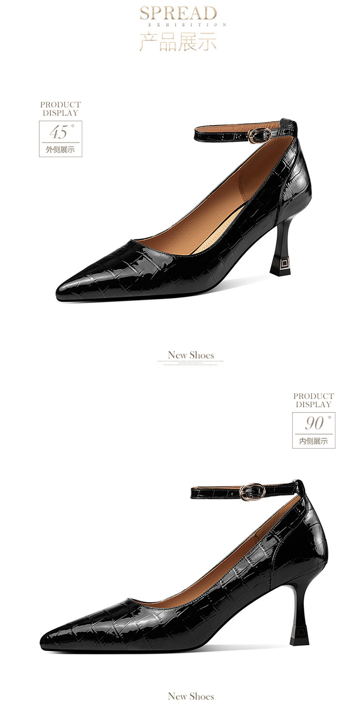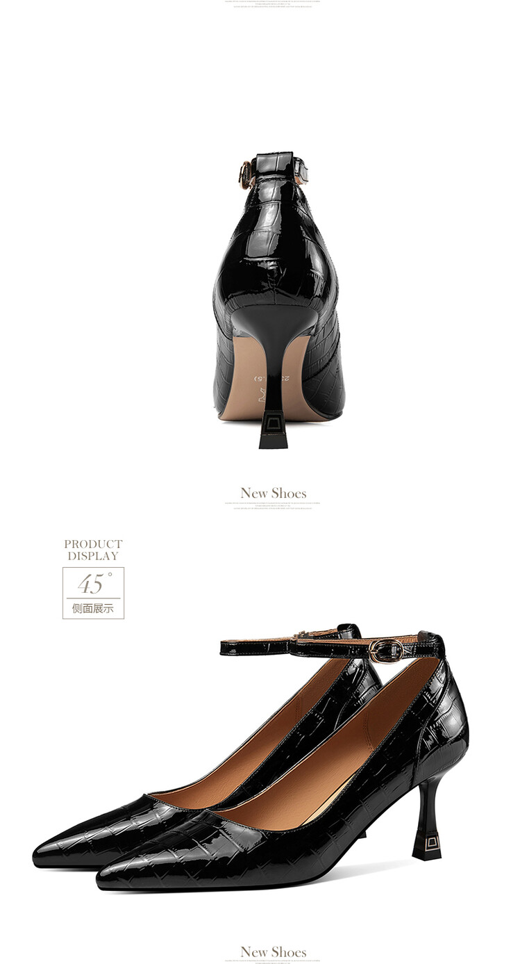 【预售5天】2024新品细跟尖头浅口四季单鞋女时尚一字扣高跟女鞋HY&H3183