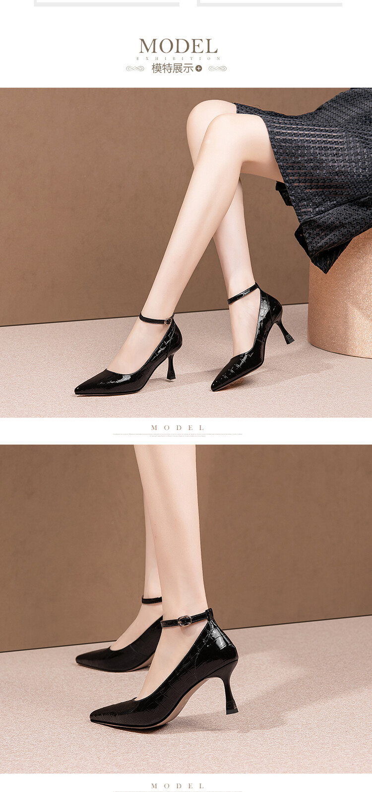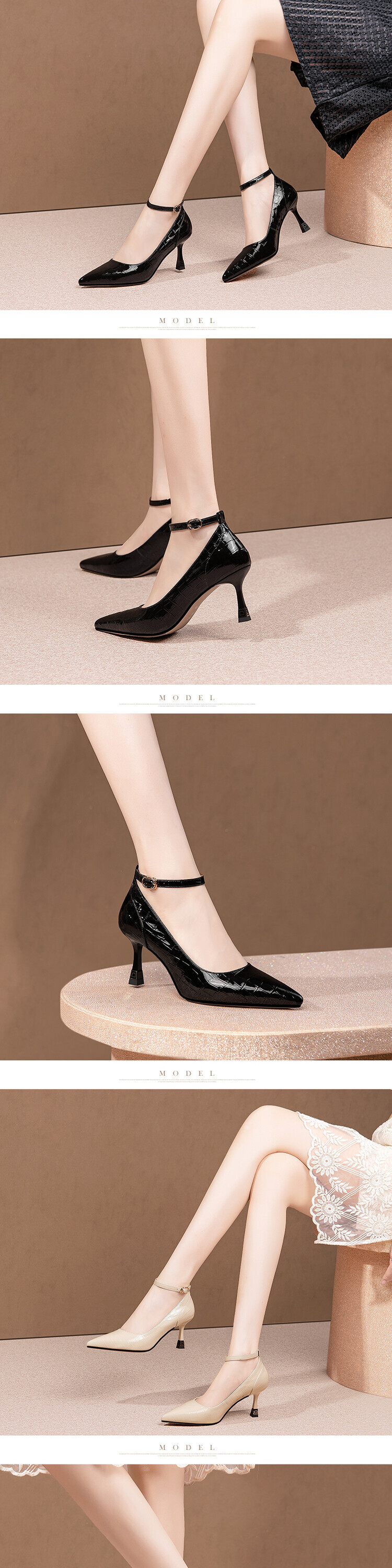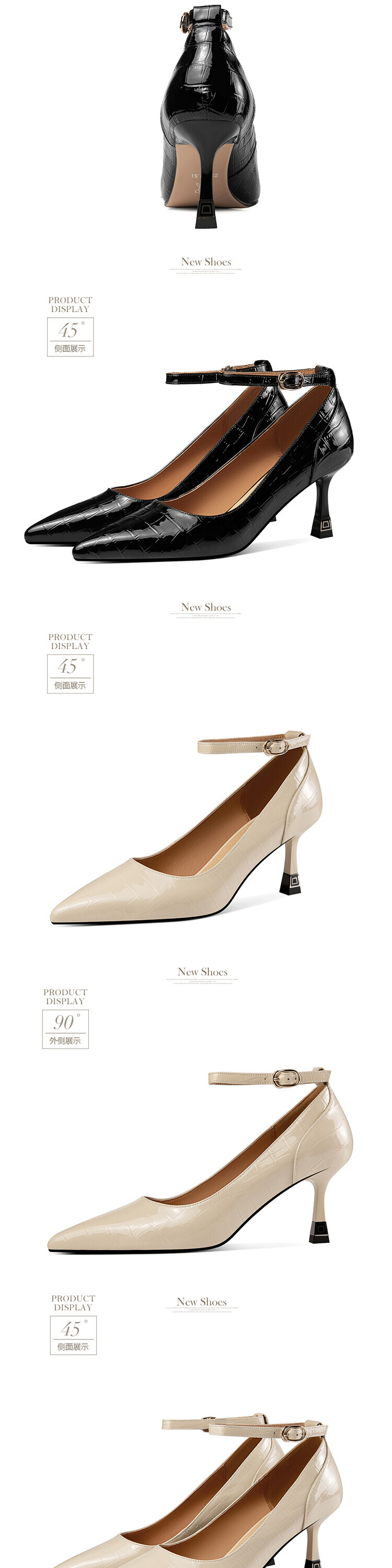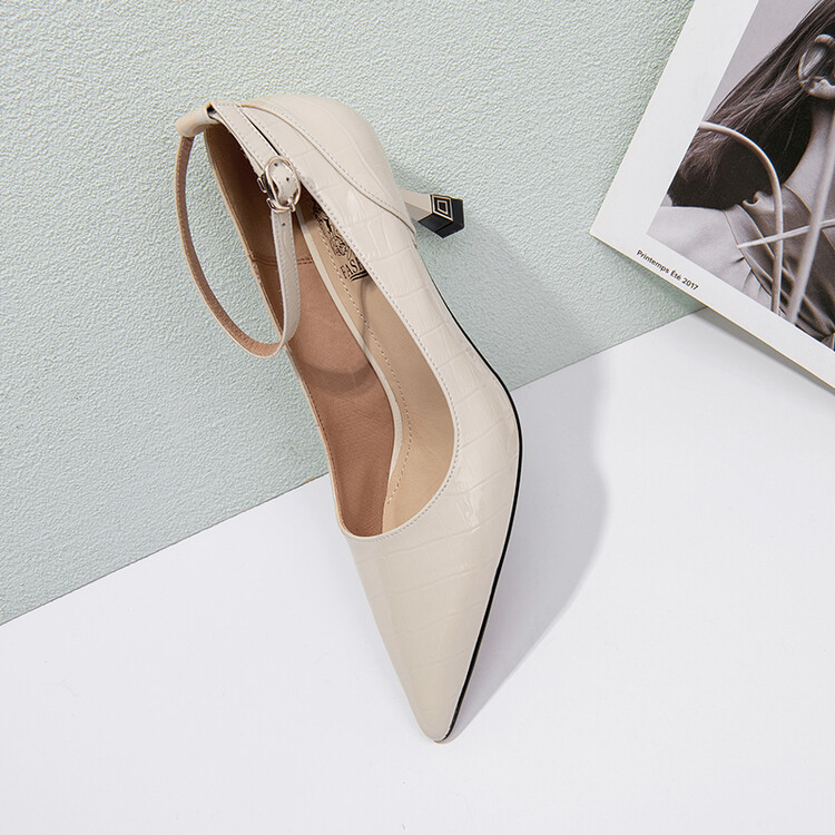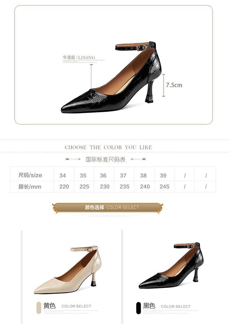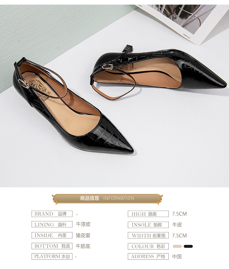 【预售5天】2024新品细跟尖头浅口四季单鞋女时尚一字扣高跟女鞋HY&H3183
