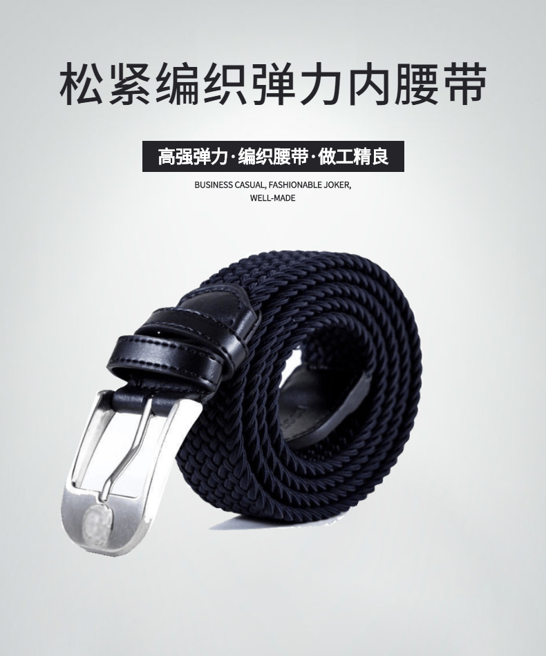 休闲编织弹力内腰带男士腰带藏青色战术巡逻作训安保松紧针扣腰带