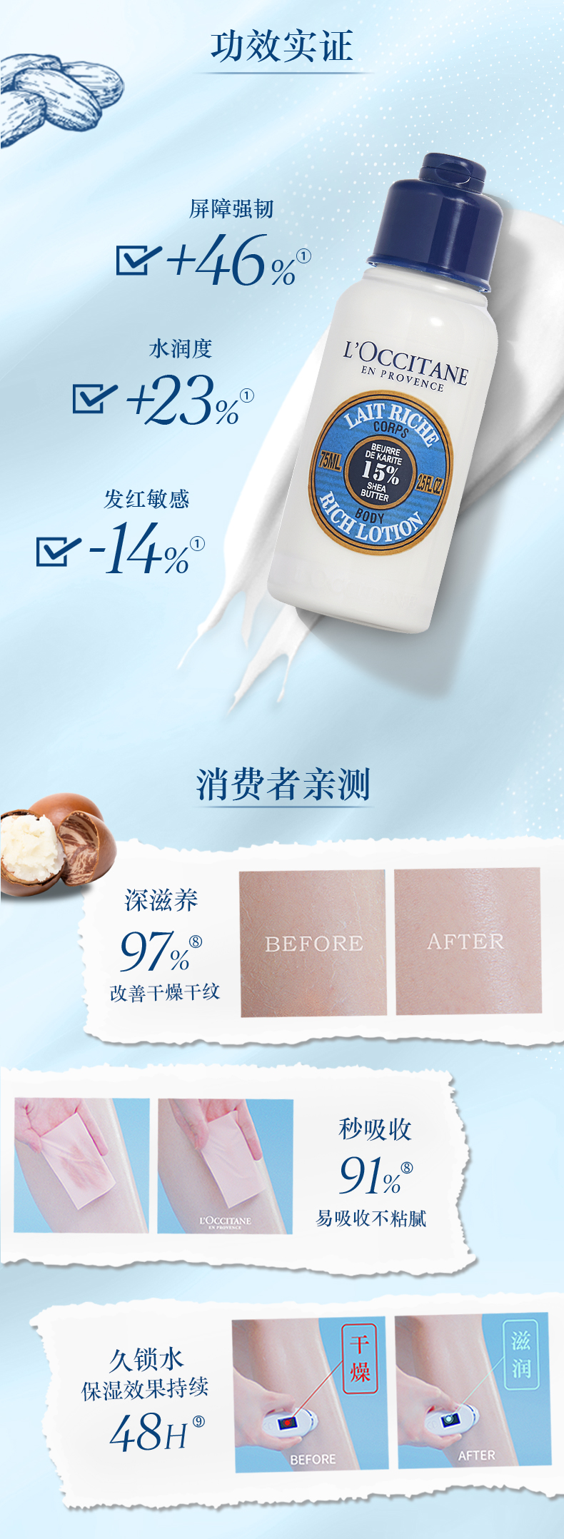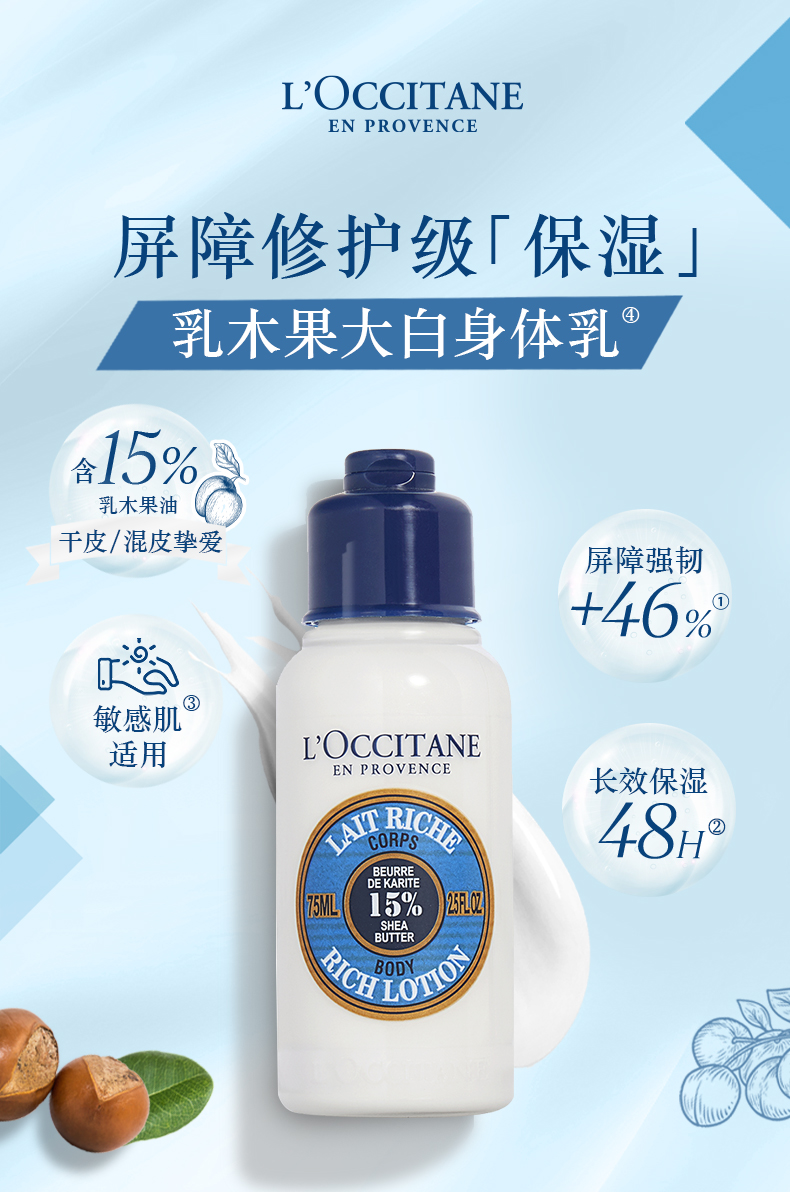 【小样】欧舒丹乳木果身体乳75ml/102307 滋养修护保湿不粘腻