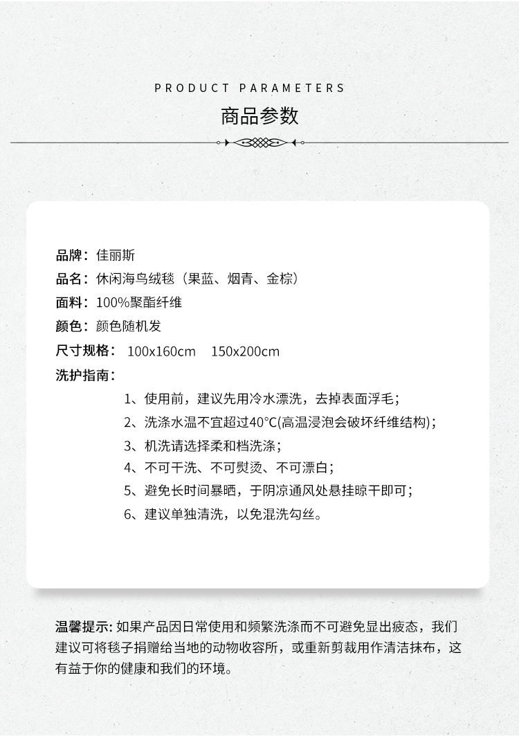 佳丽斯秋冬海鸟绒毛毯珊瑚绒毯多用毯1条