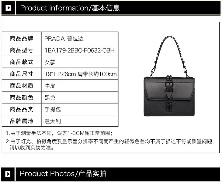【香港直邮】·QH Prada 普拉达 女士黑色牛皮挎包 1BA179-2BBO-F0632-OBH