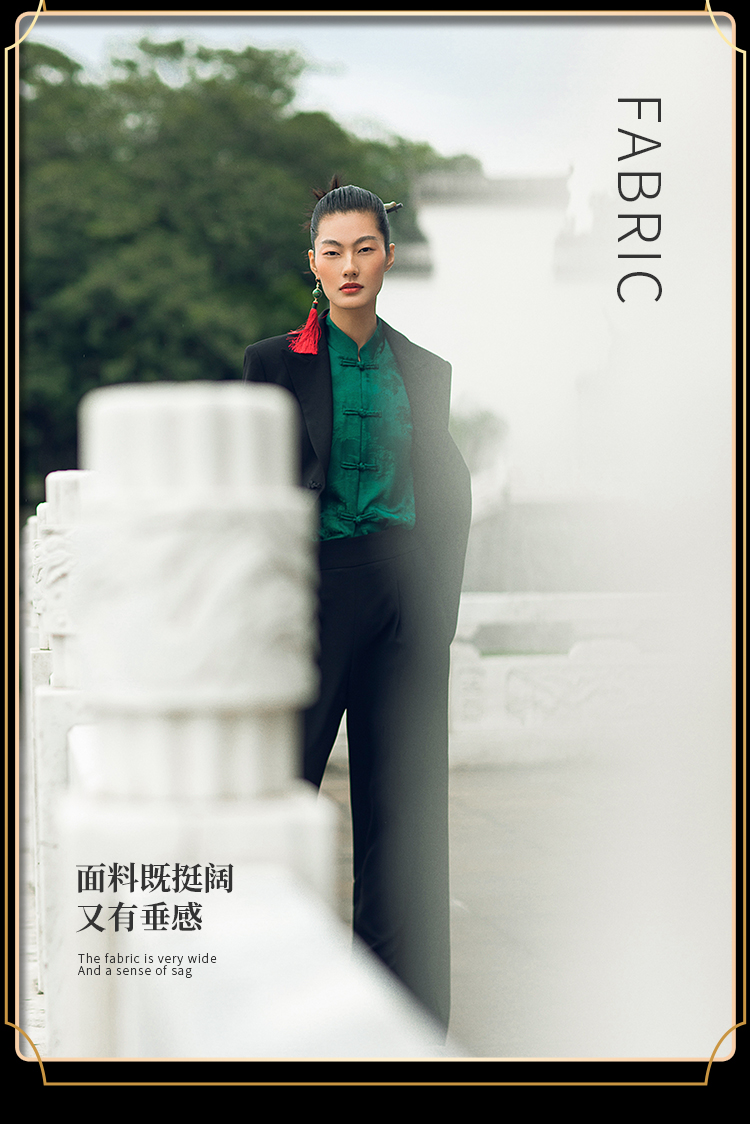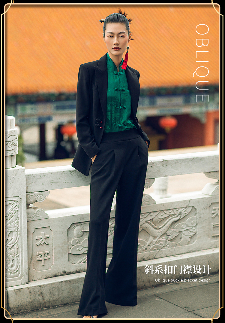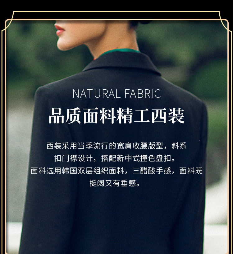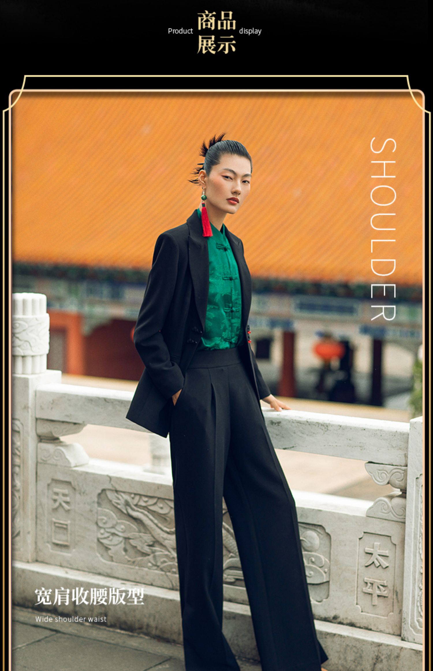 IWY/职业时尚西装套装宽肩收腰中式盘扣中国风流行213221C1+213221P2