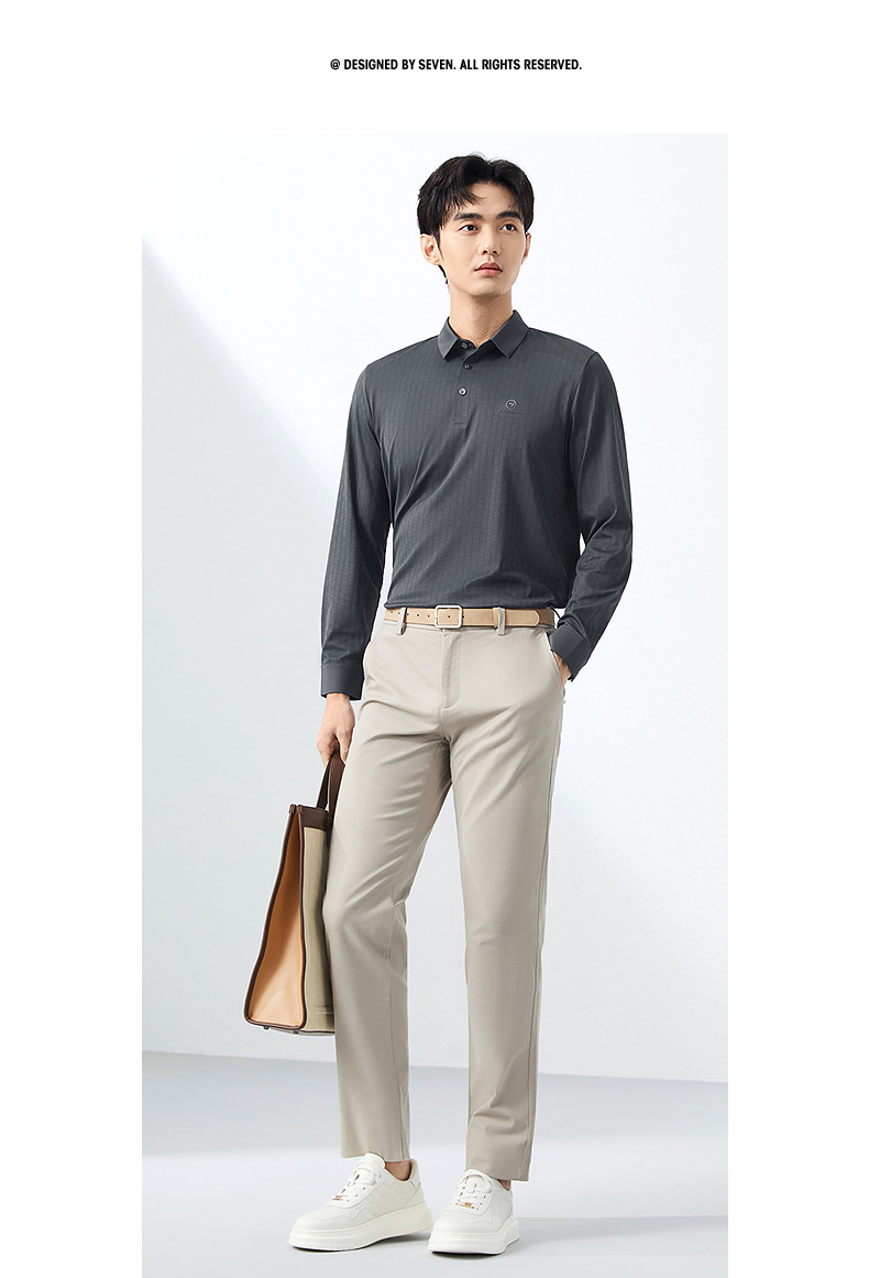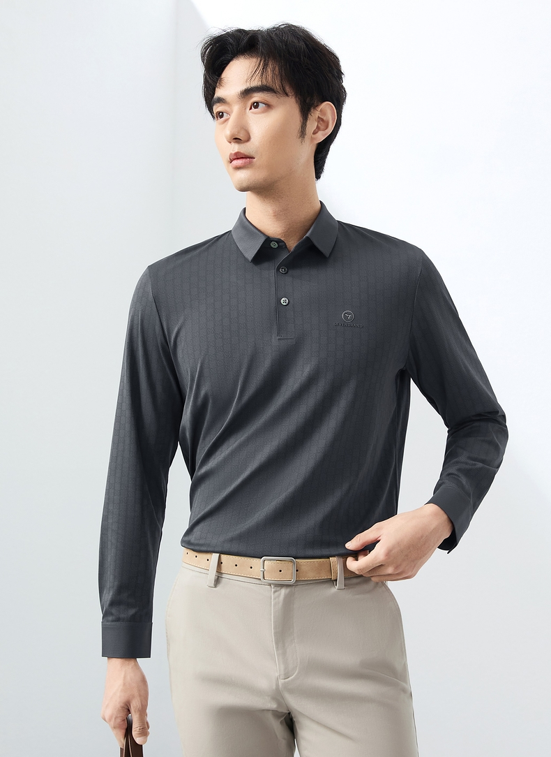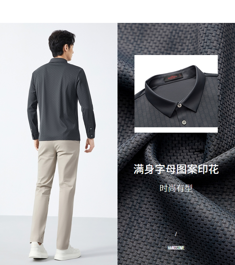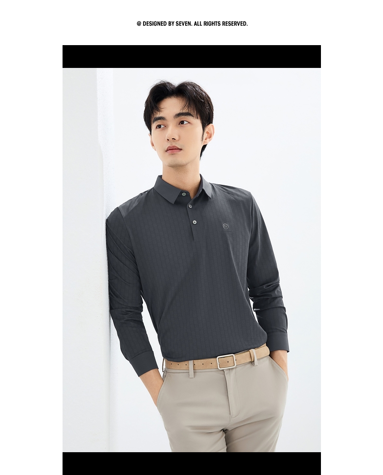 【无缝】柒牌polo衫男长袖2025春季新款时尚潮流字母满印翻领上衣128T71700