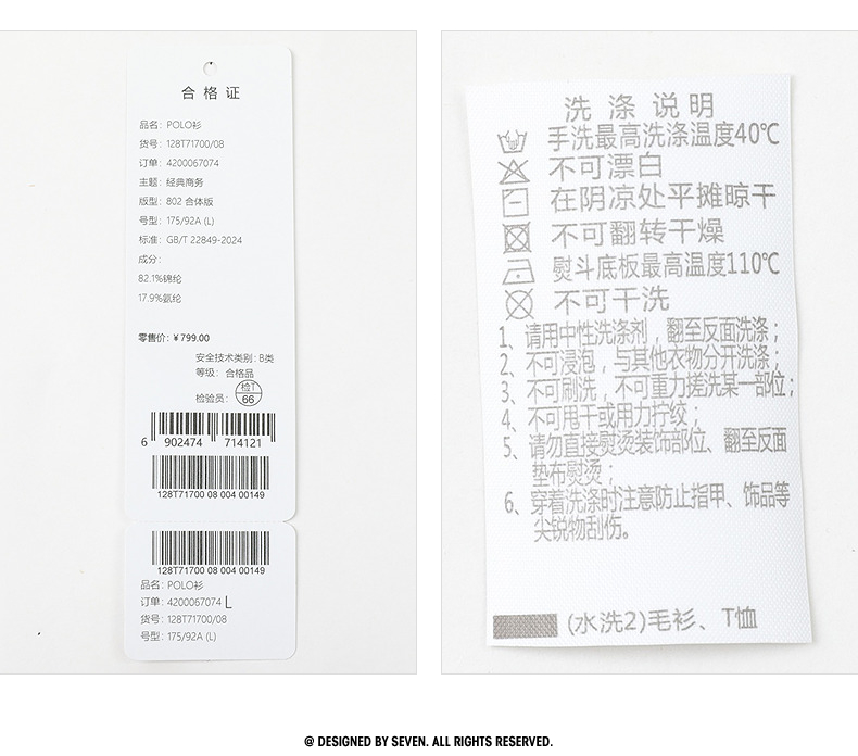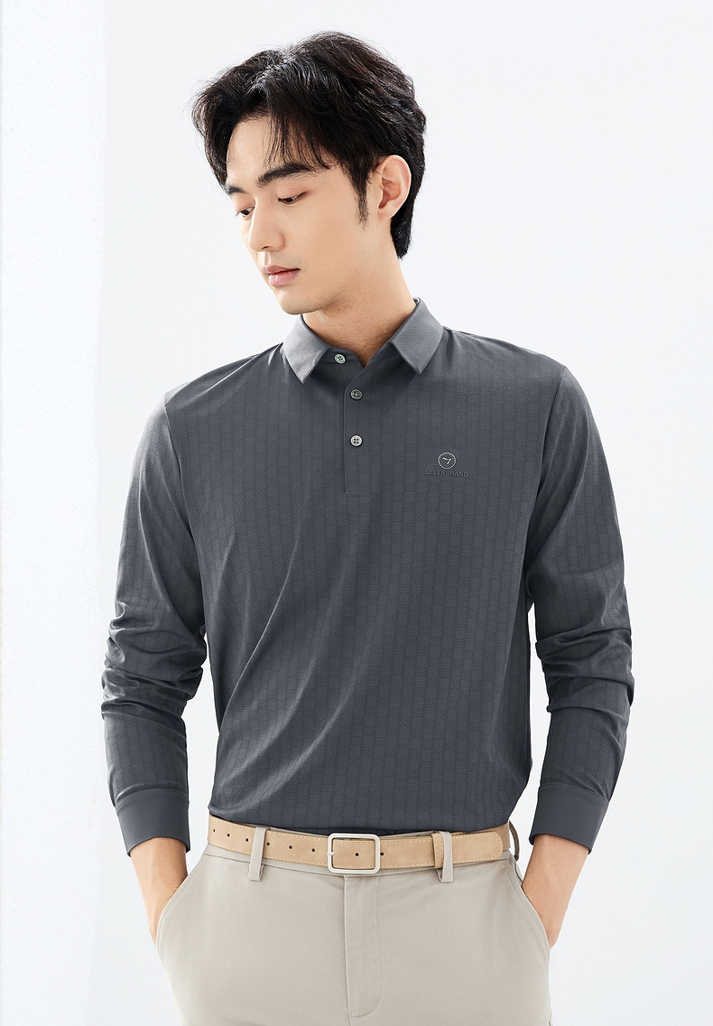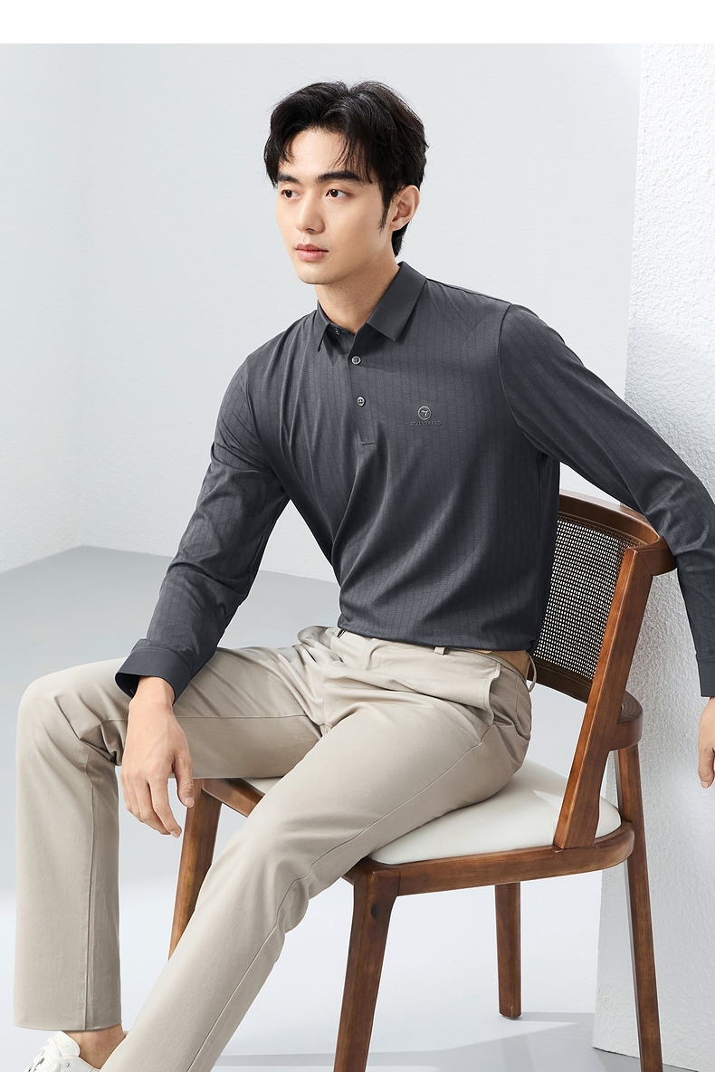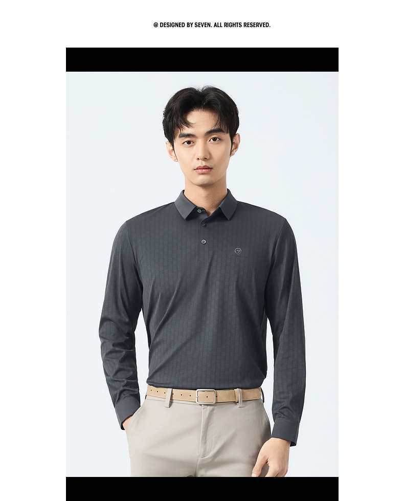 【无缝】柒牌polo衫男长袖2025春季新款时尚潮流字母满印翻领上衣128T71700