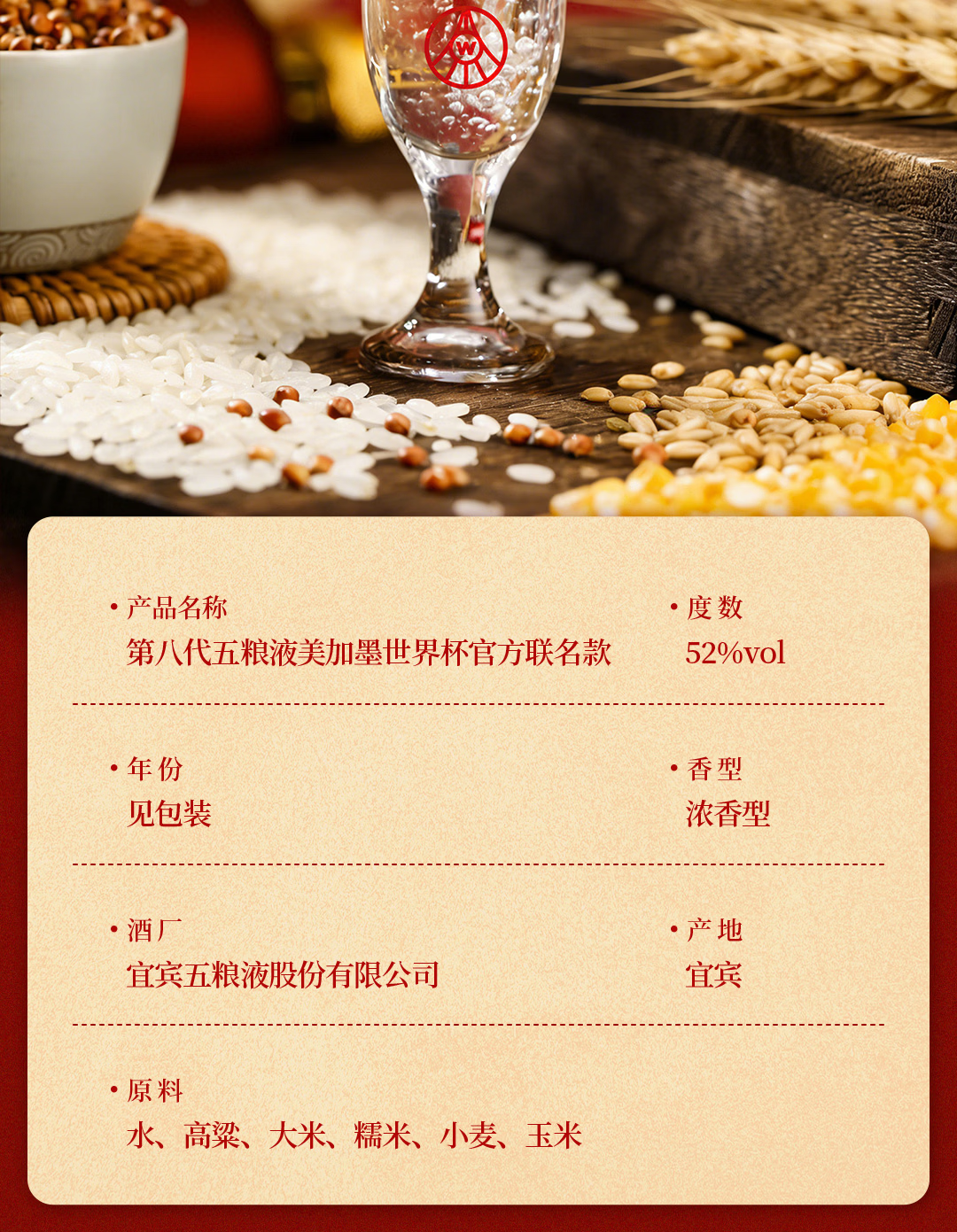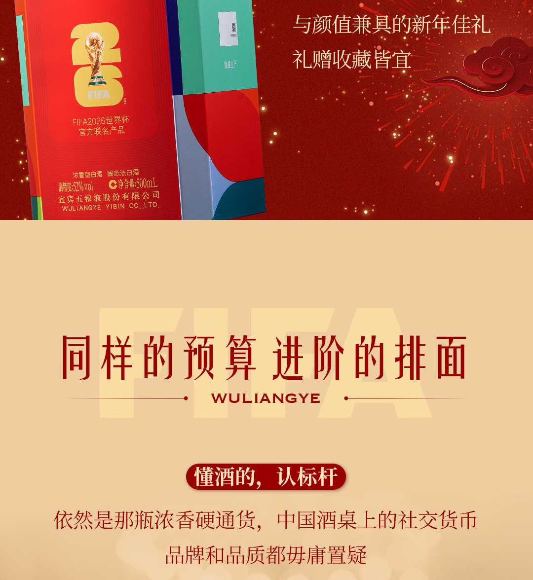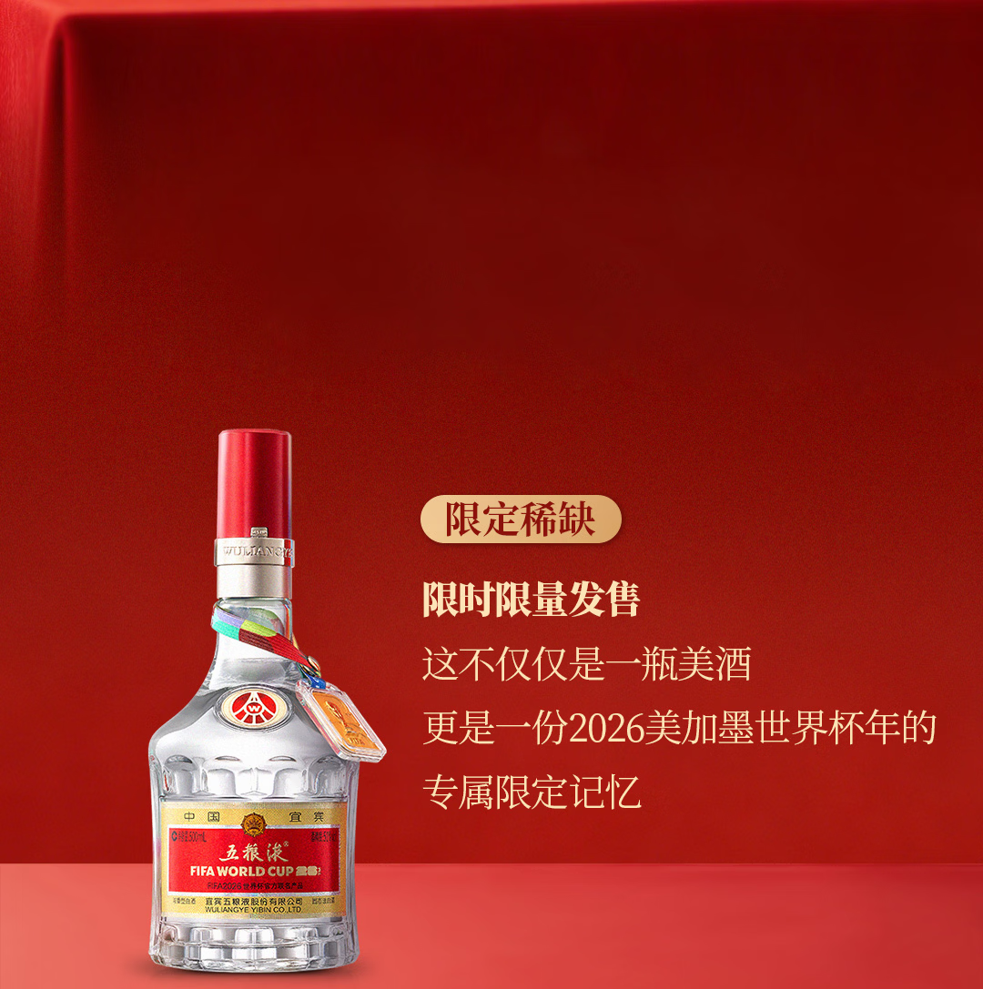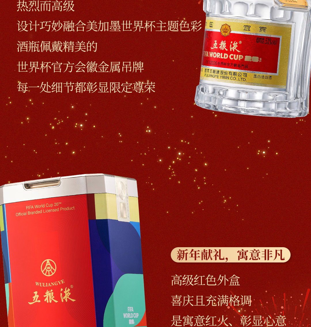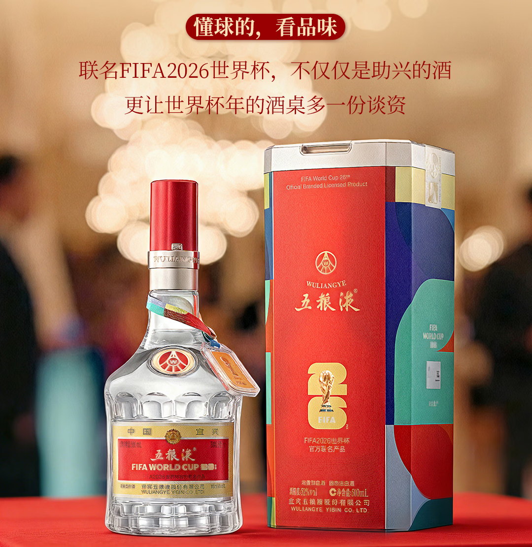 52度五粮液八代系列FIFA(美加墨世界杯官方联名款)500ml 单瓶
