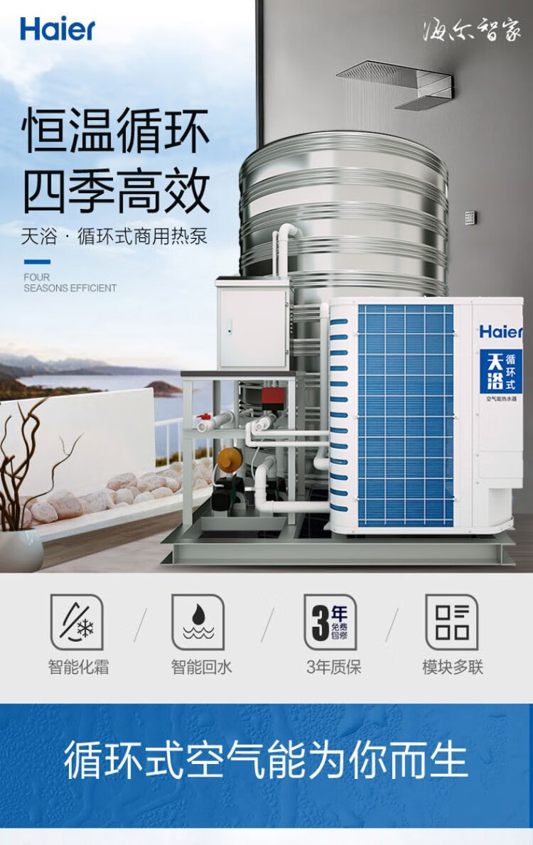 海尔5匹3吨热泵空气能热水器 酒店宾馆民宿别墅用 包安装 送货入户