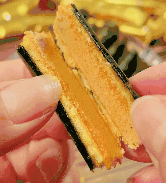 一口下去满嘴塞满馅料的玩意儿还是头一回见! 肉松馅的蛋卷+海苔卷真的就是天生原配的感觉!! 🥳咸香酥脆,很有绵沙绵沙的口感! 真的太适合嘴馋的时候来一个了!