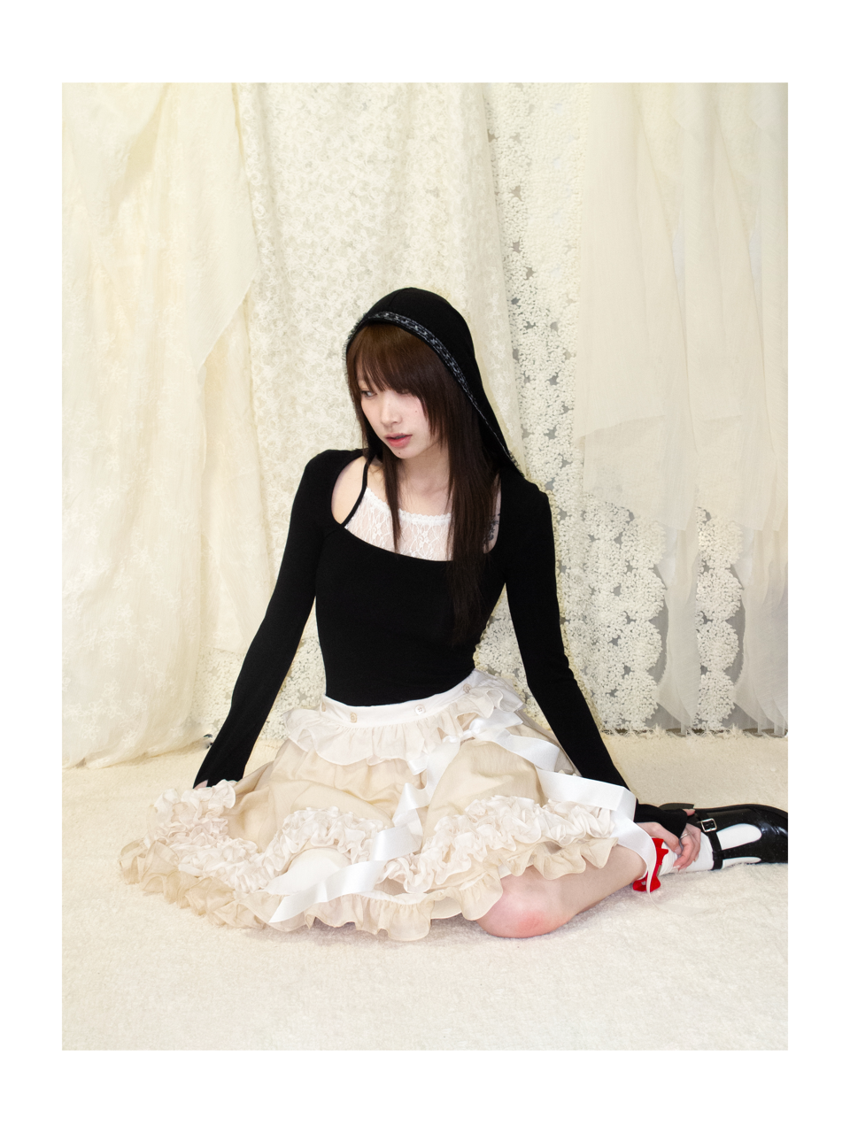 Kaiy Xiao 鹿灵连帽蕾丝吊带上衣