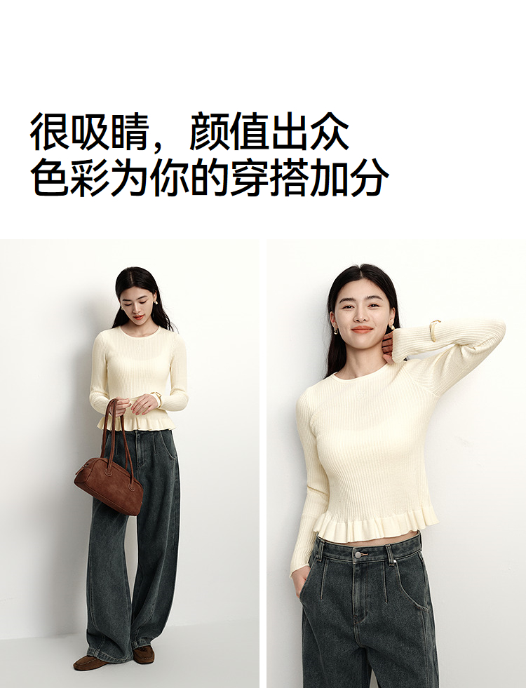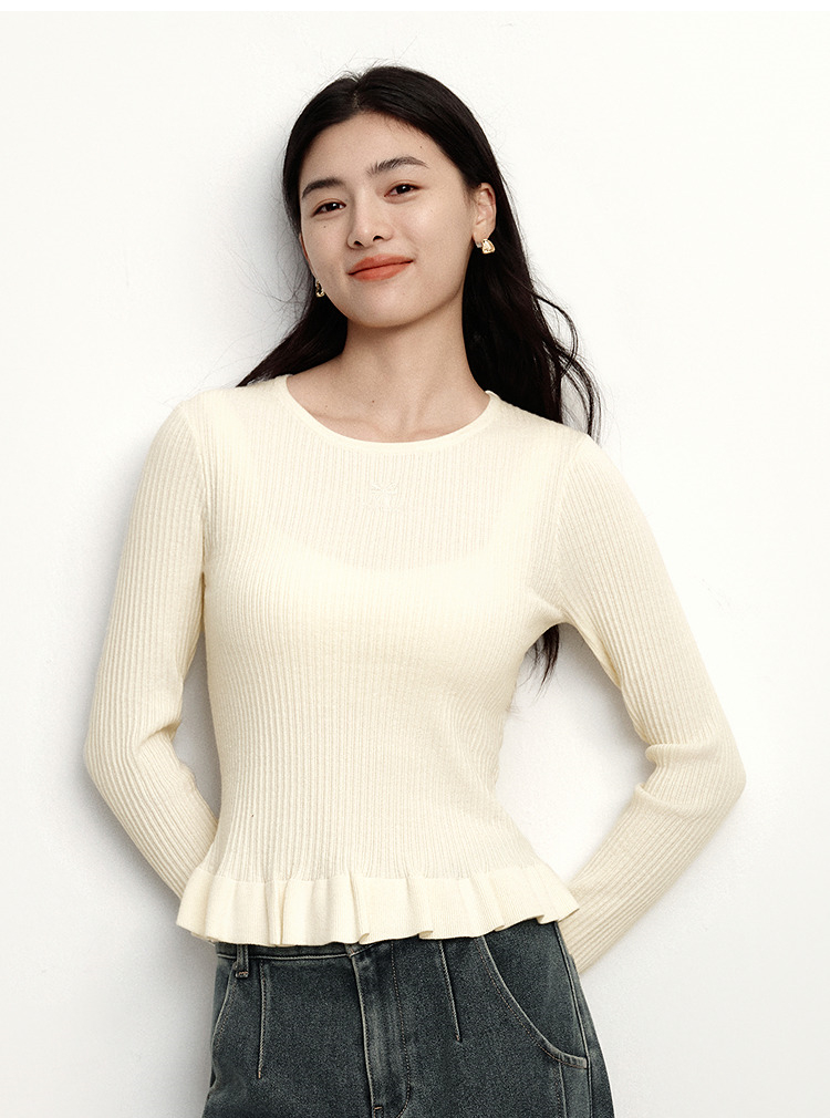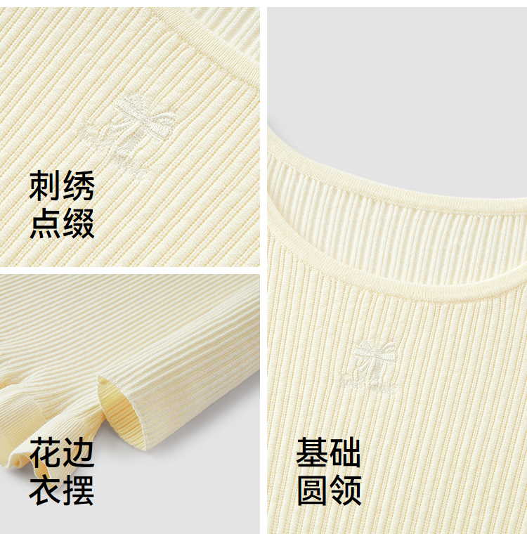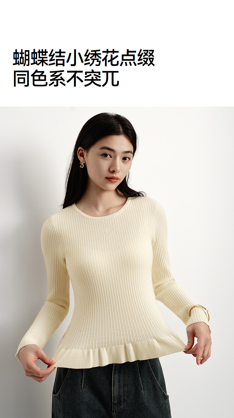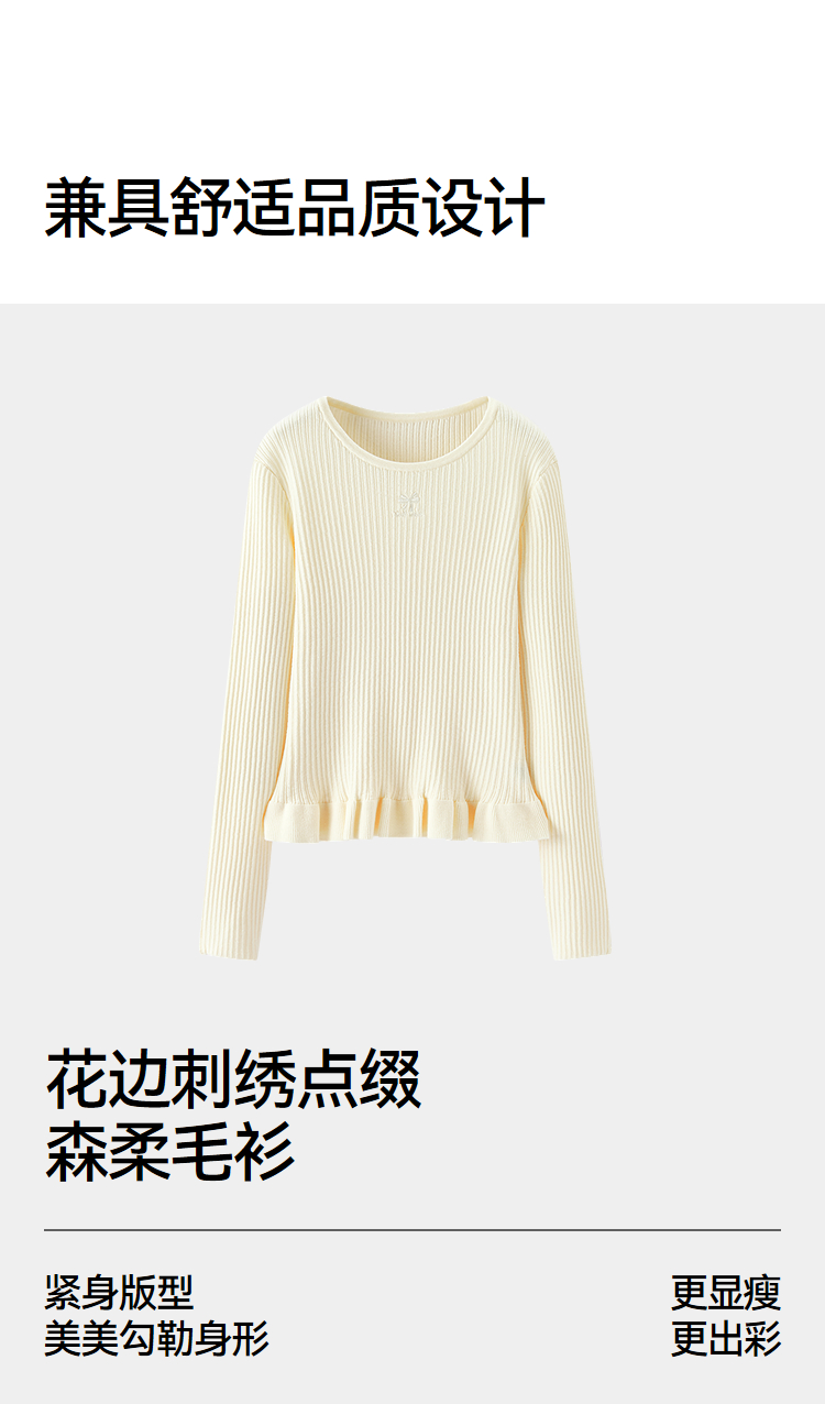 森柔|森马针织衫女冬季花边刺绣紧身2025新款少女感显瘦套头毛衫