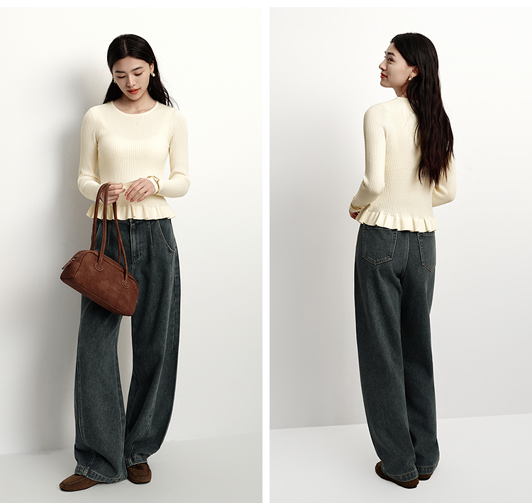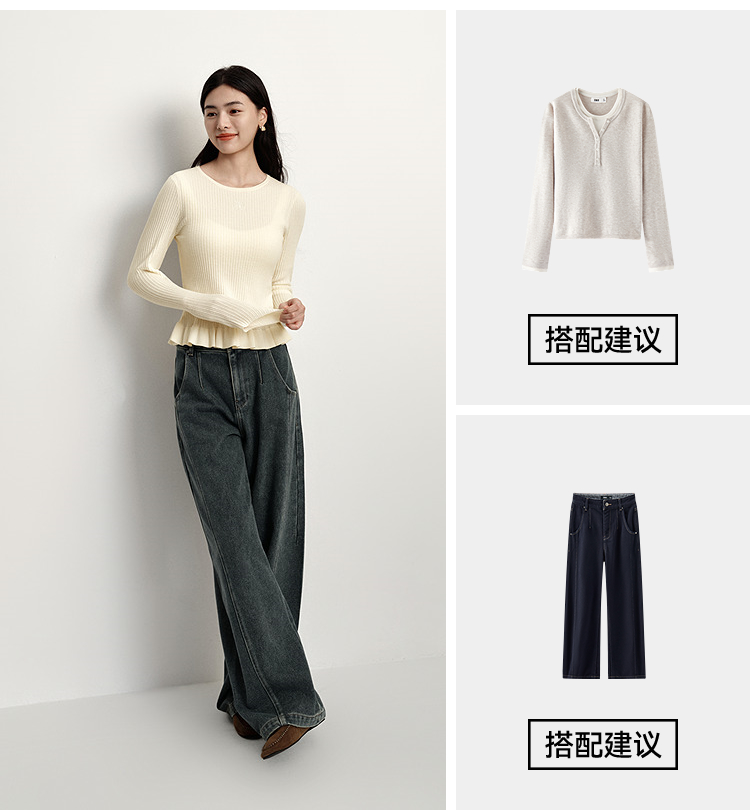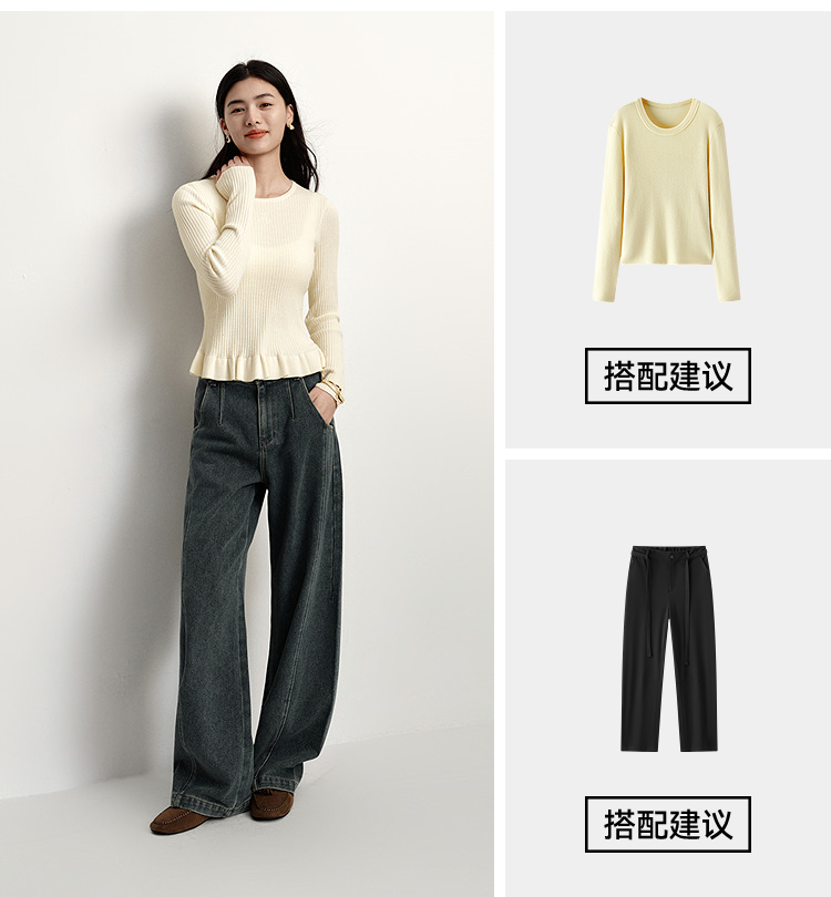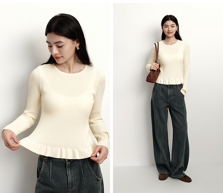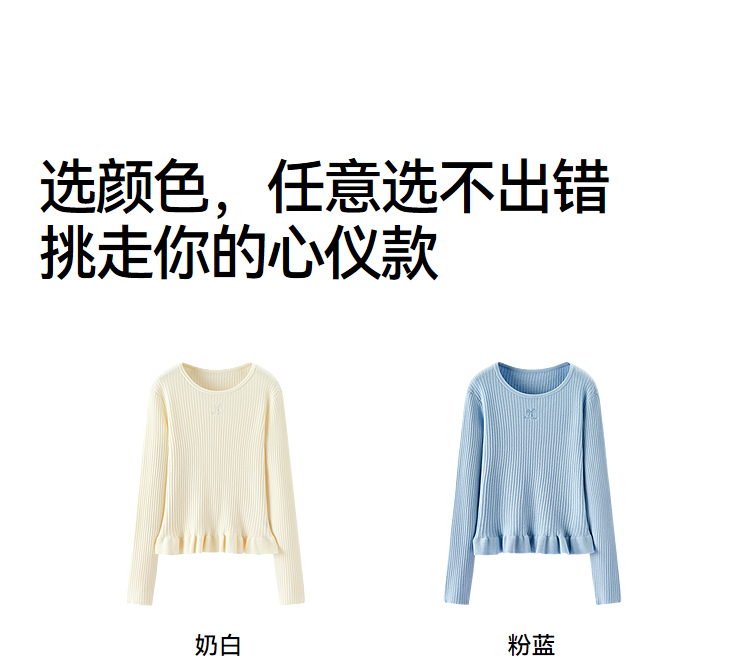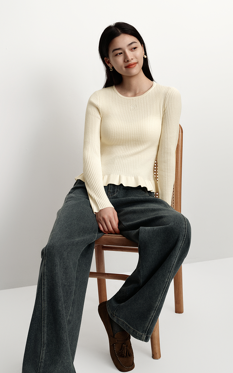 森柔|森马针织衫女冬季花边刺绣紧身2025新款少女感显瘦套头毛衫