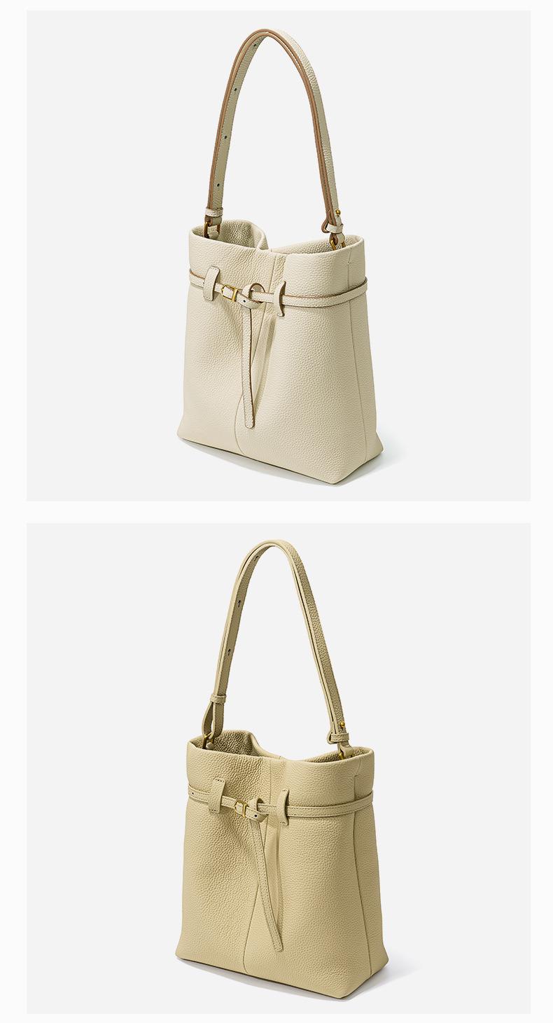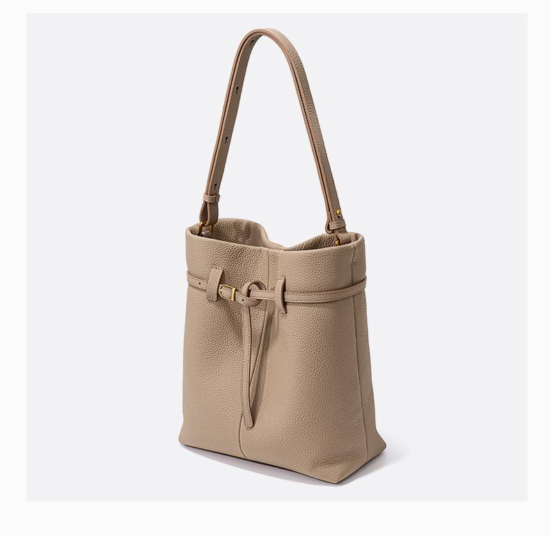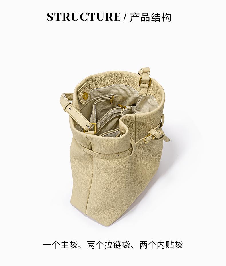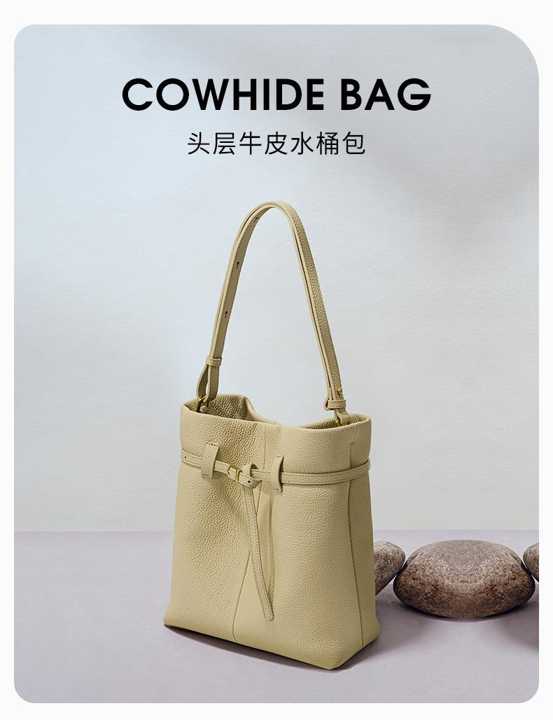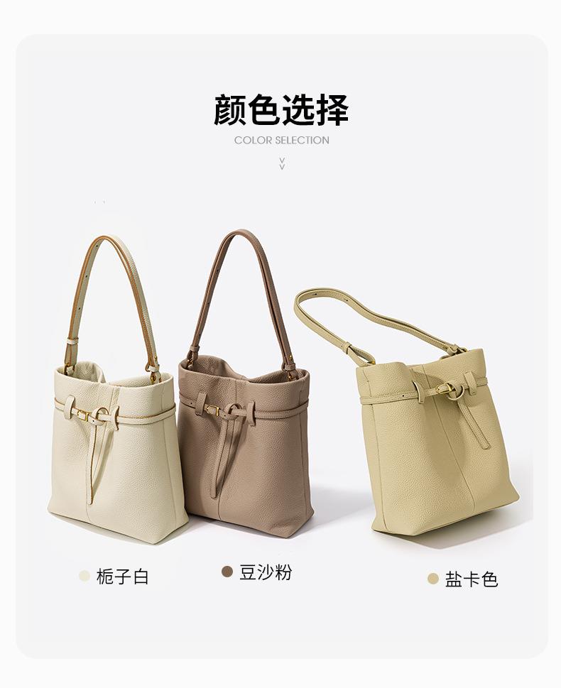 小众设计头层牛皮水桶包2024新款时尚百搭手提包大容量真皮单肩包