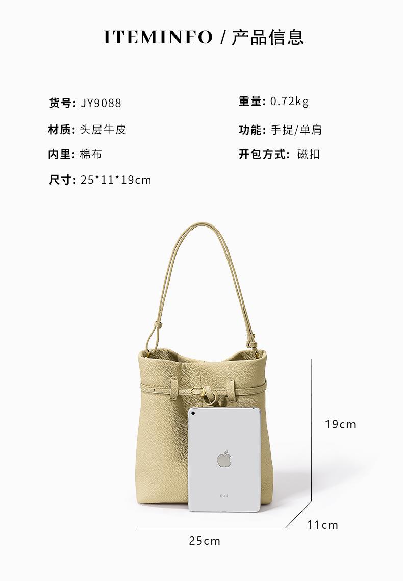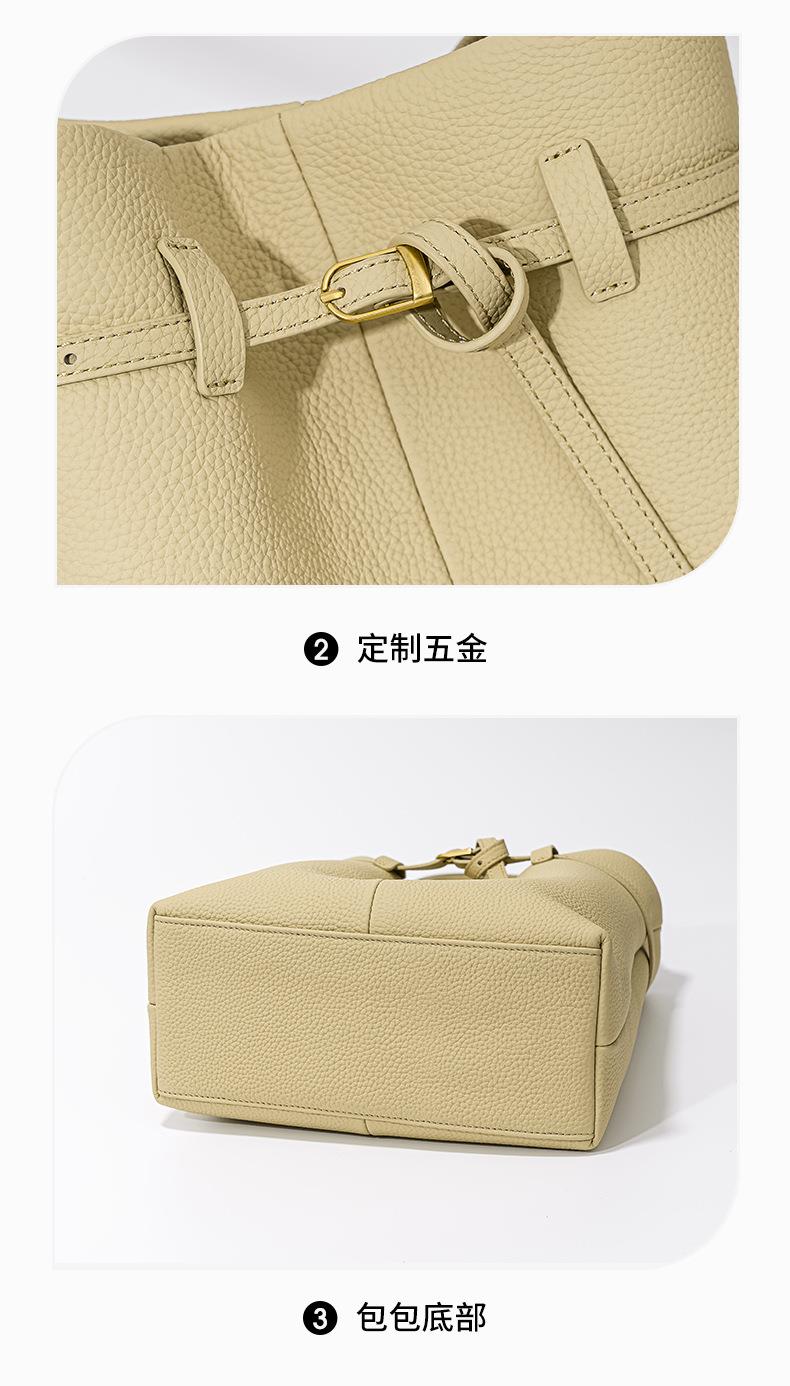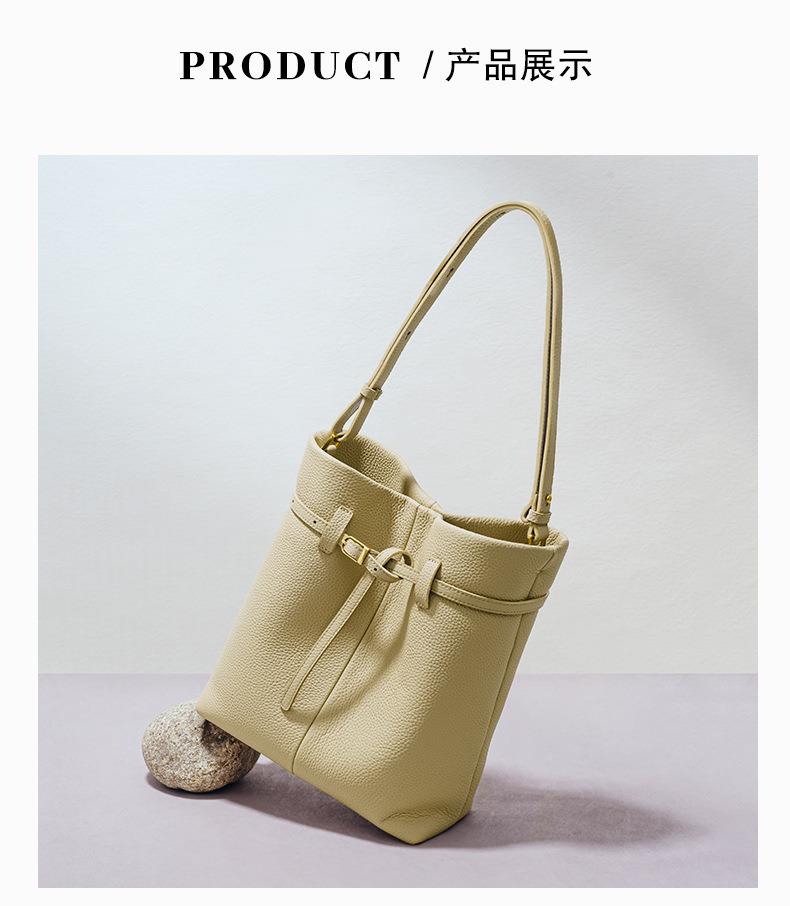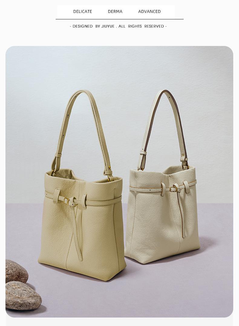 小众设计头层牛皮水桶包2024新款时尚百搭手提包大容量真皮单肩包