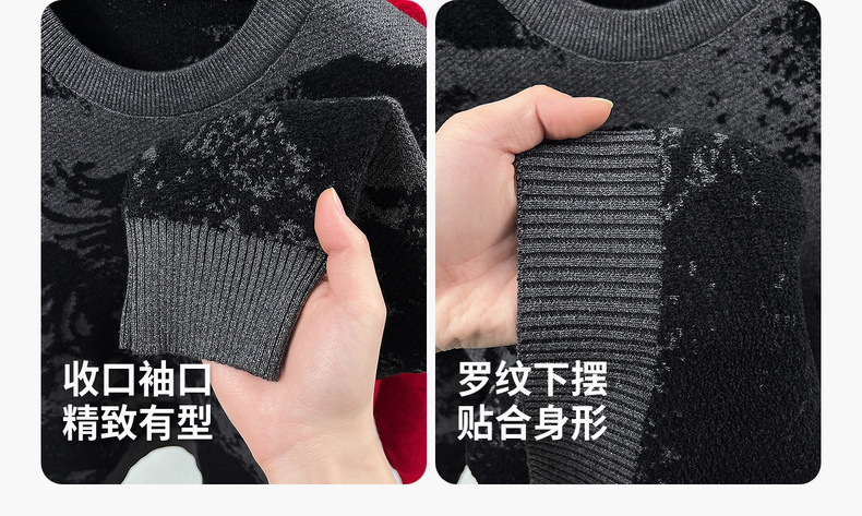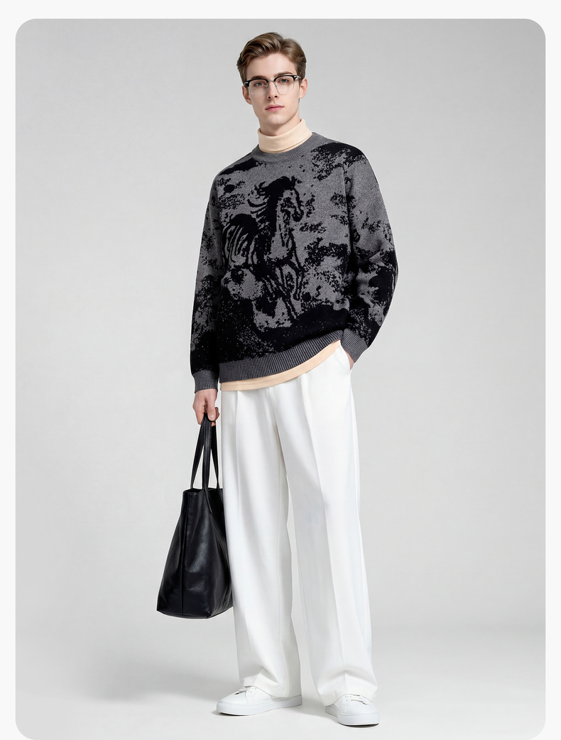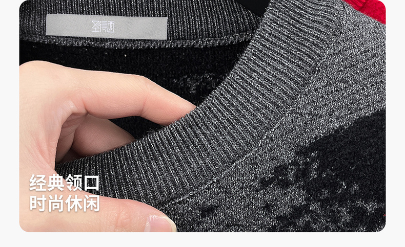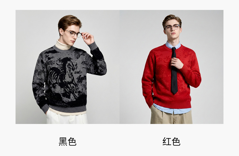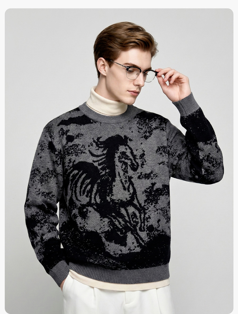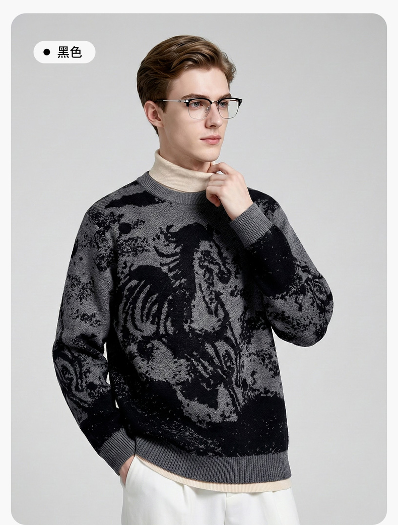 圣得西2025年冬季男士新款针织毛衣动物提花圆领套头时尚保暖毛衫