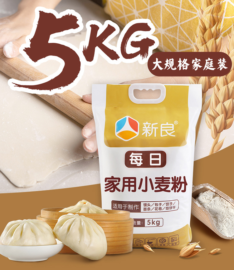 新良每日家用小麦粉5kg*2面粉家用20斤中筋粉包子馒头粉用专粉