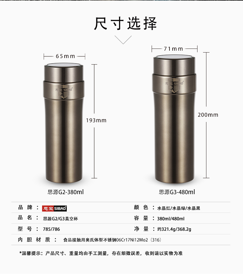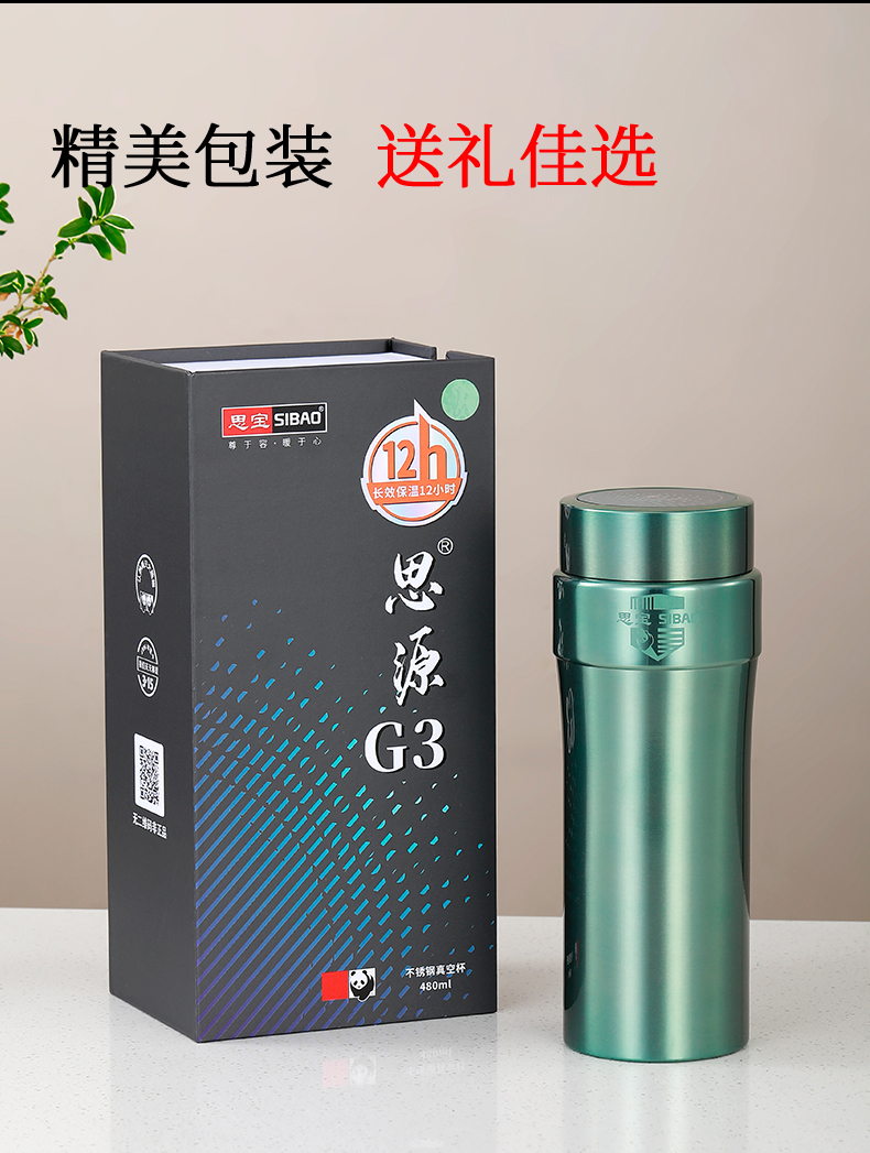 思宝官方旗舰店新品思源G2/G3真空保温杯便携车载礼盒装内置茶隔