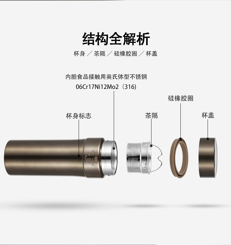 思宝旗舰店新品方舟C真空保温杯车载便携商务泡茶水杯304不锈钢