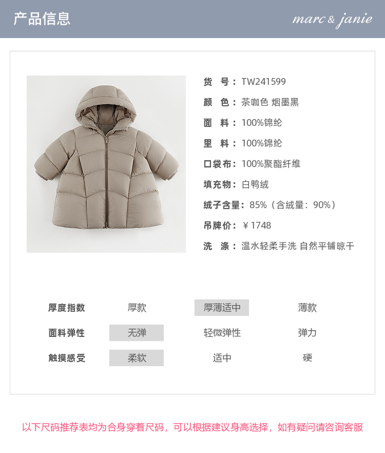 【三防加厚】马克珍妮女童超轻长款保暖羽绒服2024冬装新款241599
