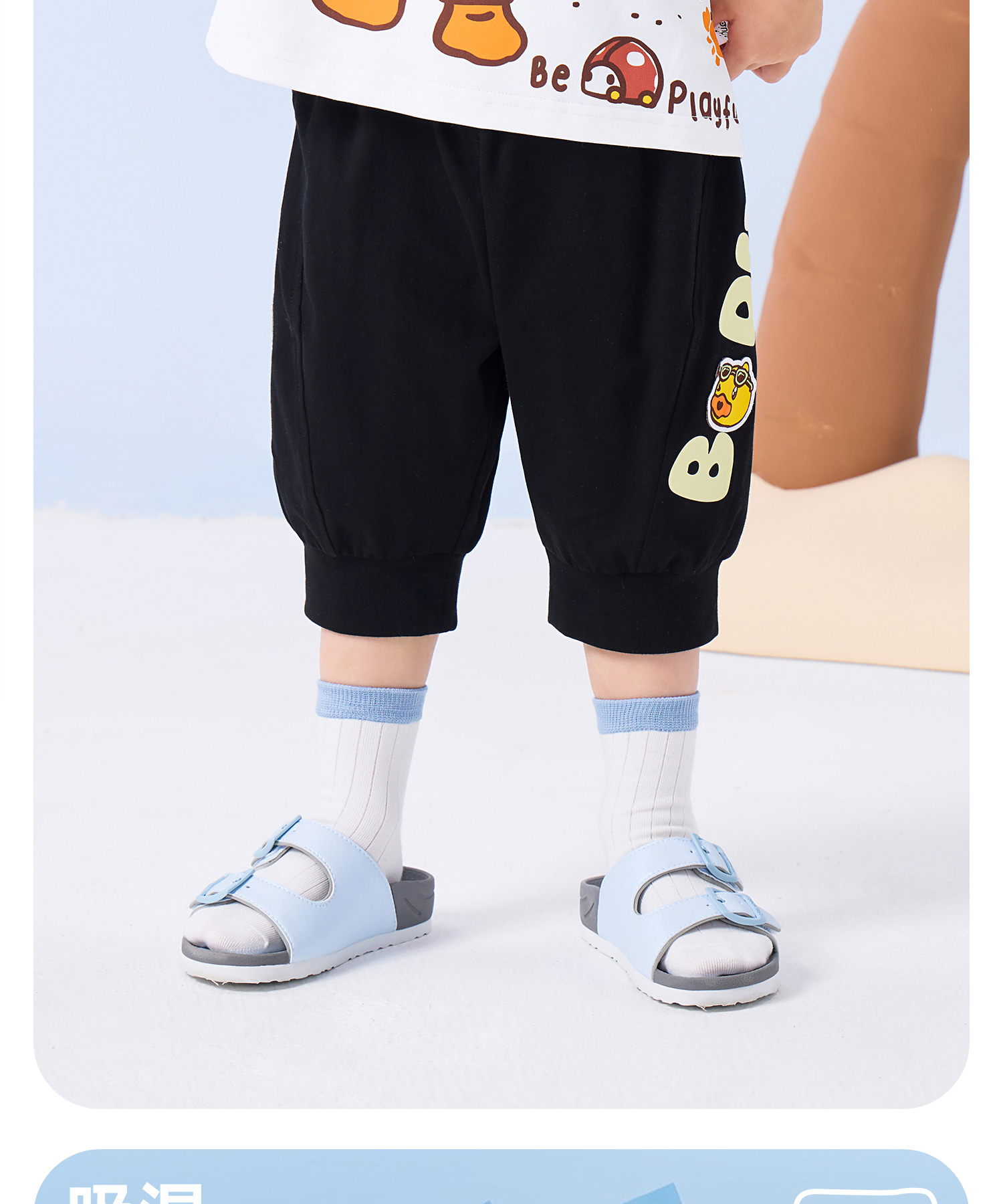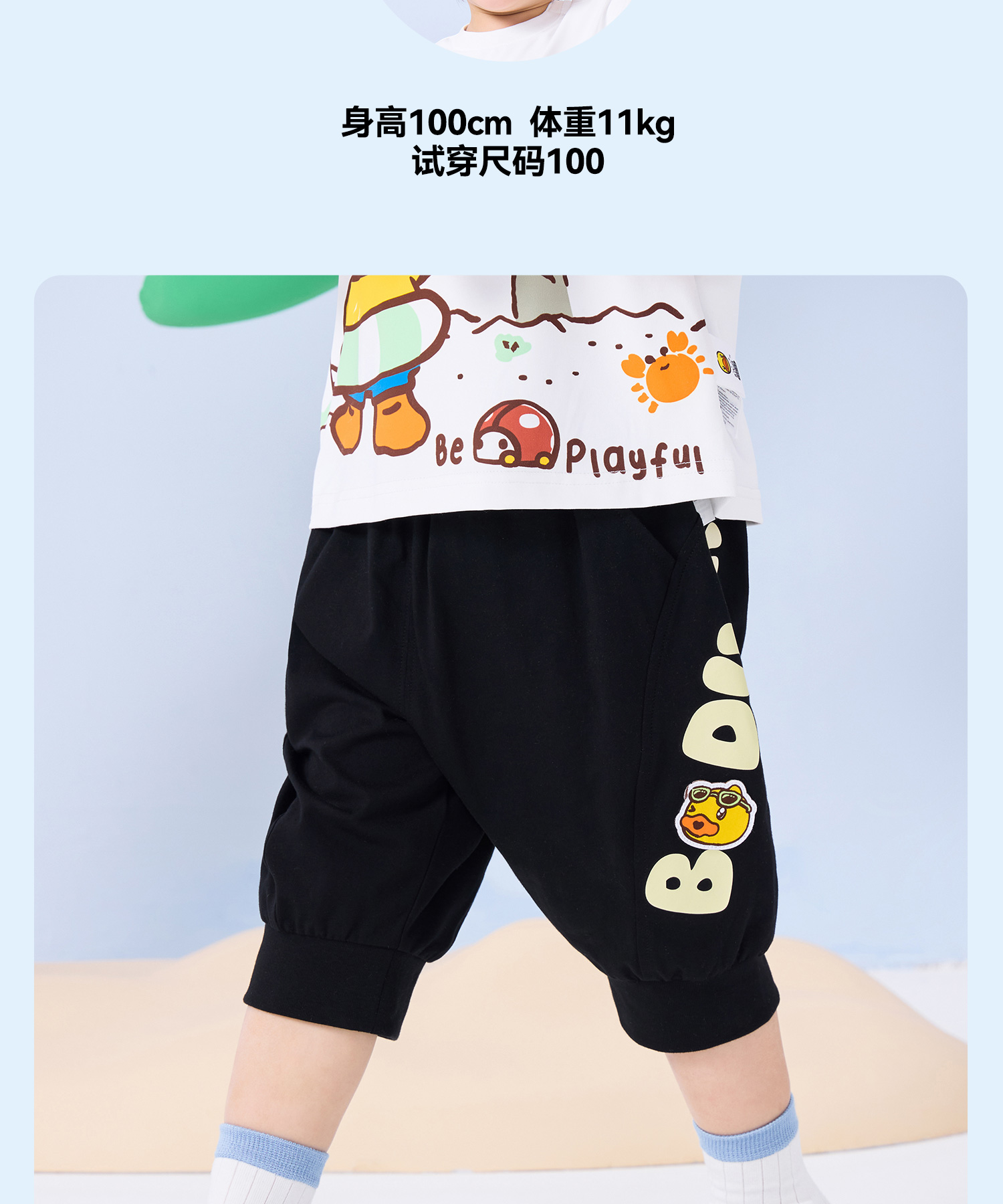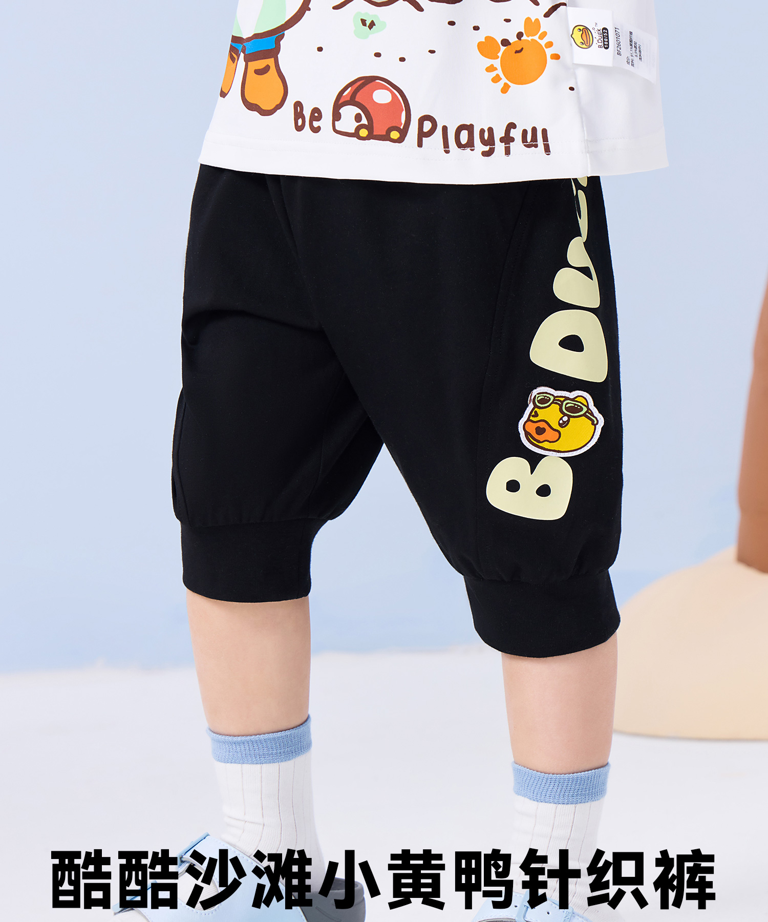 bduck小黄鸭童装夏季男童裤子宝宝七分裤夏款儿童纯棉长裤小童运动裤90-130 BF2653006