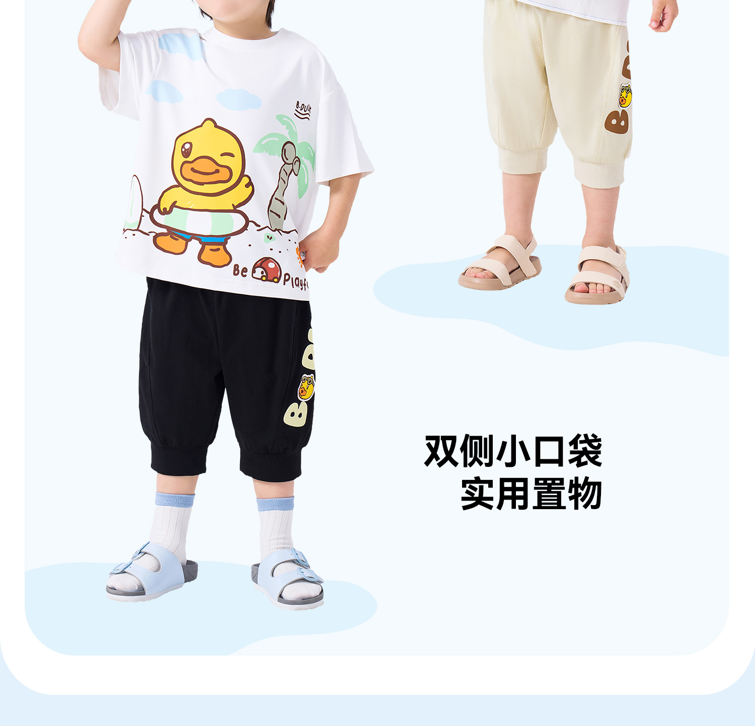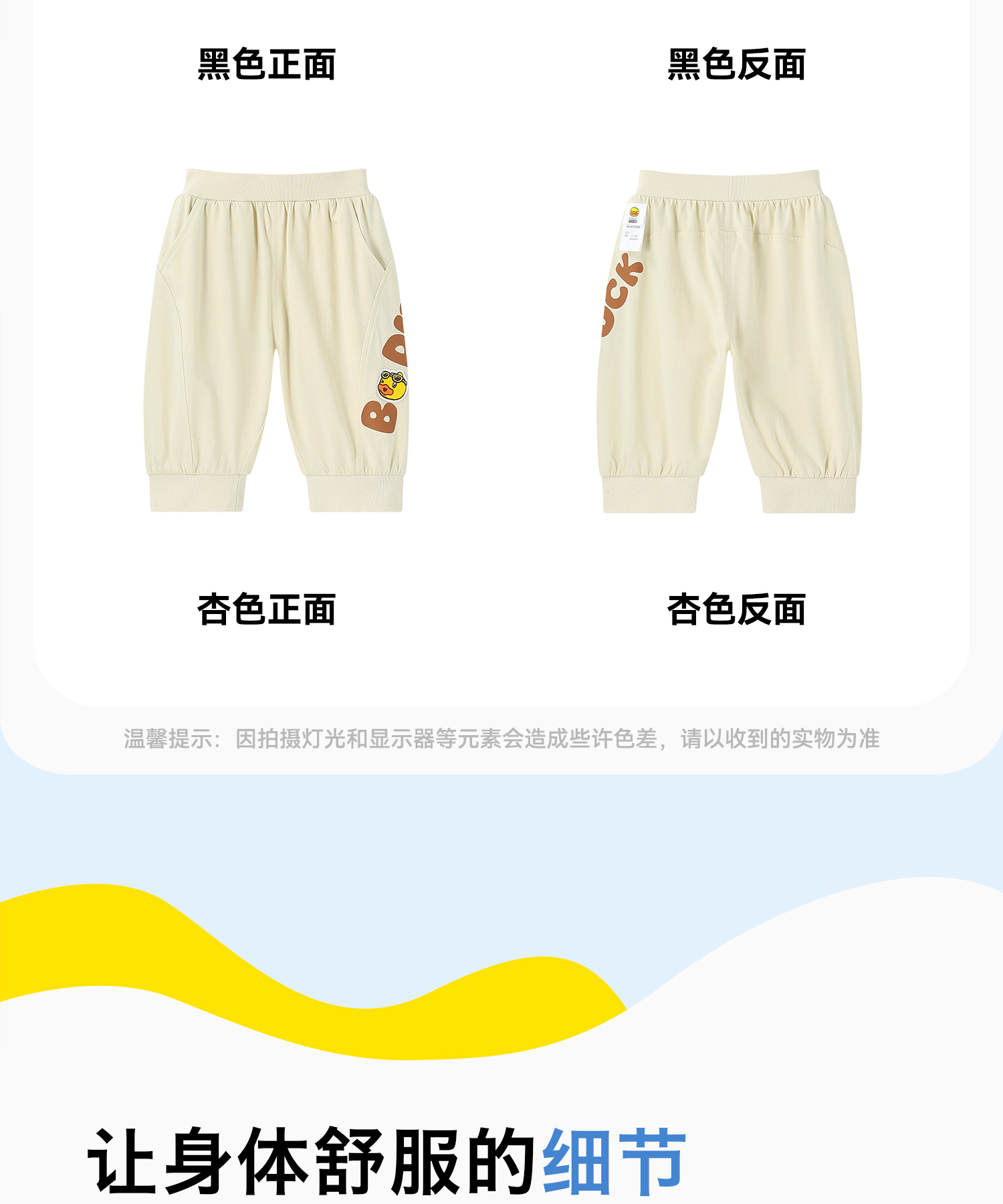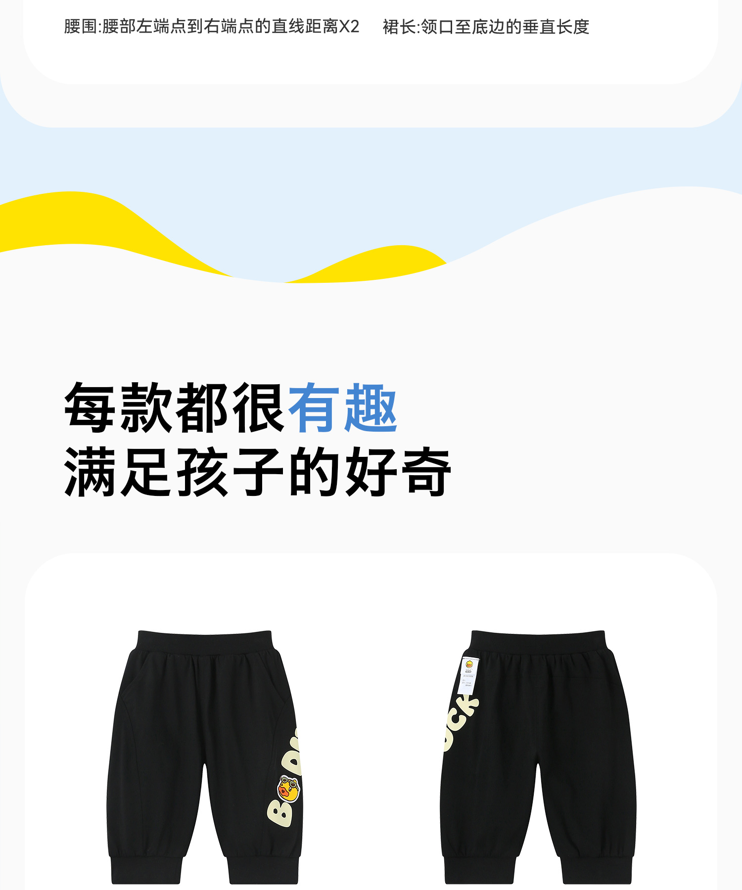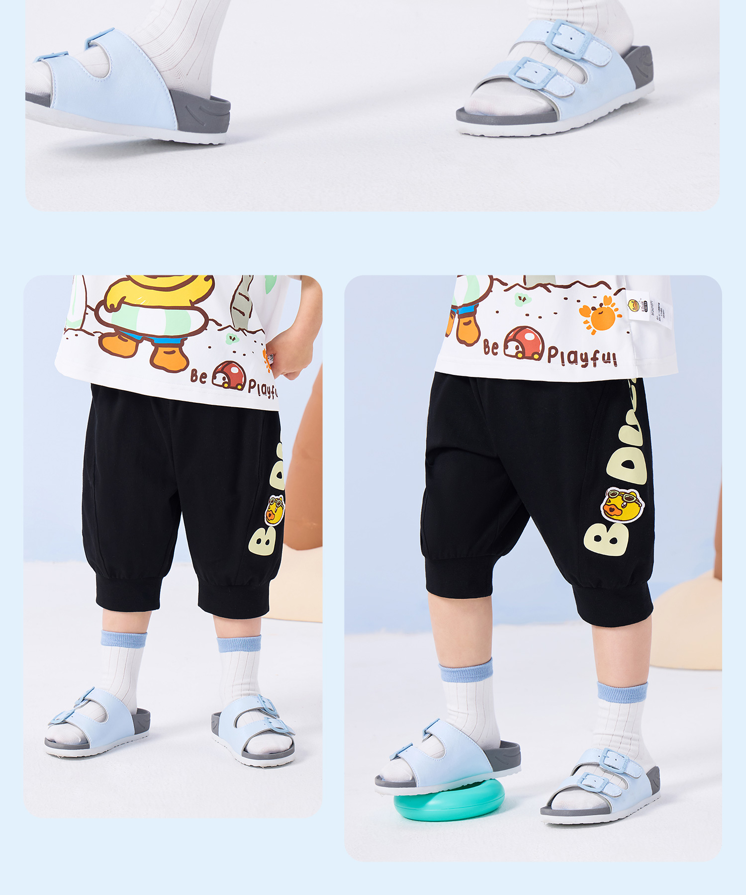 bduck小黄鸭童装夏季男童裤子宝宝七分裤夏款儿童纯棉长裤小童运动裤90-130 BF2653006
