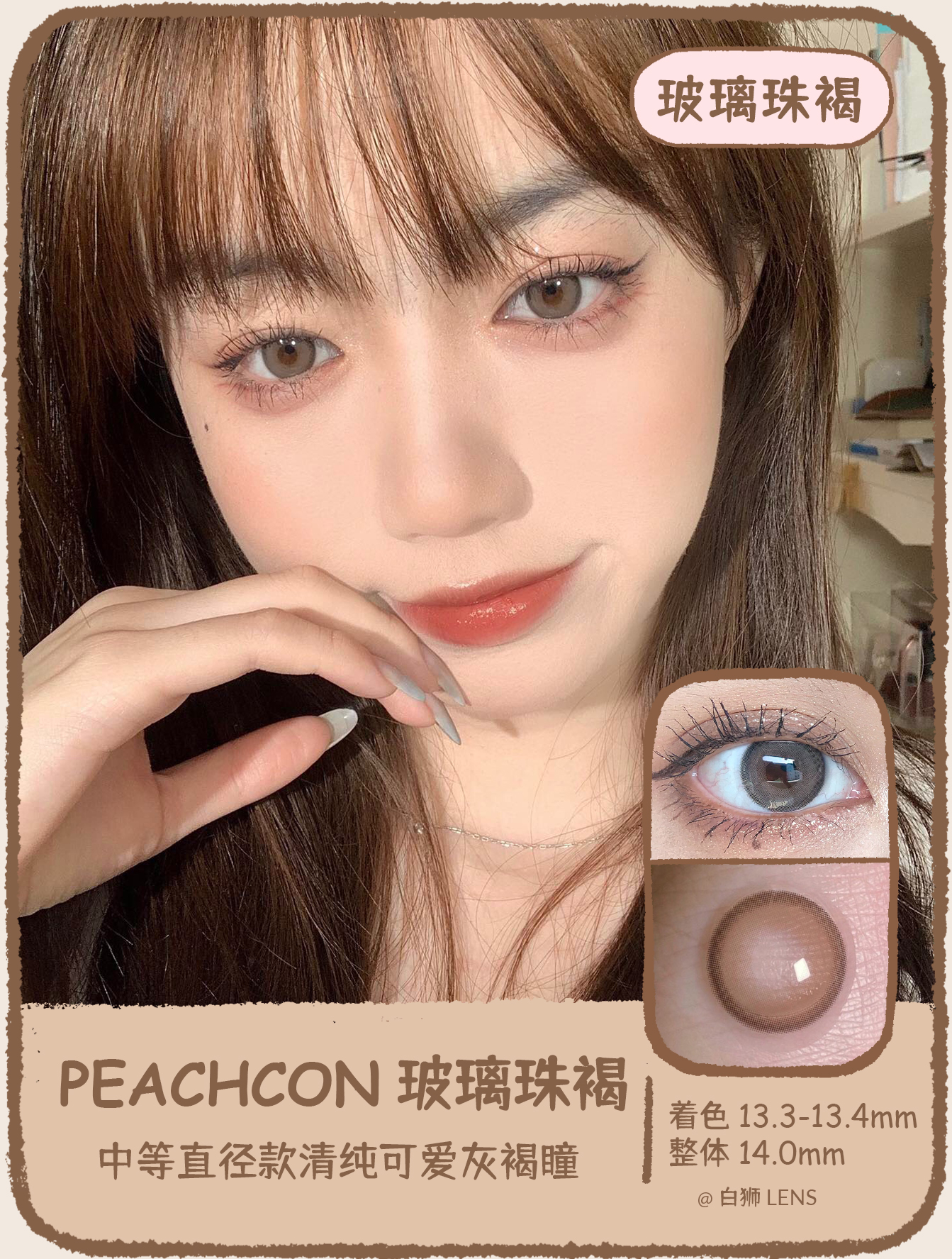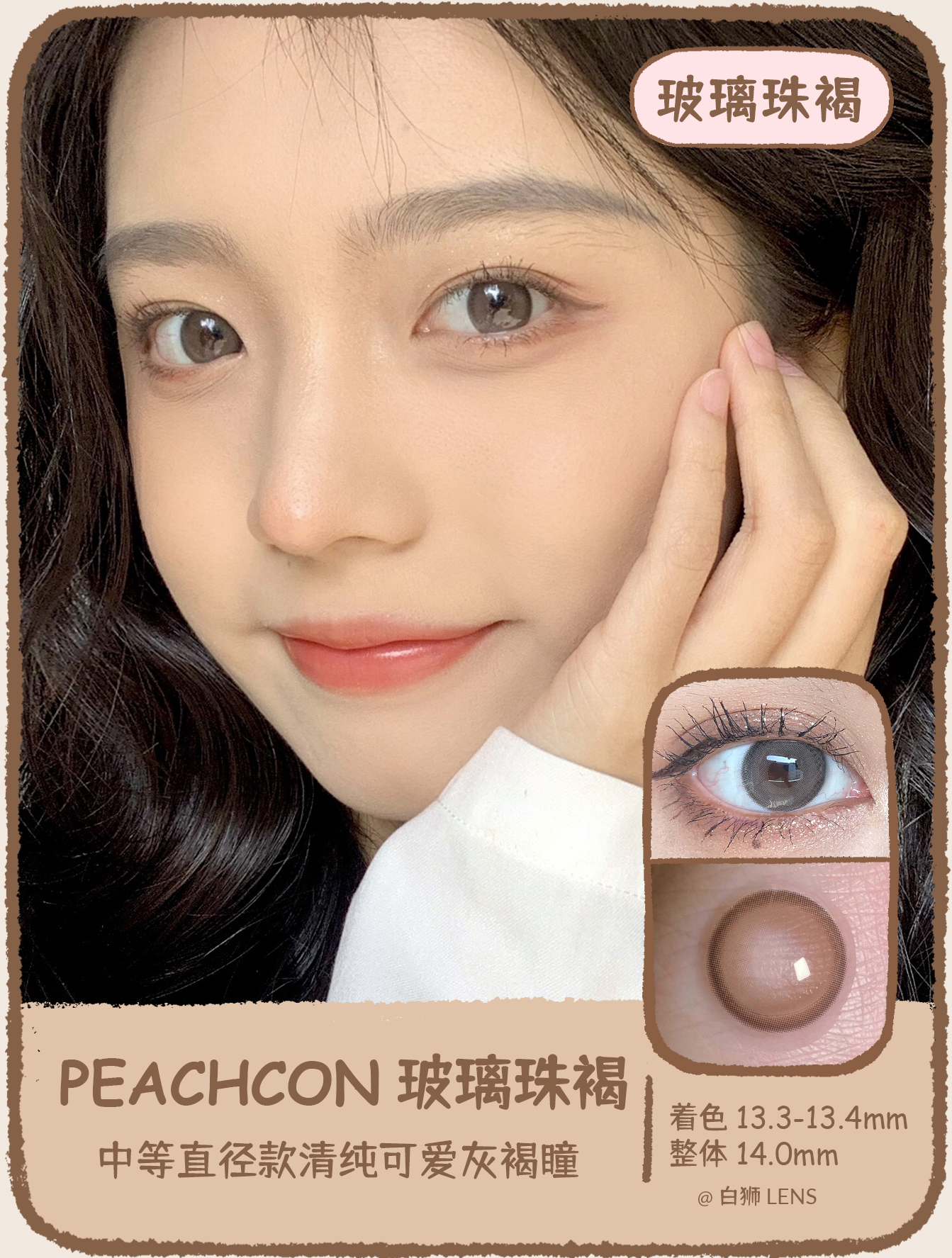 Peachcon旗下 · 玻璃珠褐/玻璃珠灰|原版正品|韩产长期抛|包装14.0mm但实际是14.2mm中等直径的效果