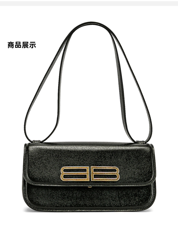 BALENCIAGA 巴黎世家 女士条纹压花小牛皮 BB金属徽标单肩包 黑色 674693 2101O 1000