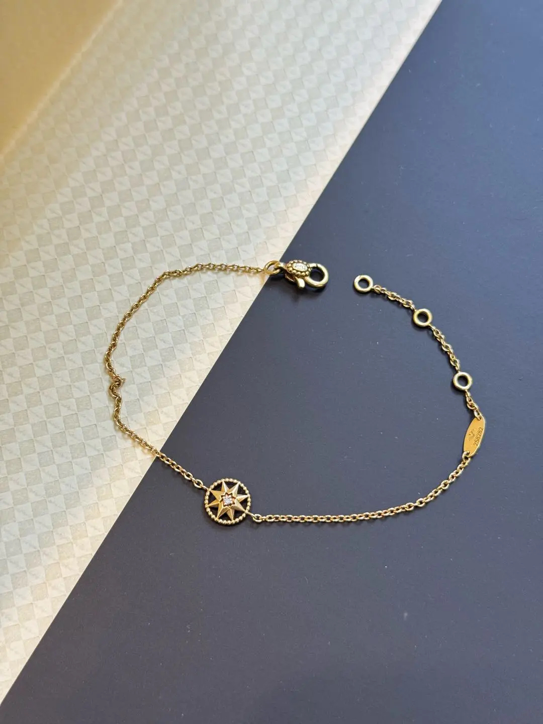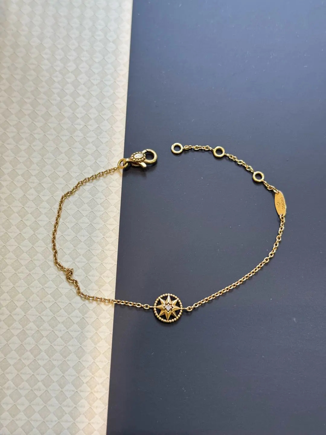 正品二手 Dior 18K金 八芒星 罗盘 镶钻 手链👋97新 18cm 配件:首饰盒。超级高级感
