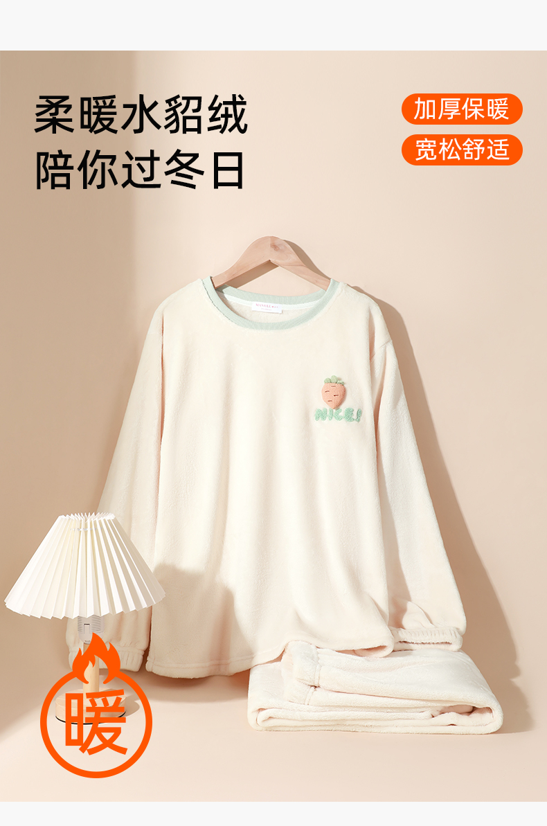 熳洁儿 水貂绒家居服秋冬女士套装蓬松细绒不掉毛柔软24753405
