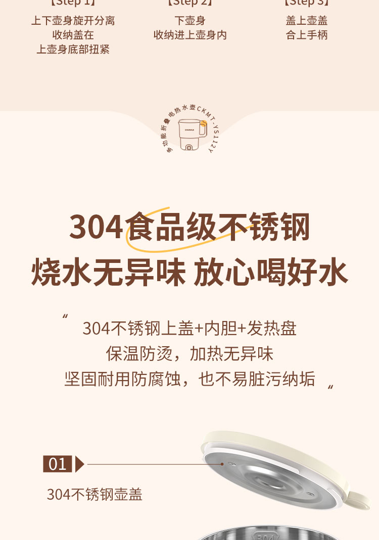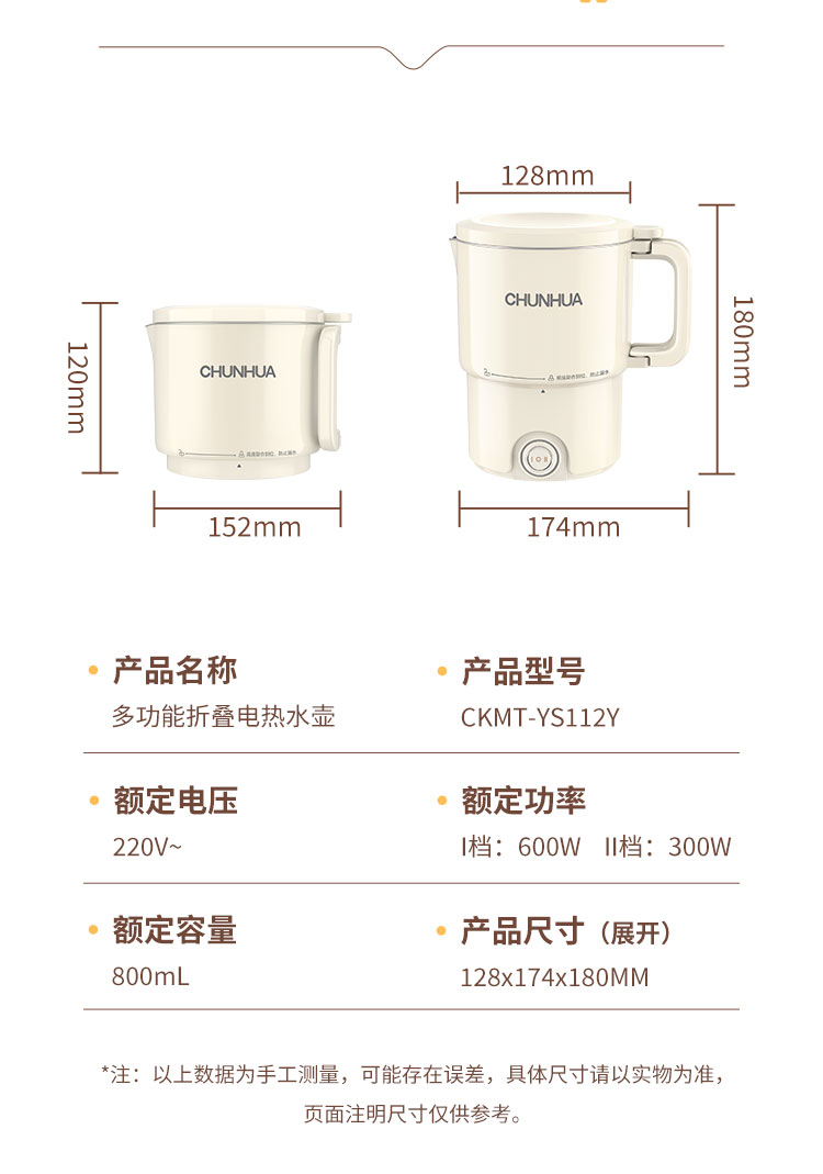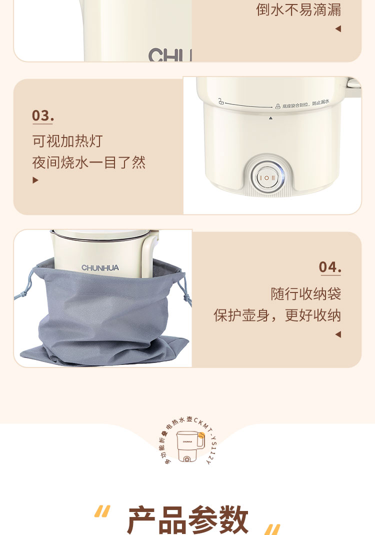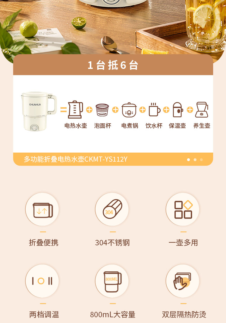 春花 多功能折叠电热水壶 CKMT-YS112Y