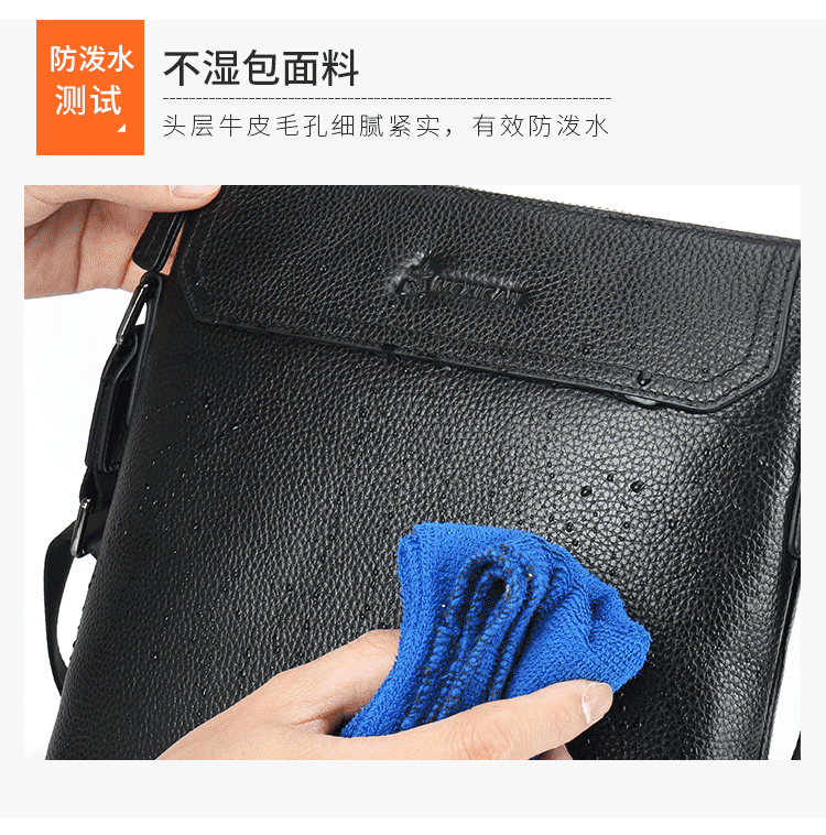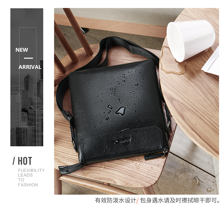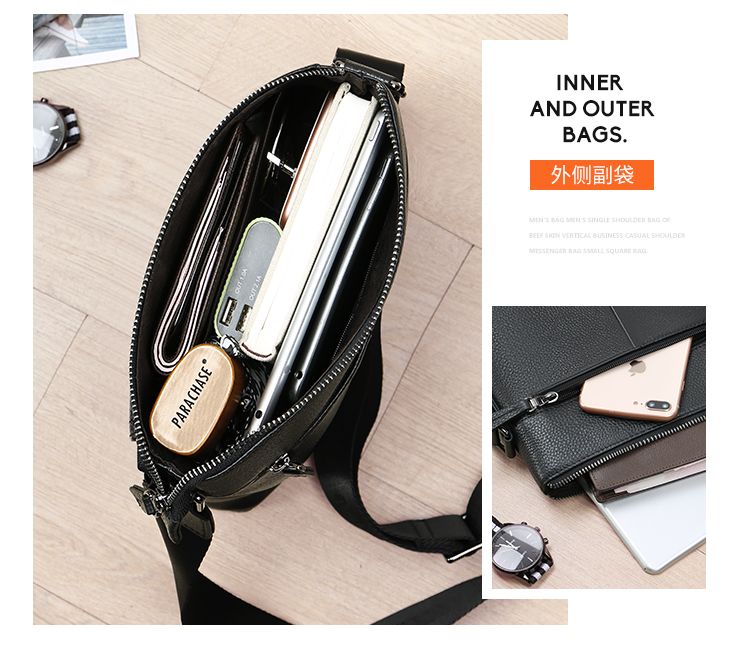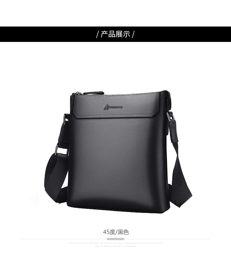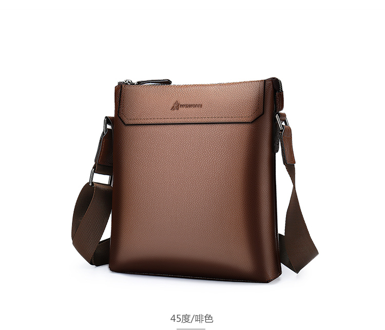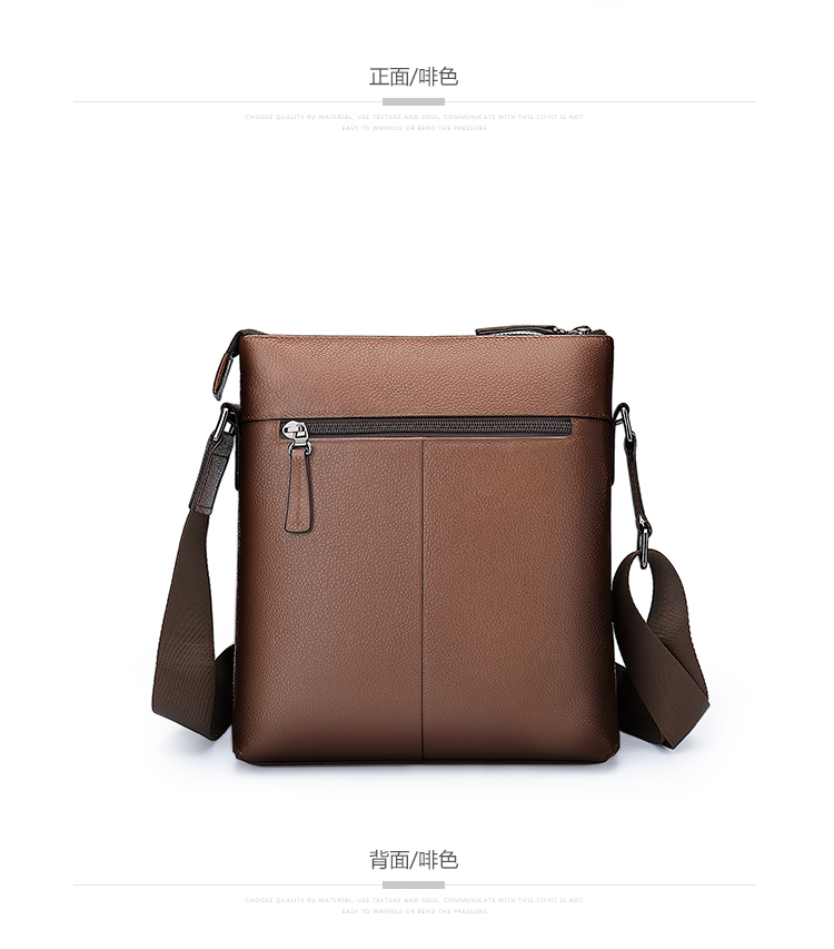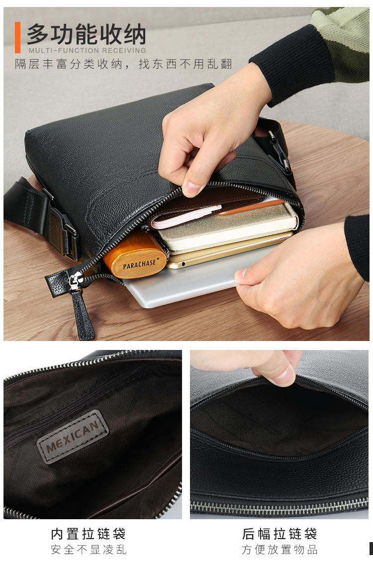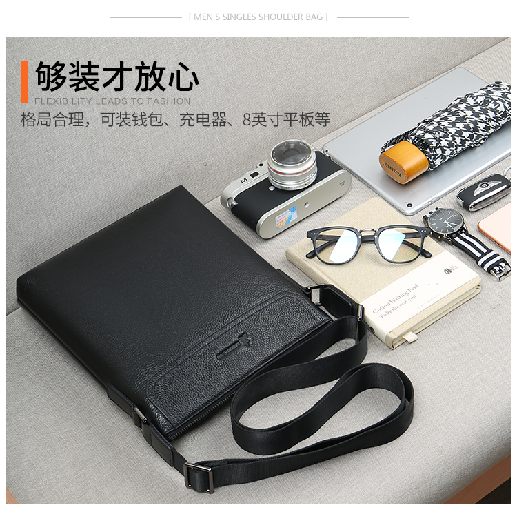 稻草人(MEXICAN)真皮男包男士单肩包头层牛皮竖款商务休闲单肩斜挎包小方包MMBD02190355黑色
