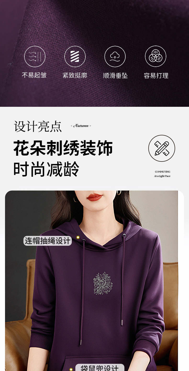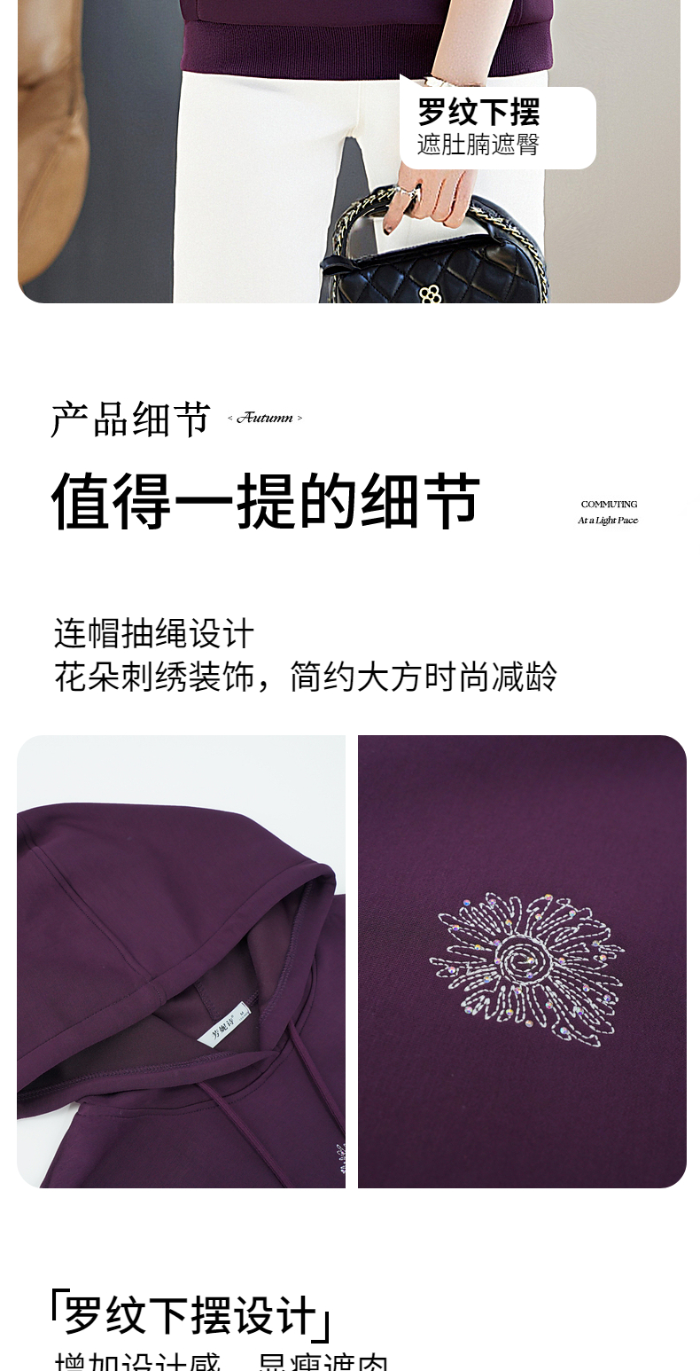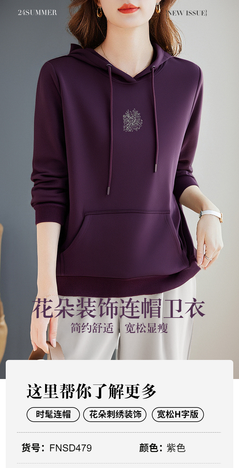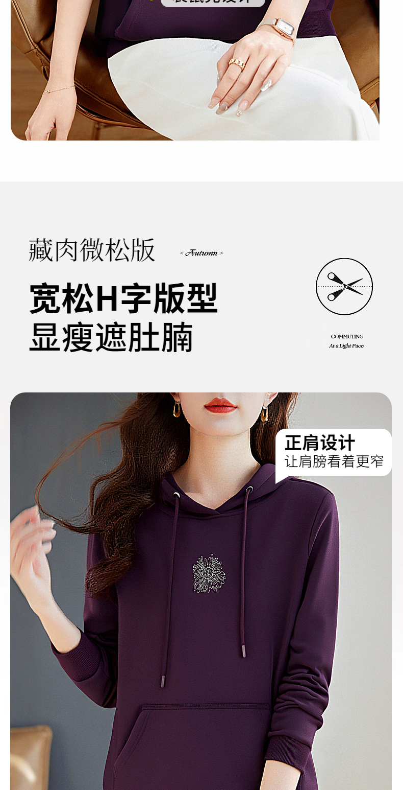 紫色女士卫衣秋季薄款2026新款洋气大码女装连帽外套长袖套头上衣