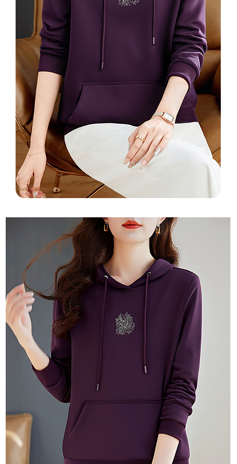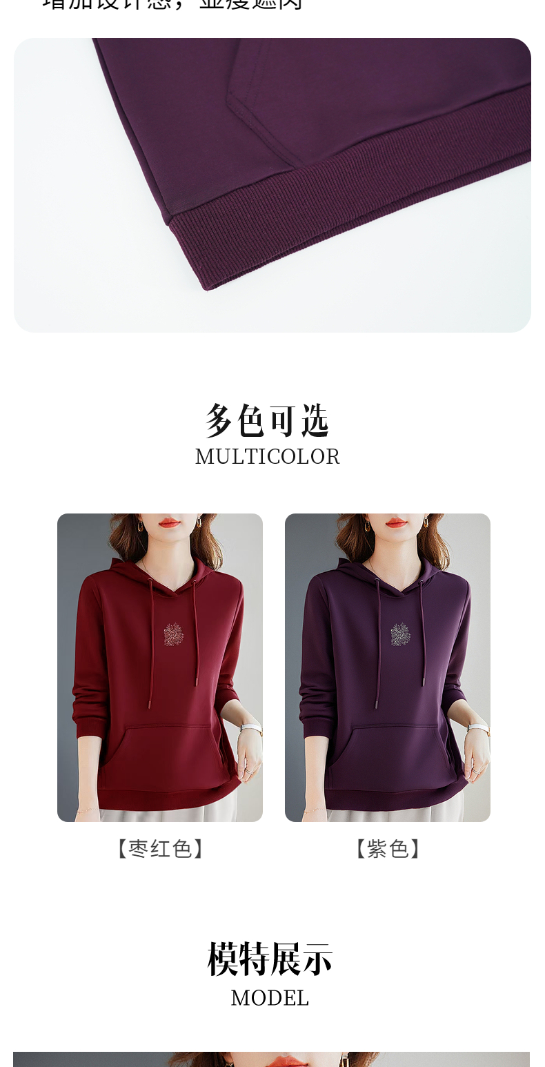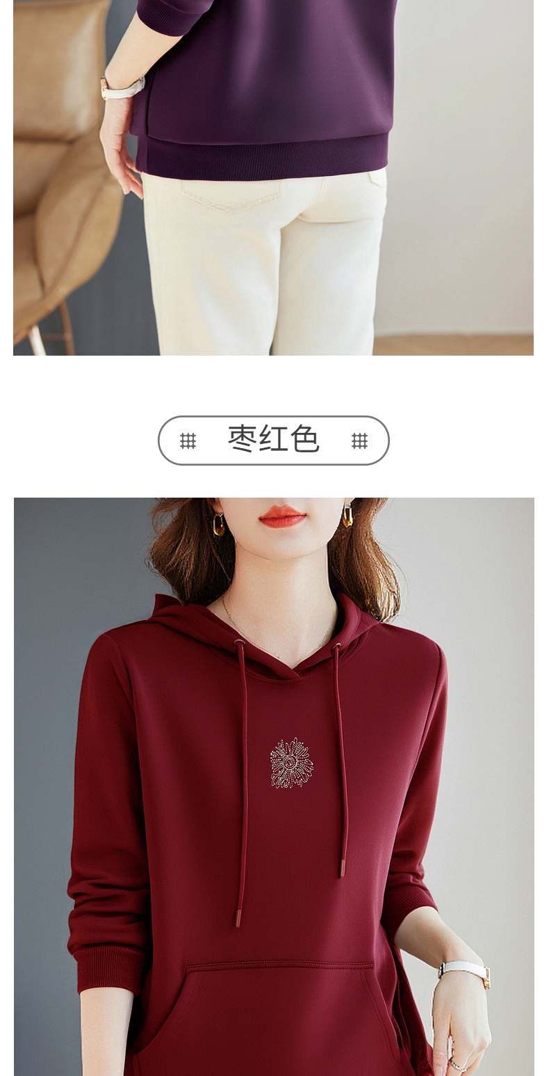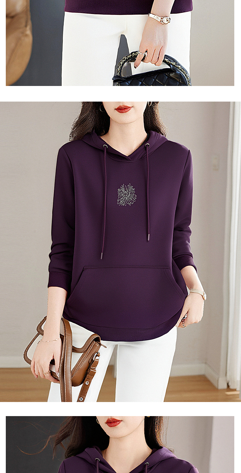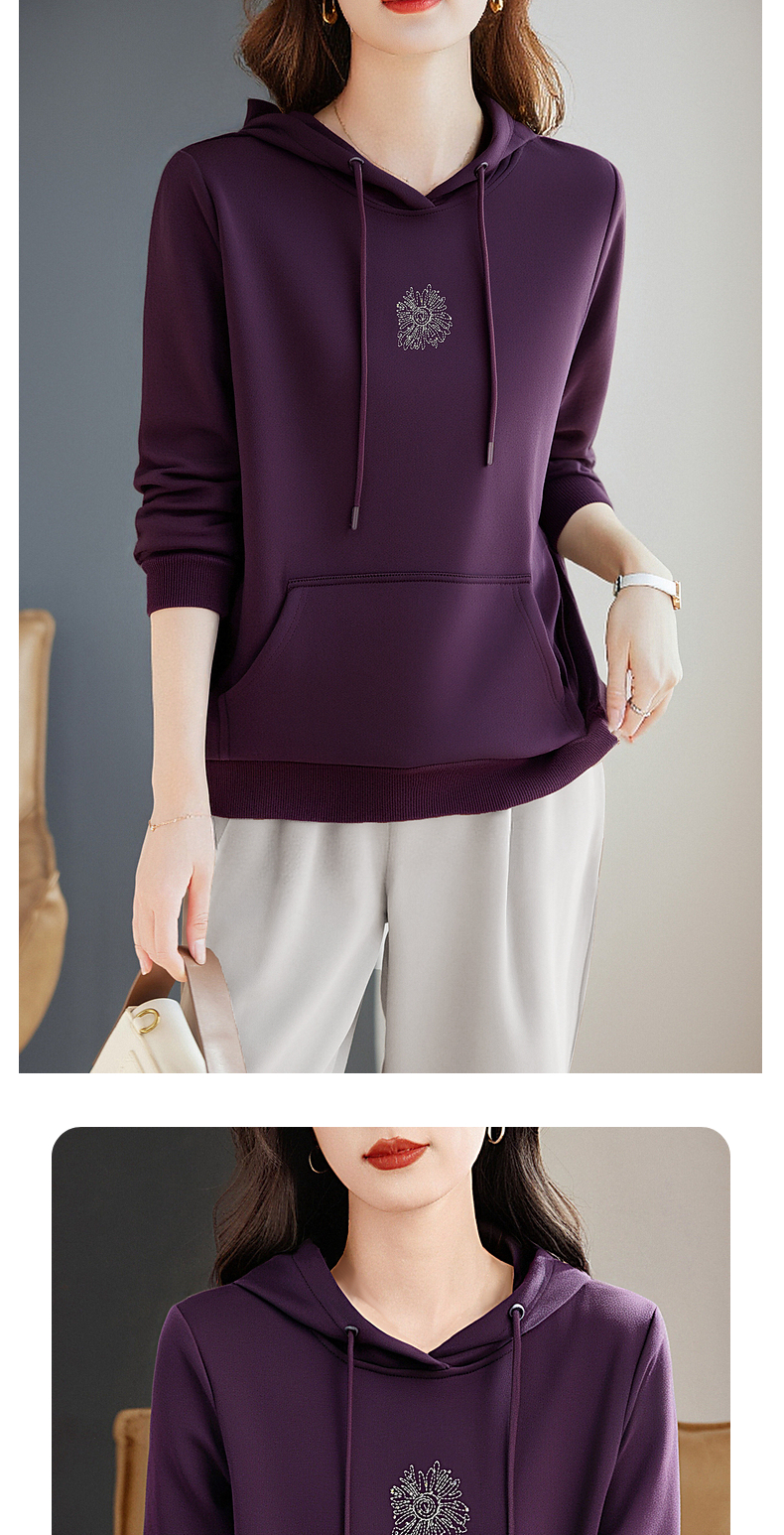 紫色女士卫衣秋季薄款2026新款洋气大码女装连帽外套长袖套头上衣