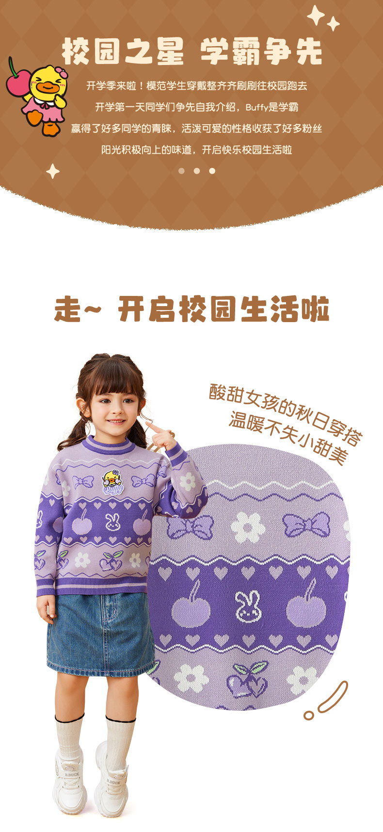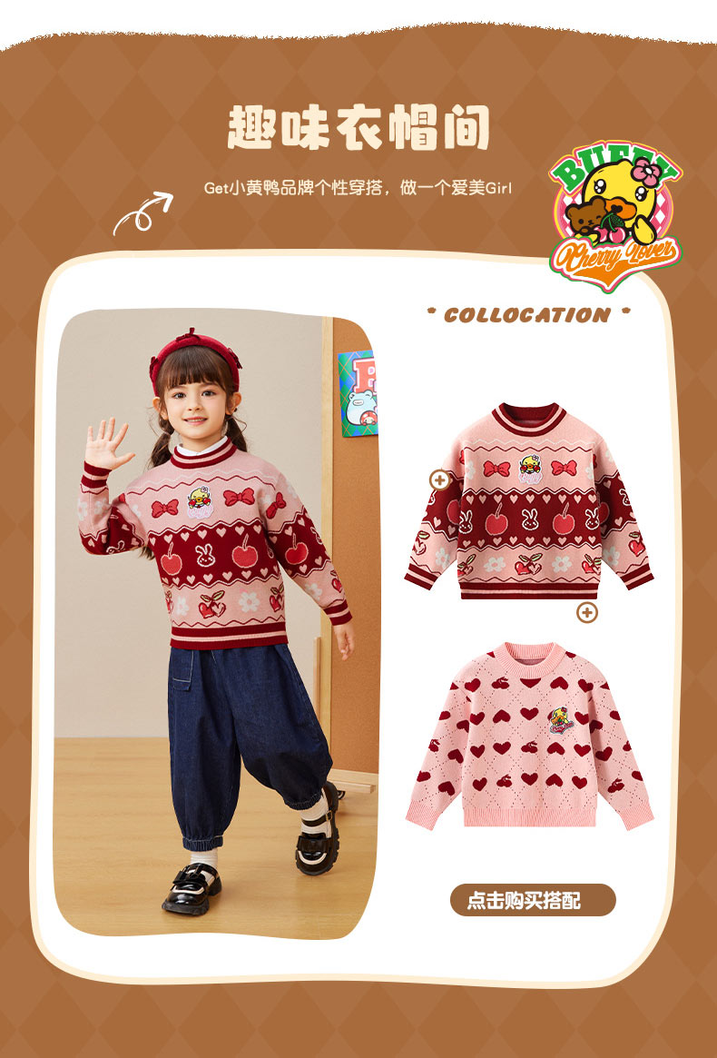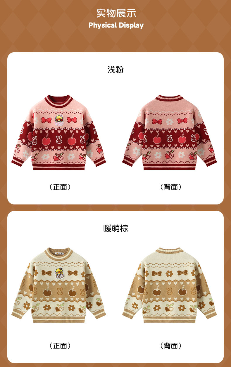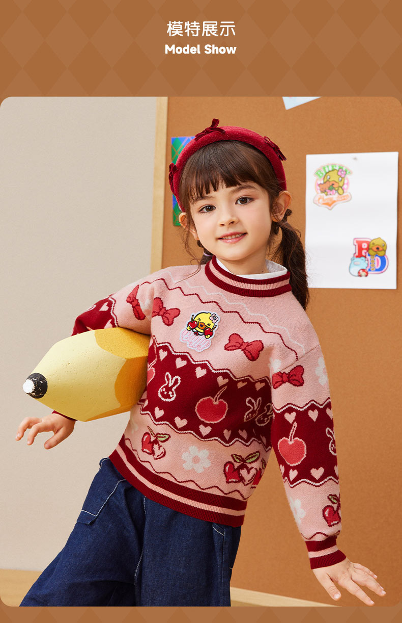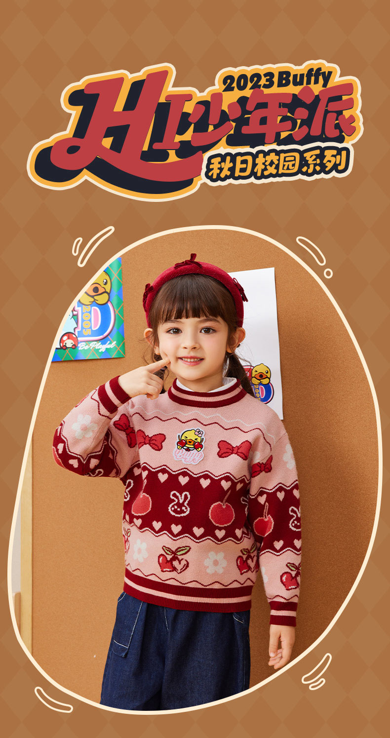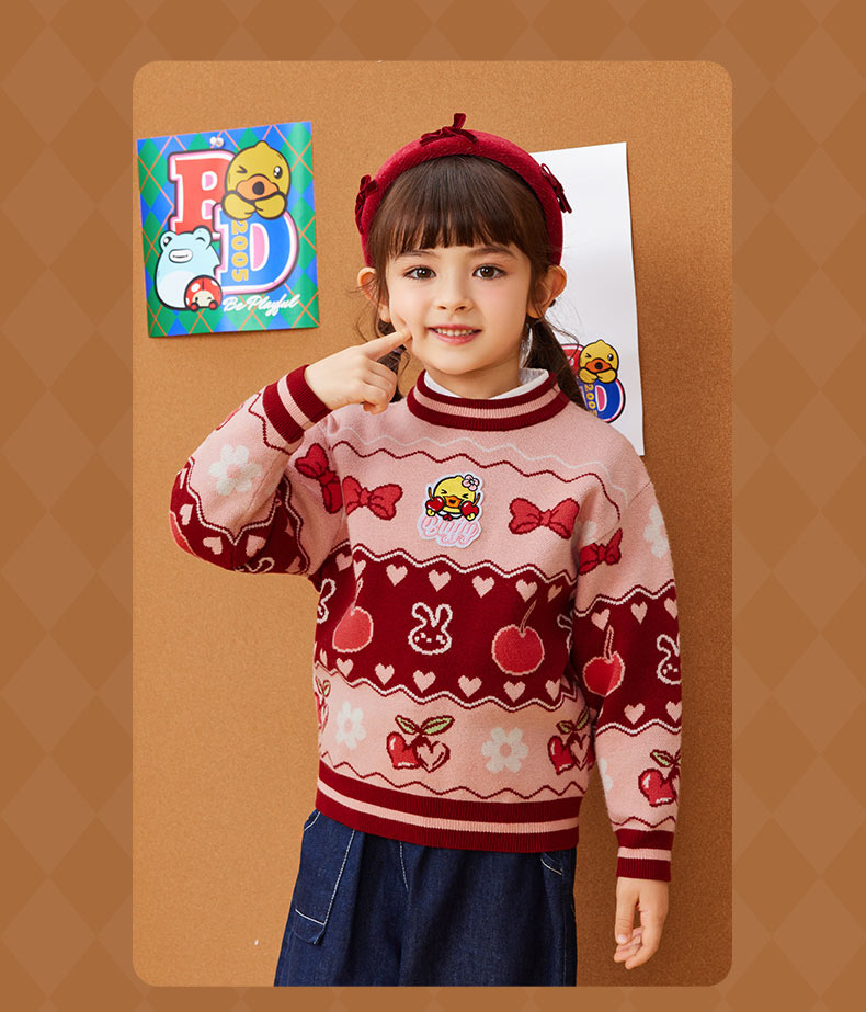 B.DUCK小黄鸭童装春秋套头针织衫毛衣105-150 FF3412010
