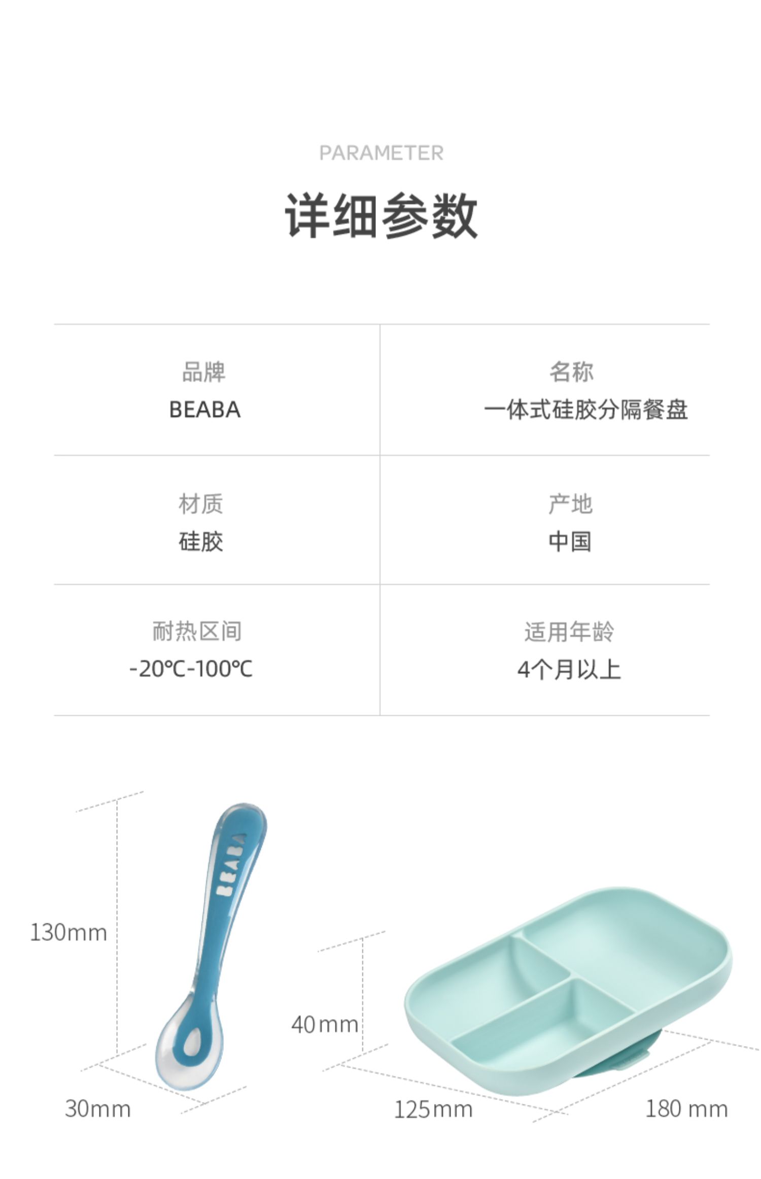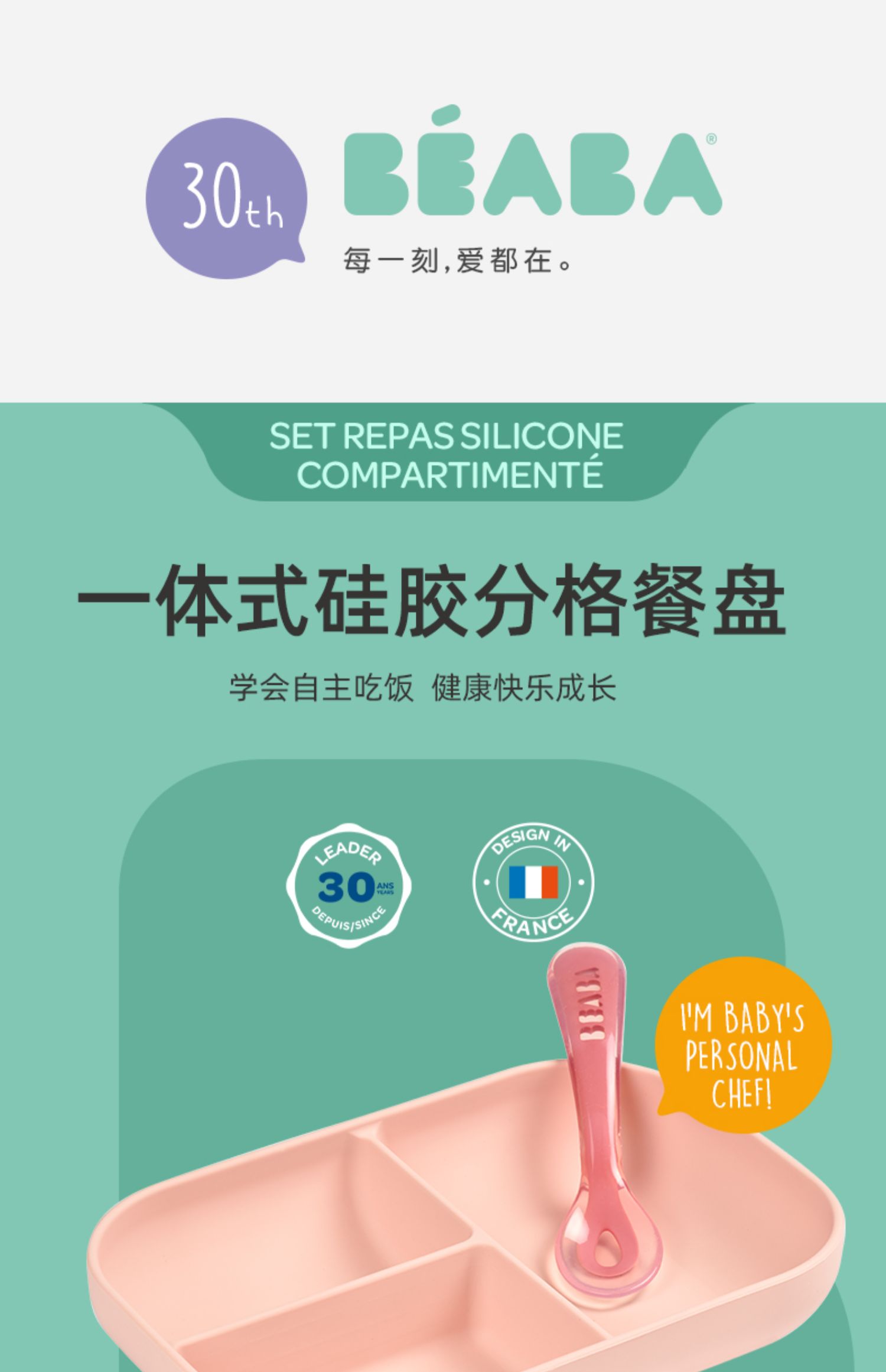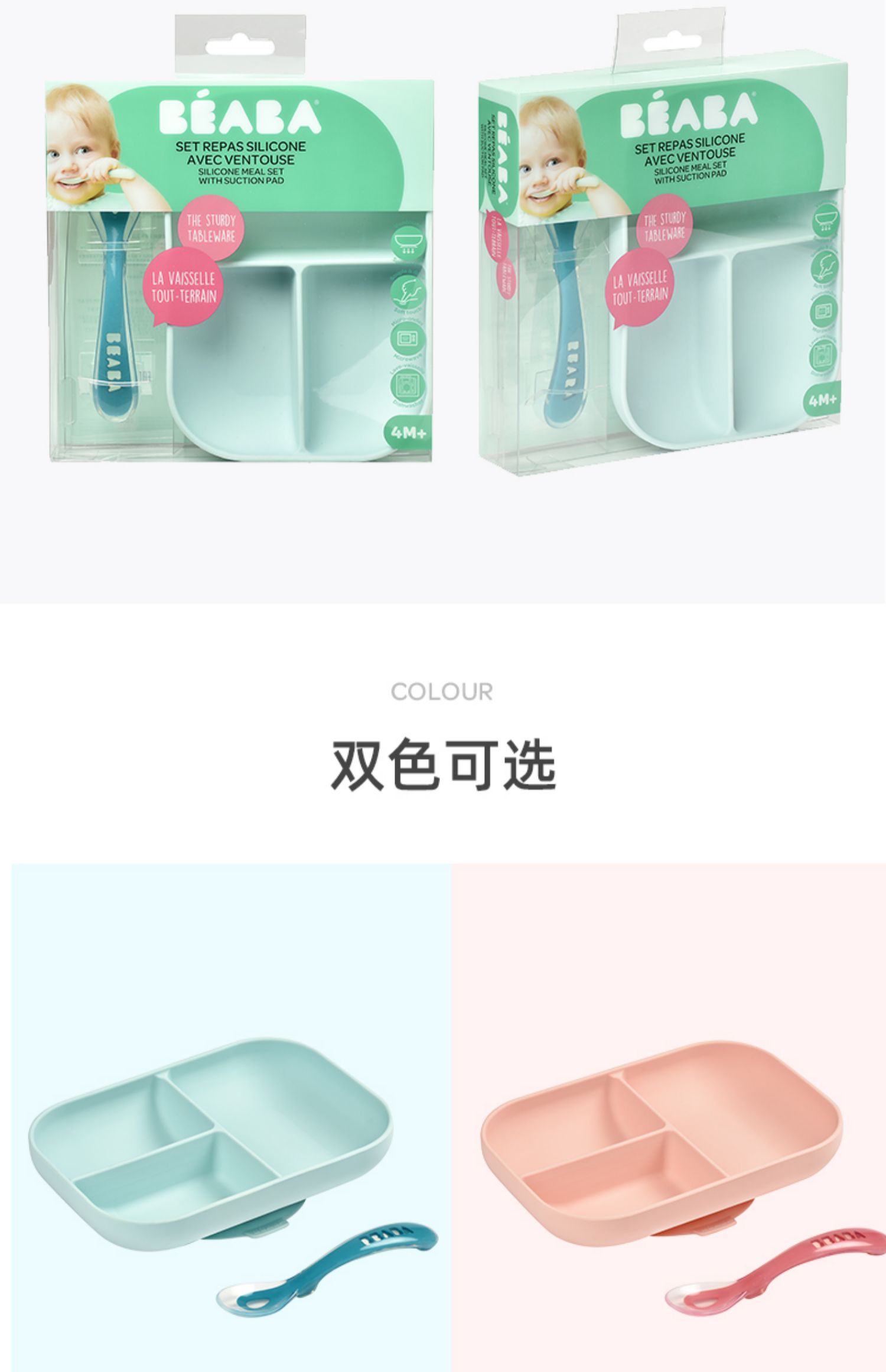 BEABA硅胶餐具套装 硅胶分格餐盘+2阶段软勺 宝宝餐盘儿童餐具