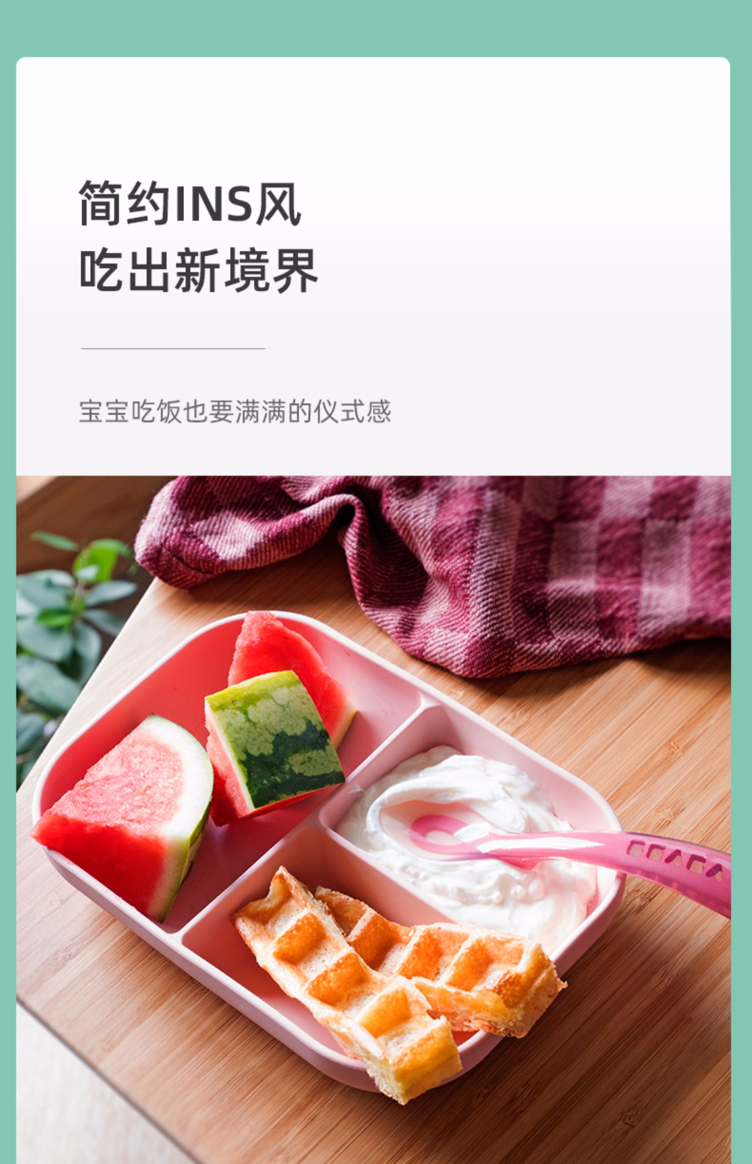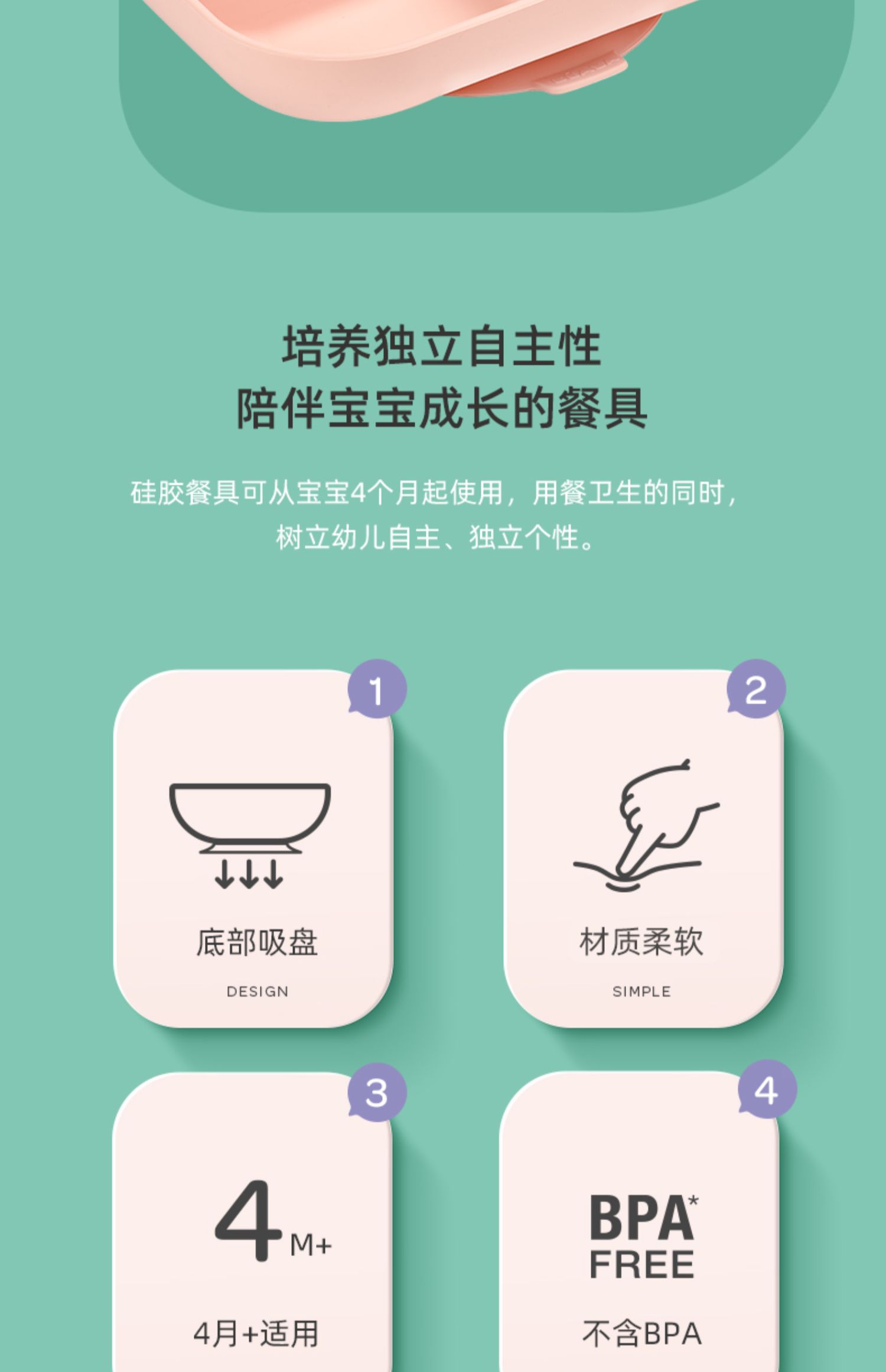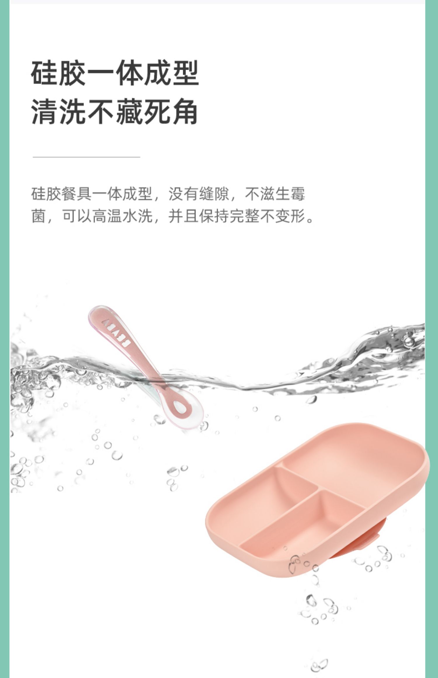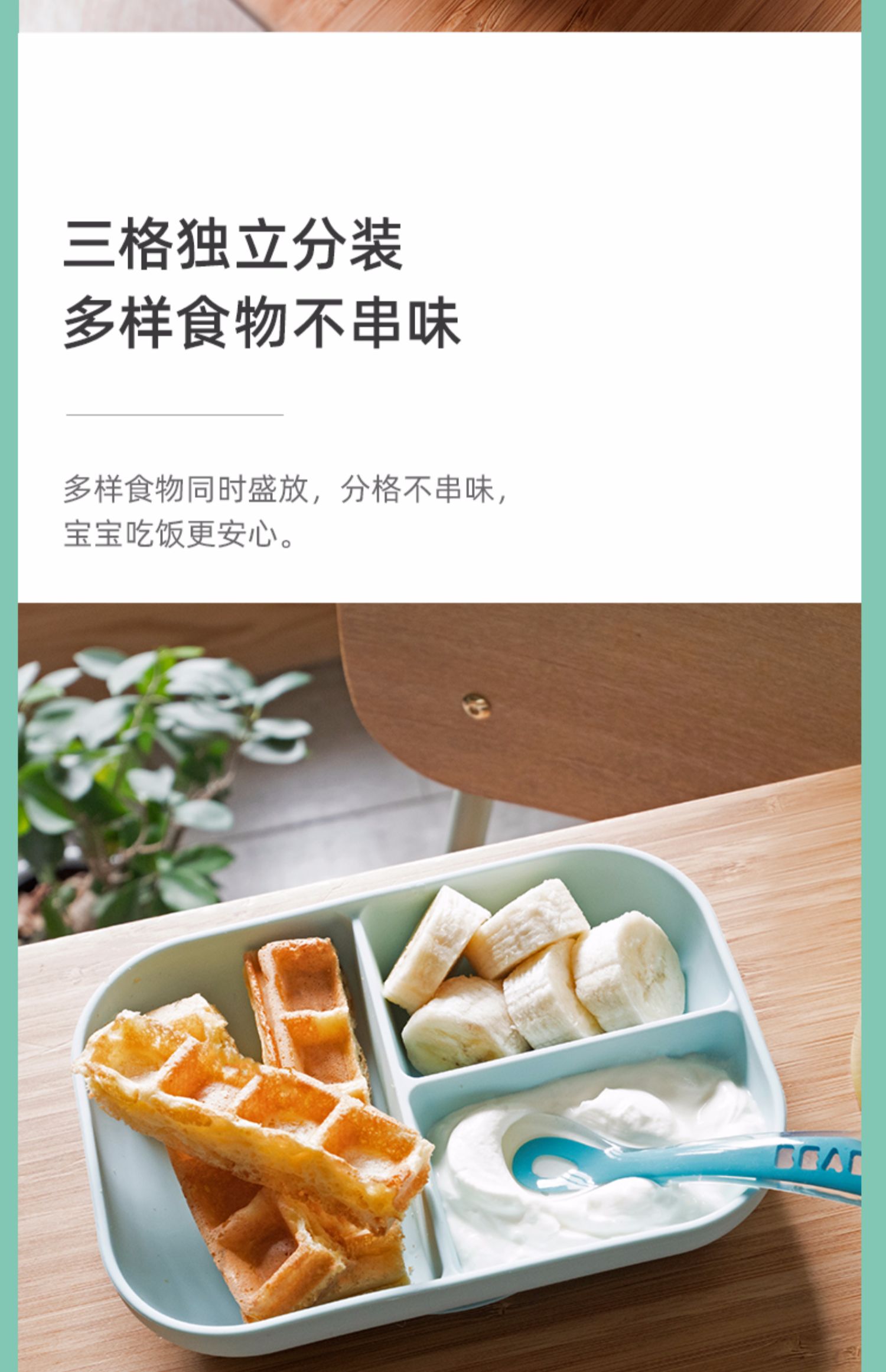 BEABA硅胶餐具套装 硅胶分格餐盘+2阶段软勺 宝宝餐盘儿童餐具
