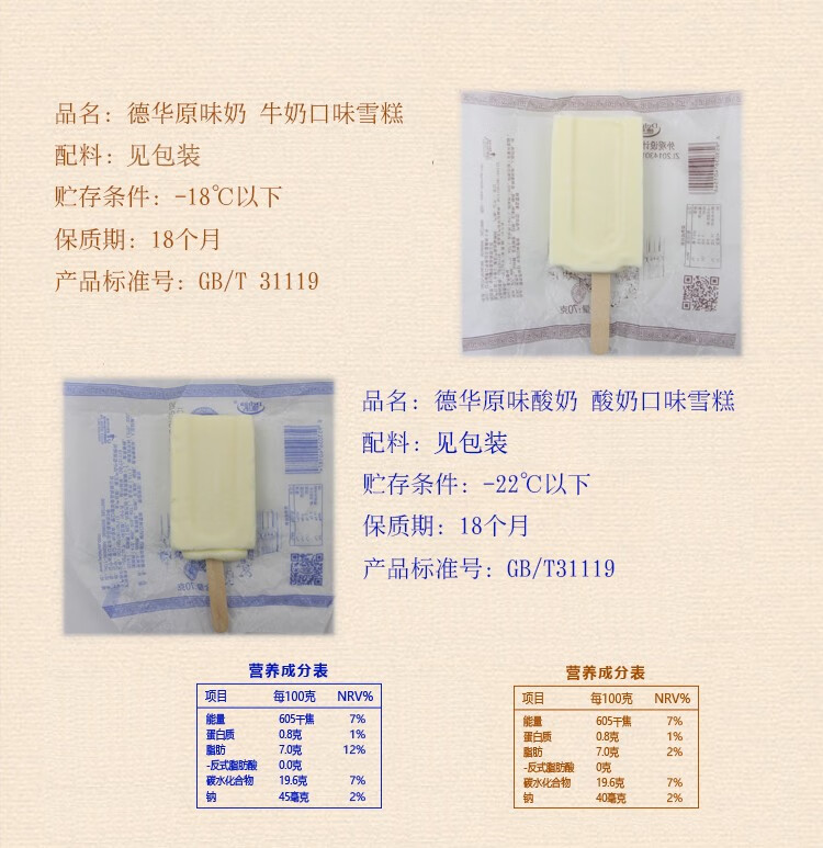德华 手包网红 冰棒雪糕系列 原味红豆绿豆酸奶口味 10支装