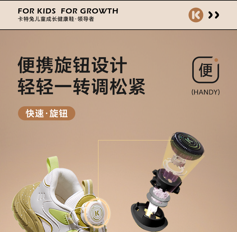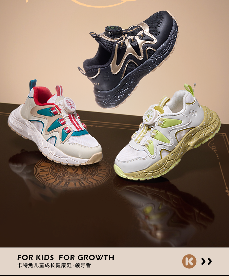 卡特兔童鞋儿童运动鞋男童2025秋季新款旋钮鞋休闲时尚女童老爹鞋