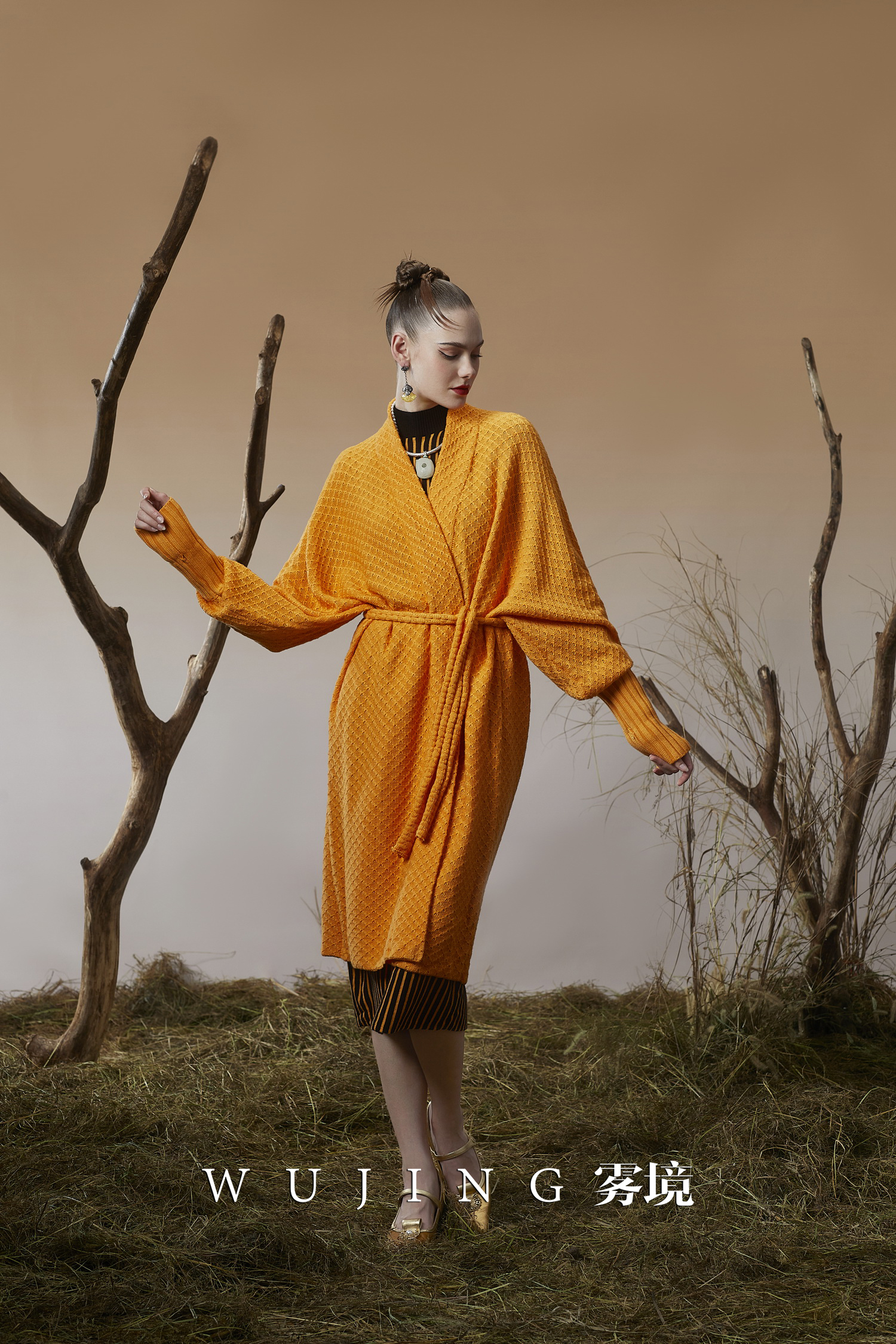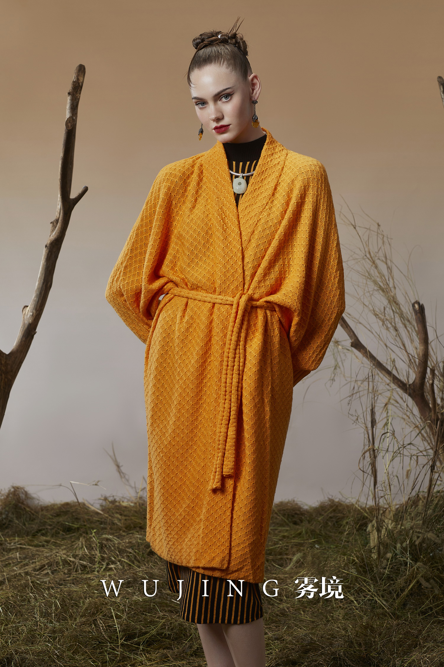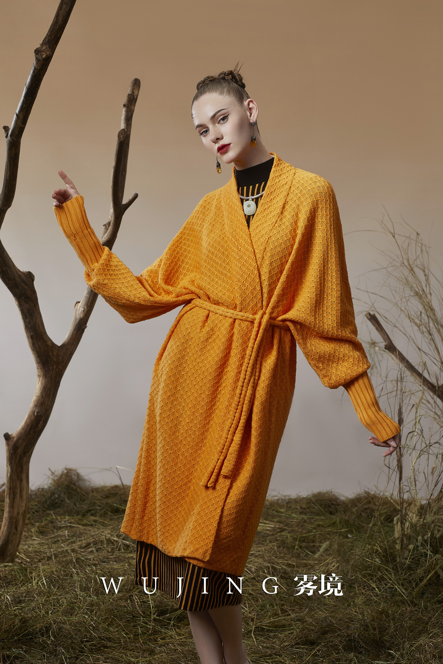 3203078 落日榕金 进口超细美丽诺羊毛针织外套