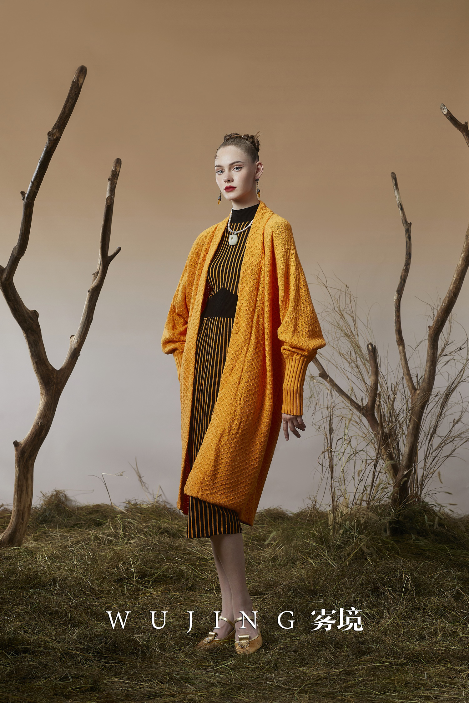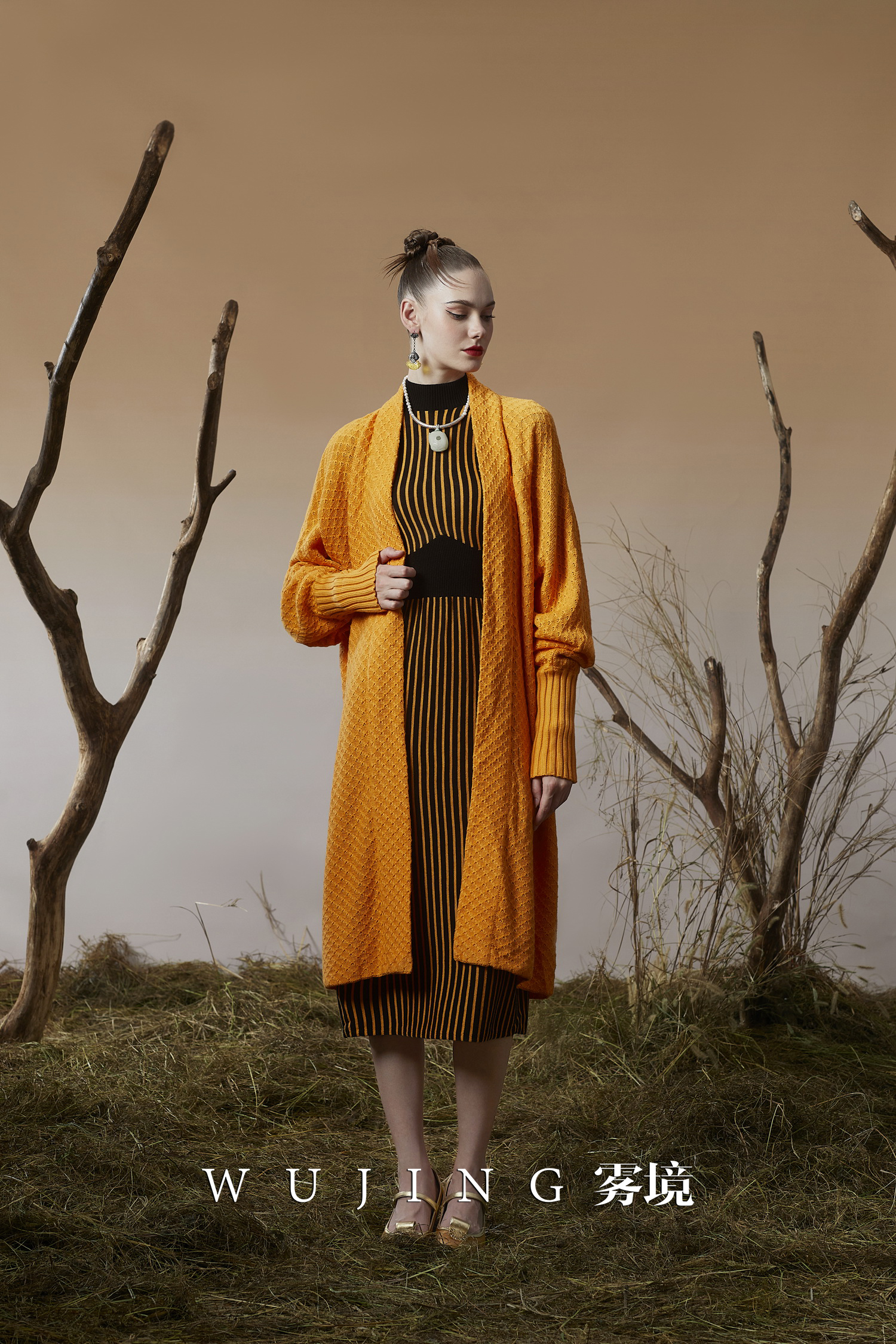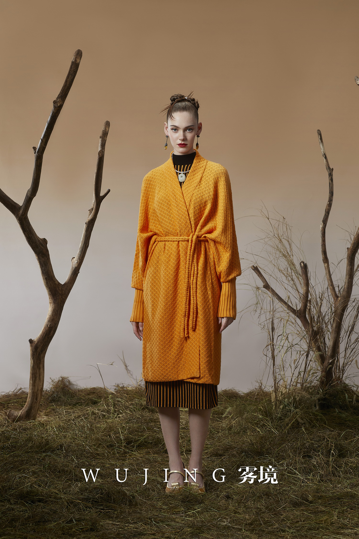 3203078 落日榕金 进口超细美丽诺羊毛针织外套