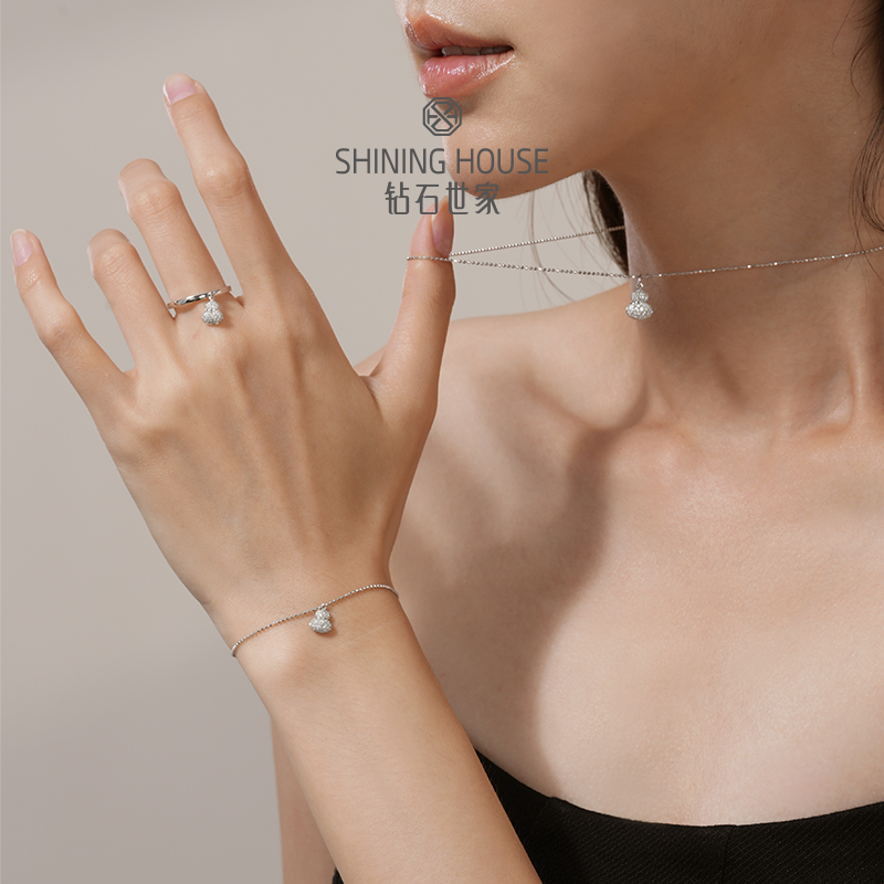 【实心款】【 玲珑宝葫 】钻石世家 玲珑宝葫系列 18K金葫芦镶钻项链 18K金葫芦镶钻戒指 18K金葫芦镶钻手链【单吊坠,上图仅为搭配示意】不支持无理由退换货 预计3-5天发货