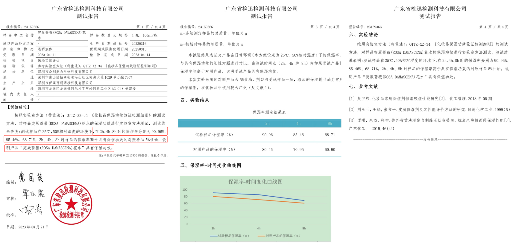 已获得国家认证权威实验室「保湿修护」双效报告,光是“突厥蔷薇花水”(即保加利亚玫瑰花水)这个成分的保湿度就高出5%的“甘油”成分!